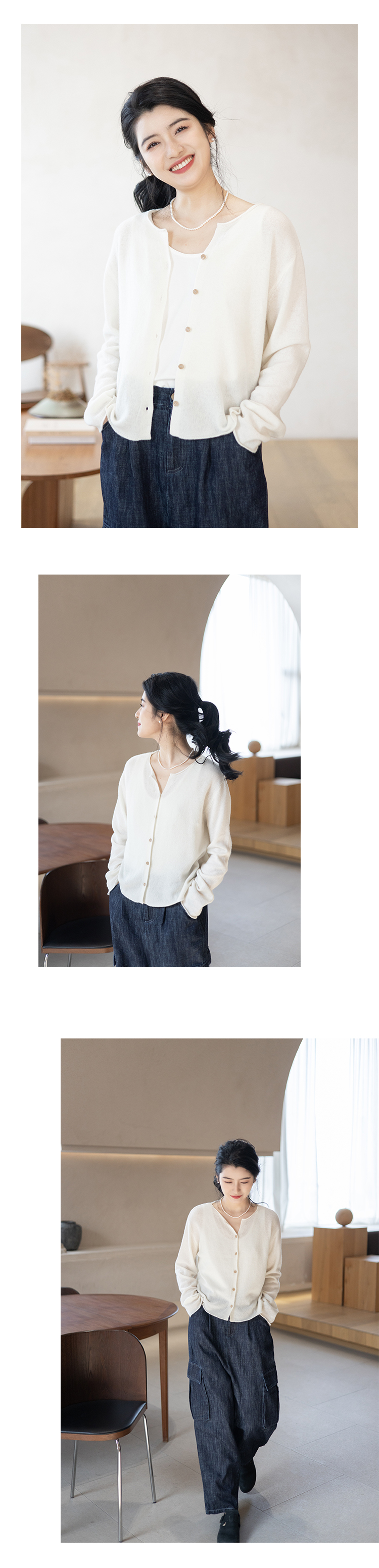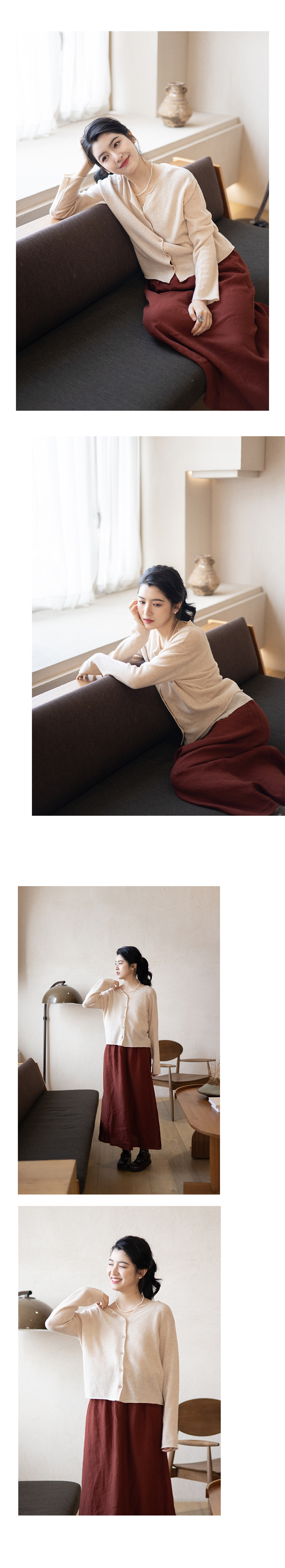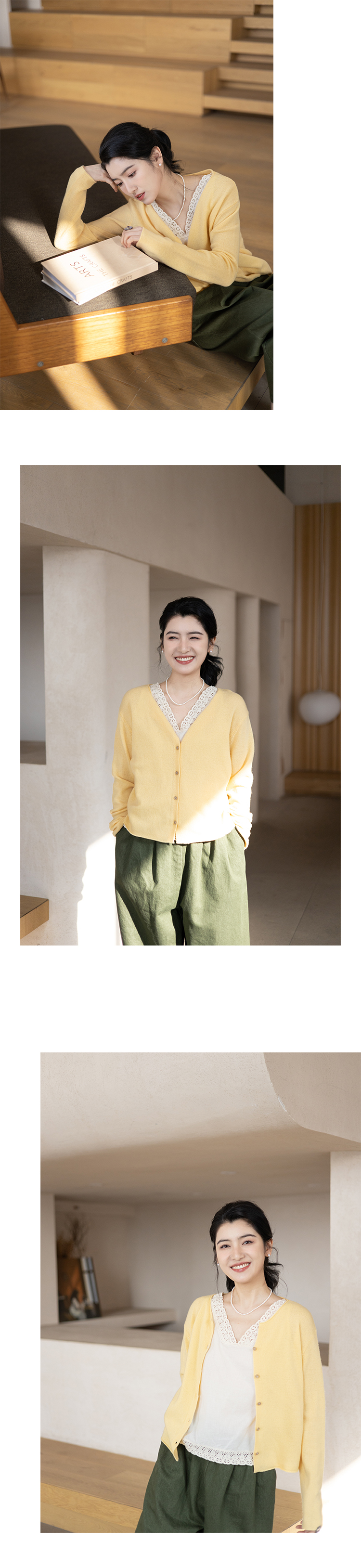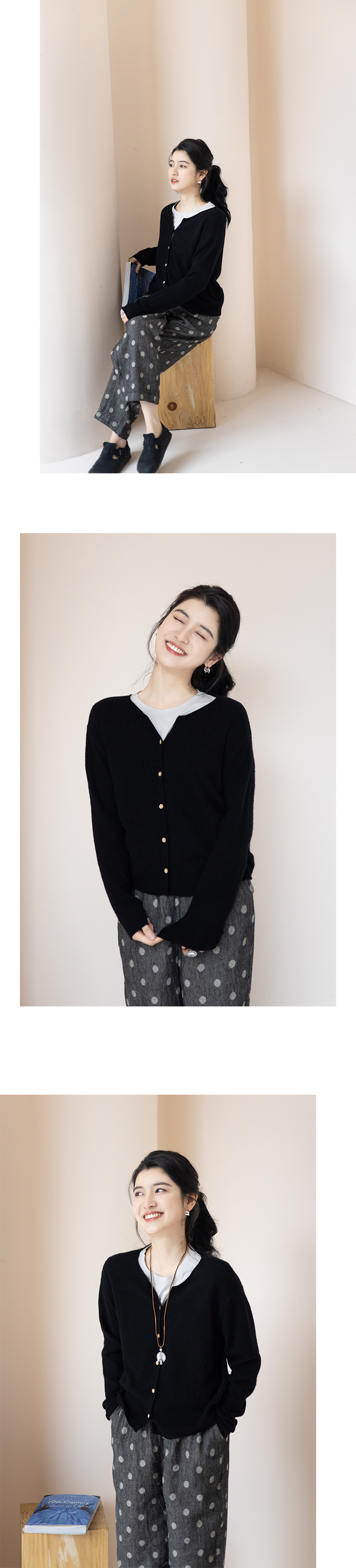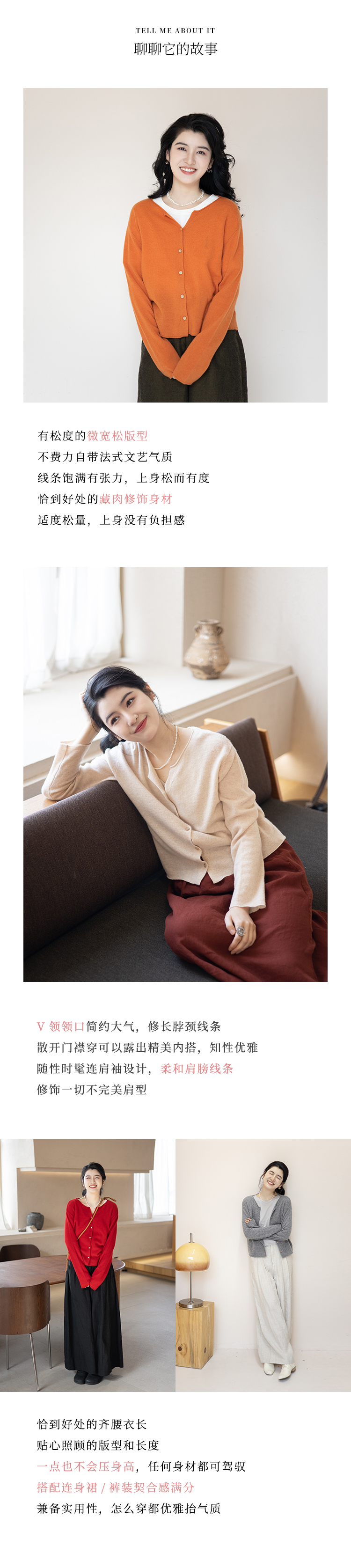 绽放522朵【黑白灰系列·普通美】酵素洗汉麻V领显瘦防晒亚麻衬衫