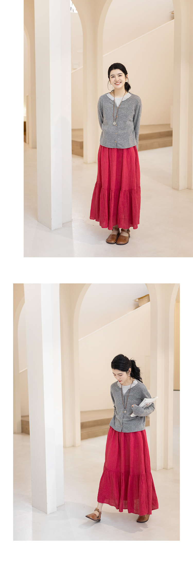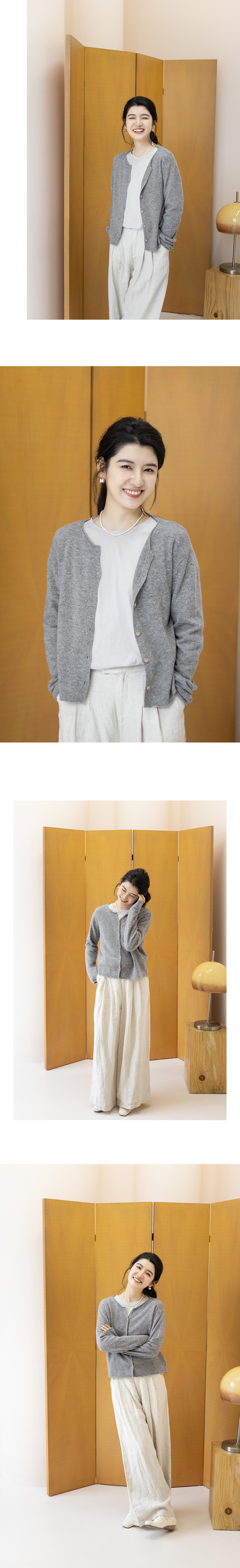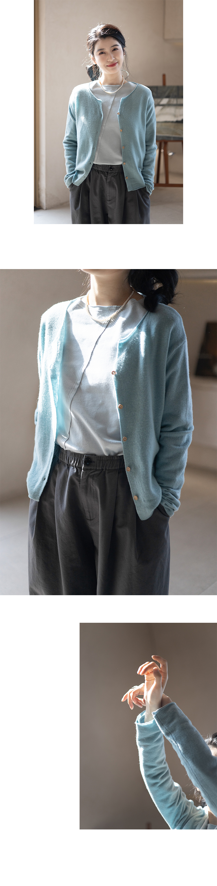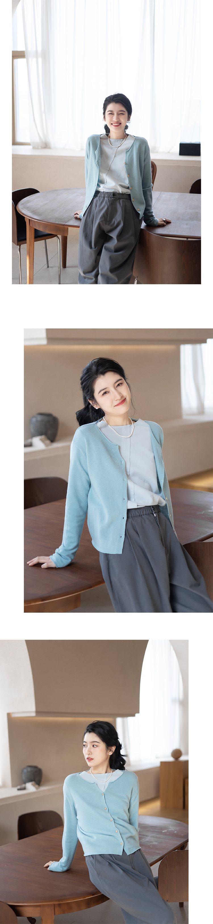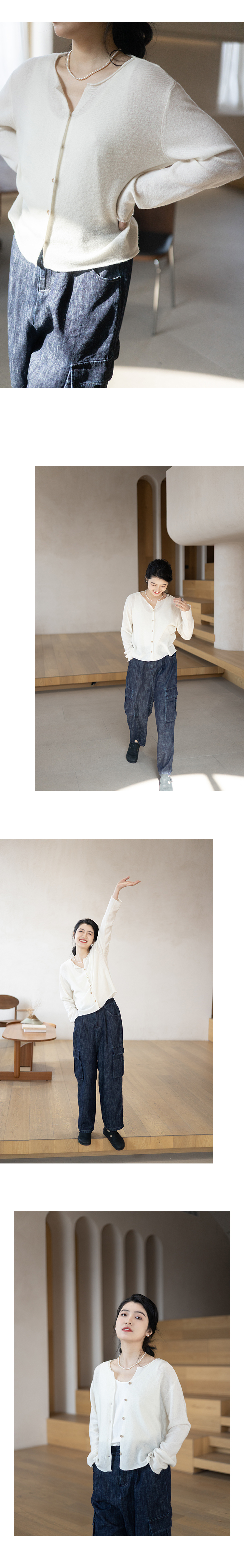 绽放522朵【黑白灰系列·普通美】酵素洗汉麻V领显瘦防晒亚麻衬衫