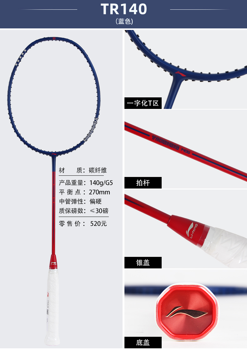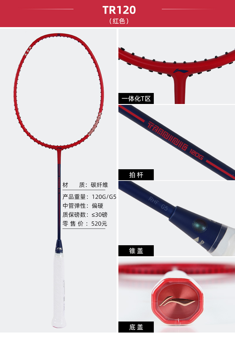 李宁羽毛球拍TR120/TR140暴力进攻扣杀拍 腕力训练拍单拍红色 力量训练拍