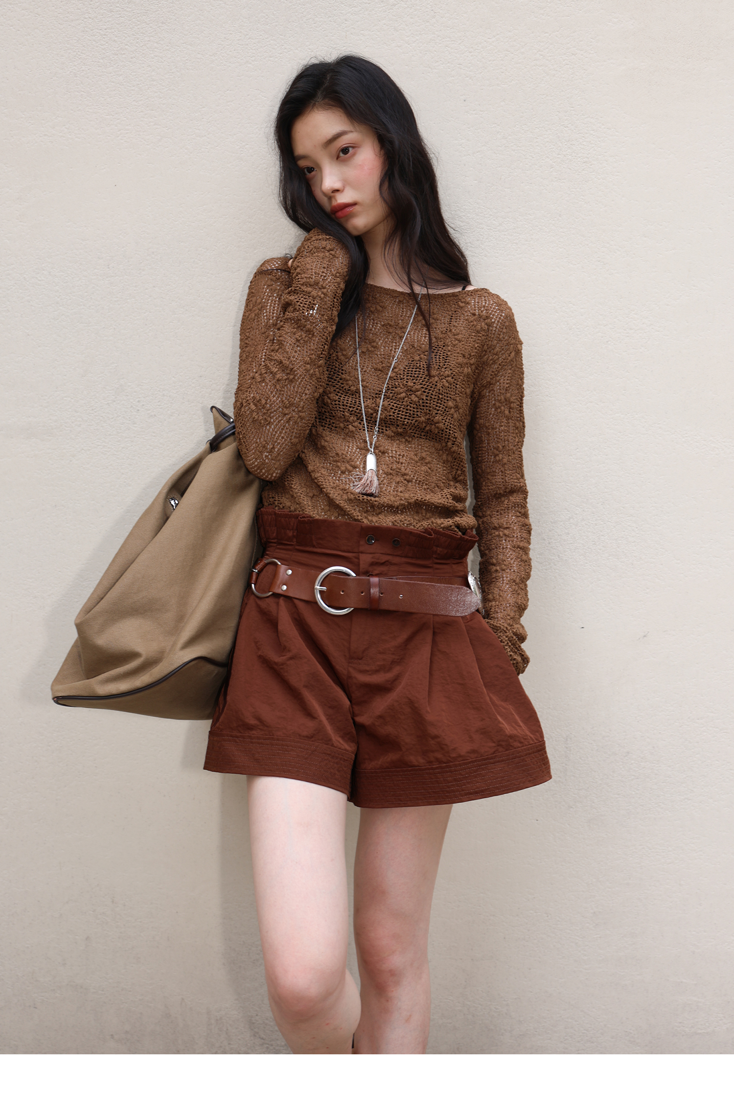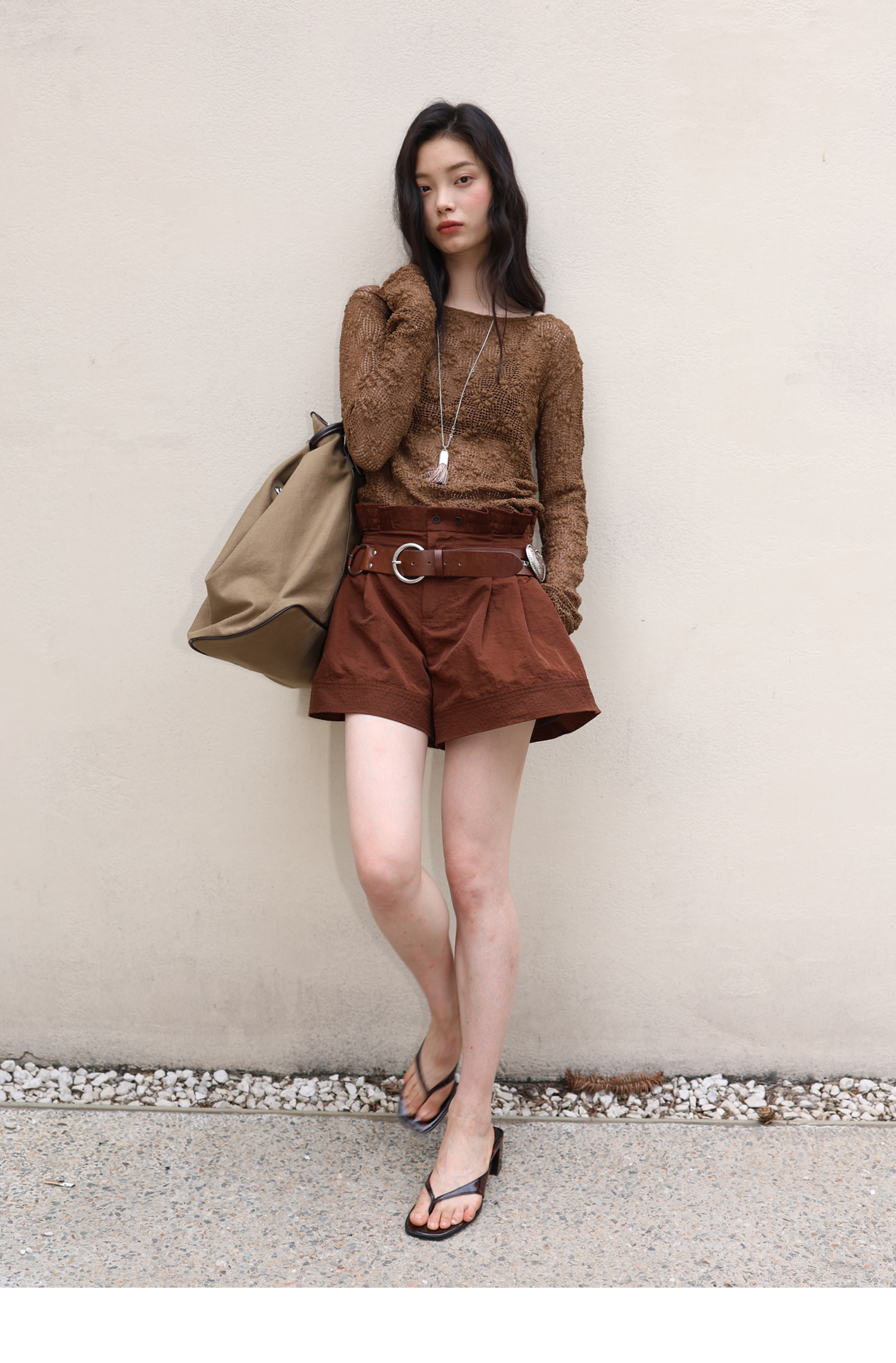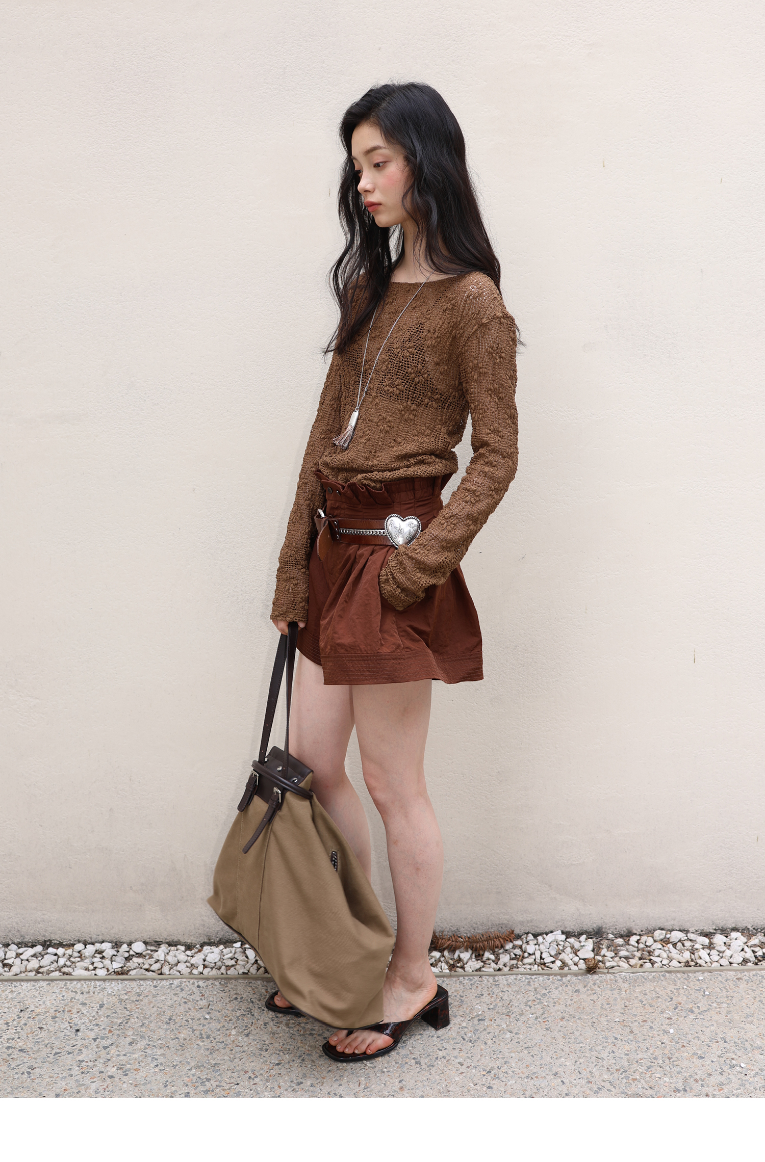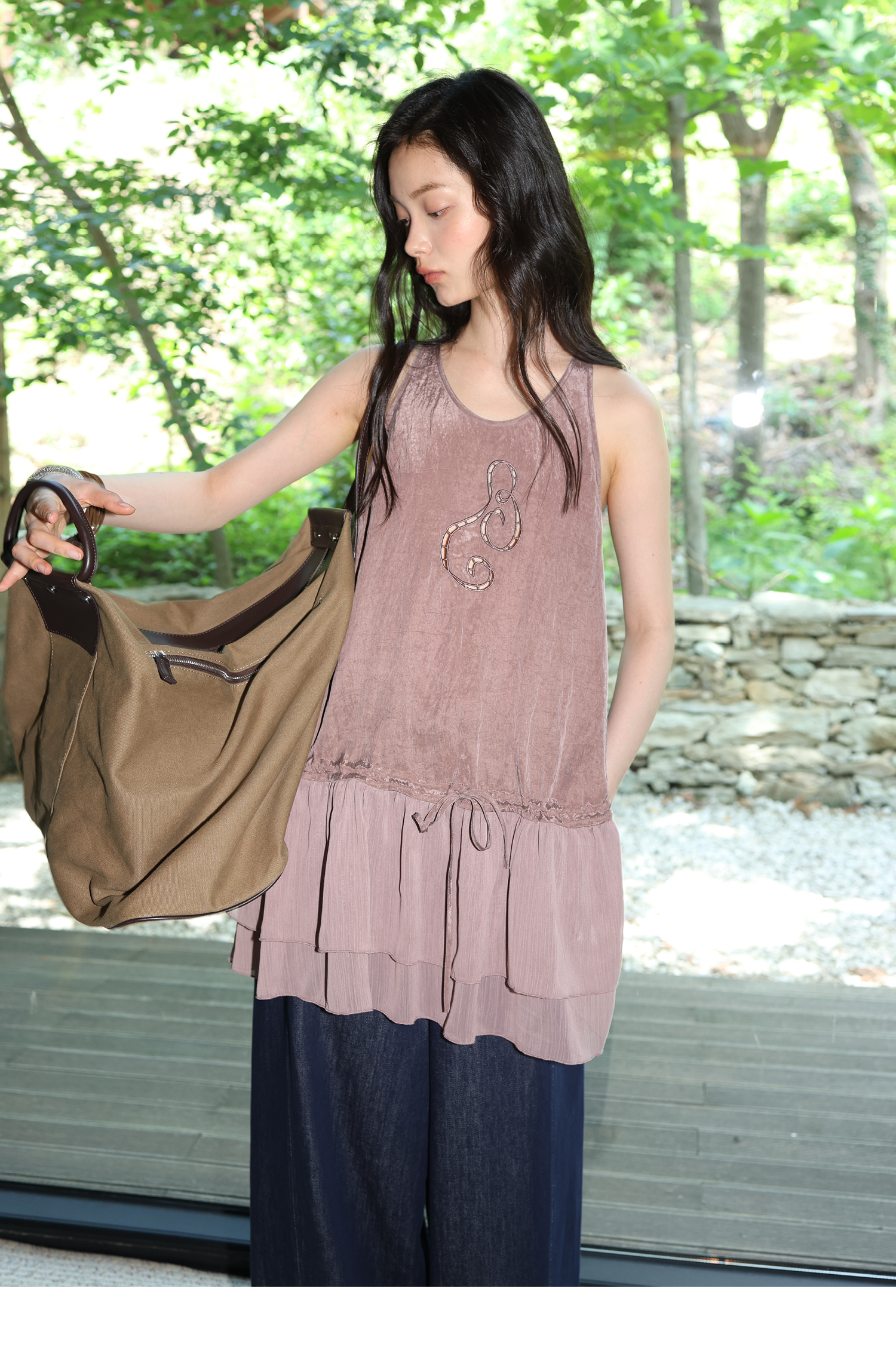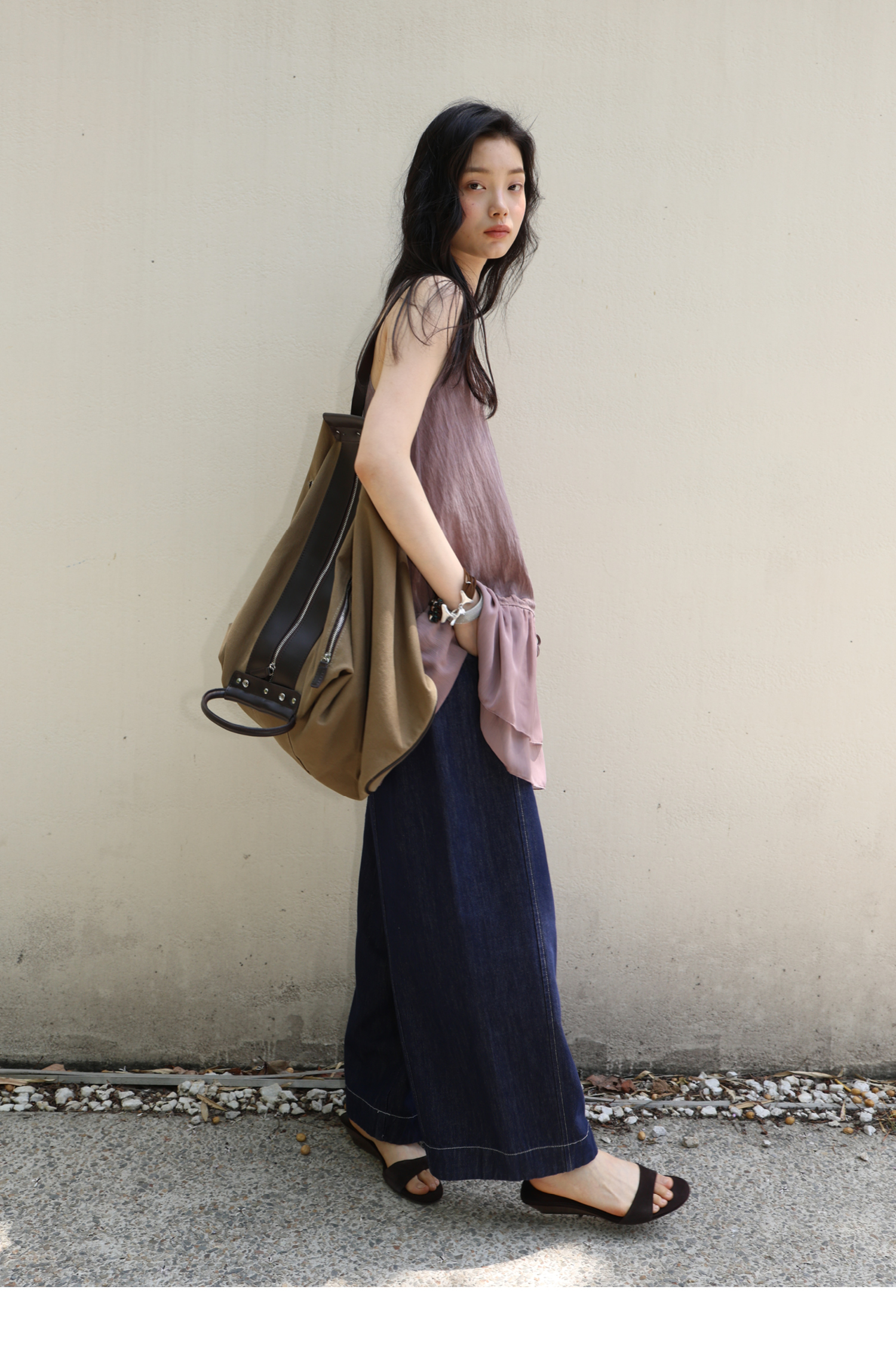 素舶 棕绿色帆布拼二层牛皮行囊通勤托特包