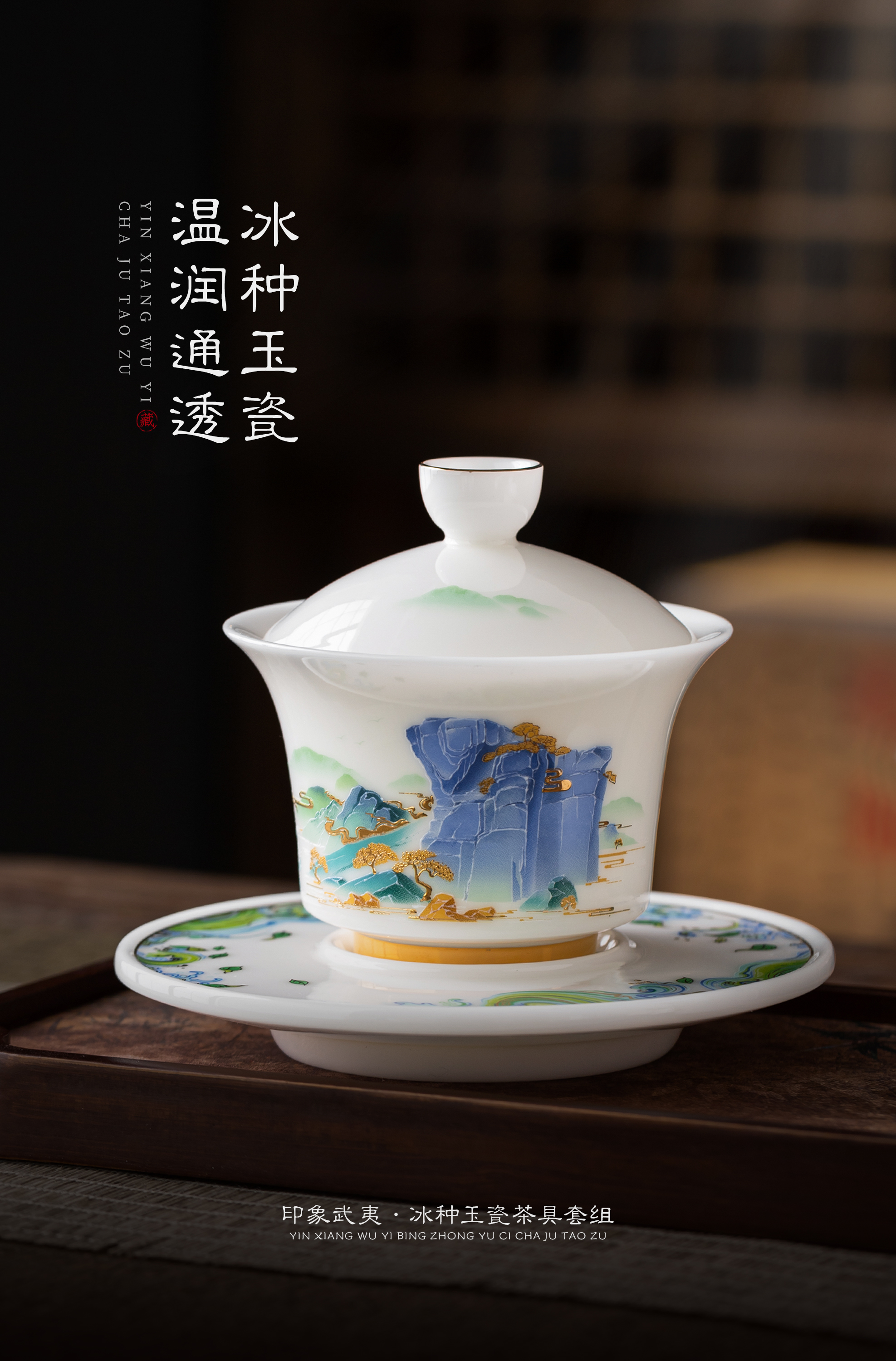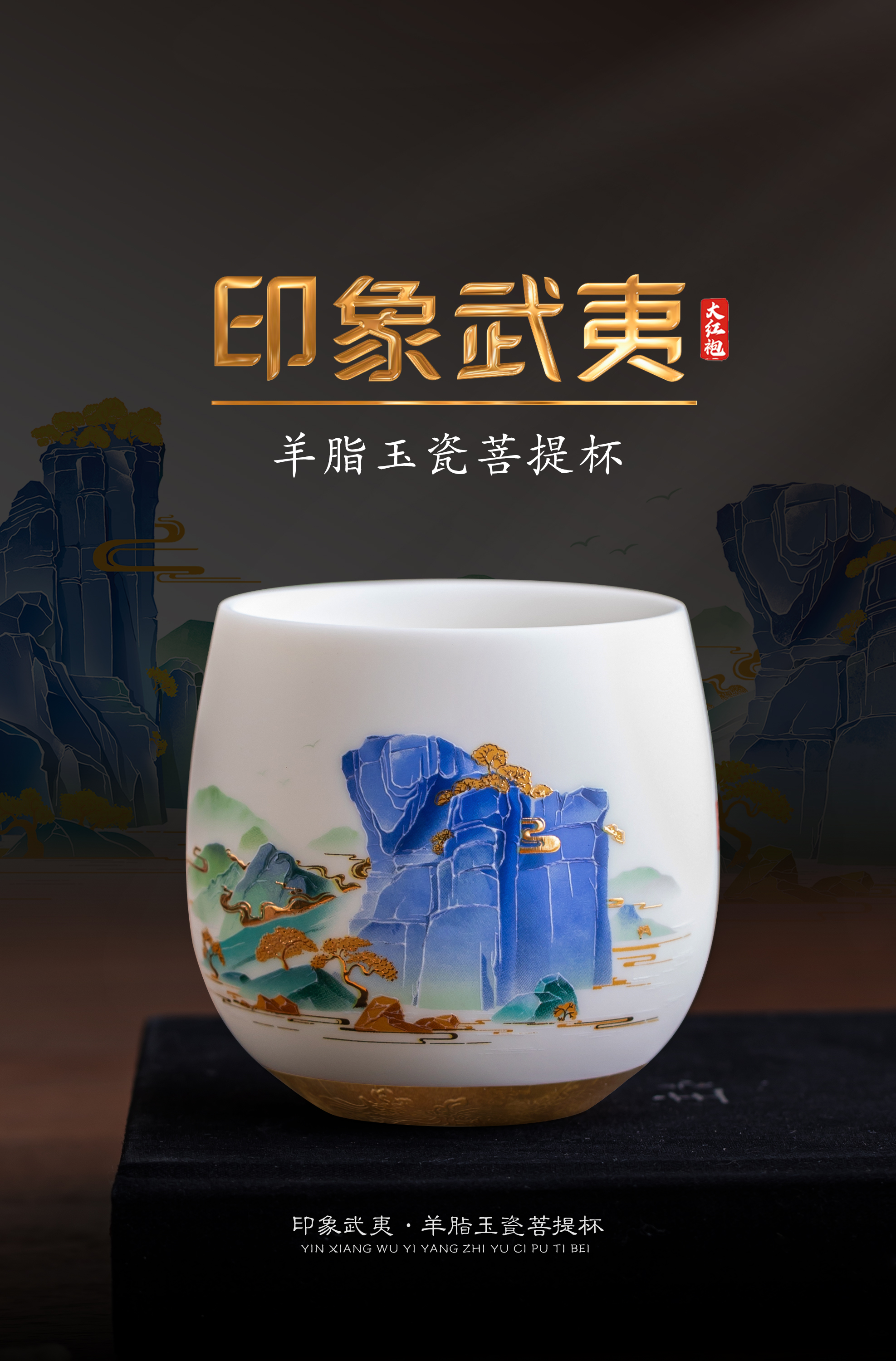【印象武夷】羊脂玉瓷菩提杯/般若杯/冰种玉瓷茶具套组/旅行茶具套组,徐建勇大师签章 品质保证 洁白细腻 温润如玉,精美包装 gao端佳礼