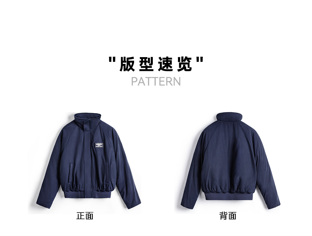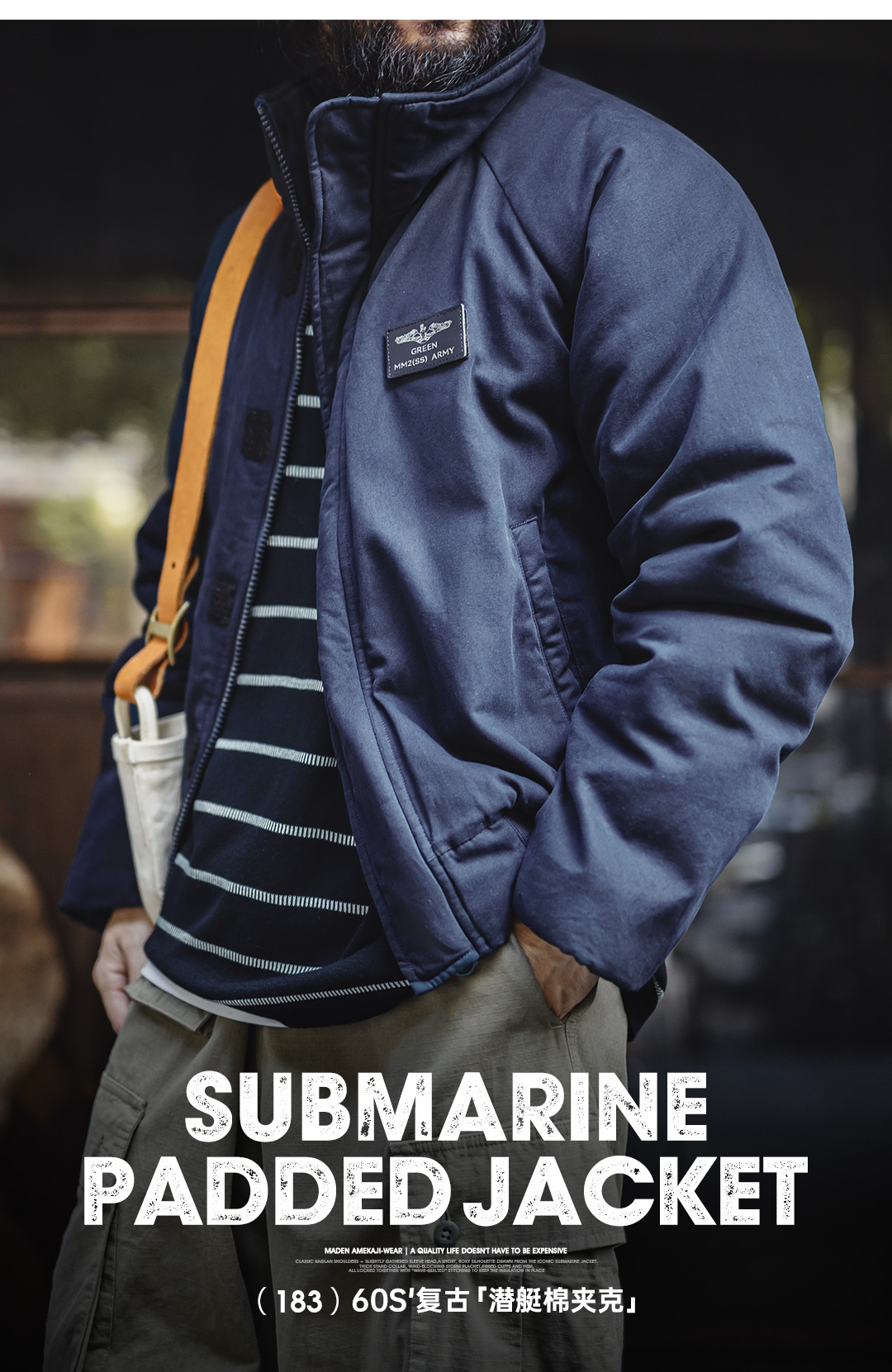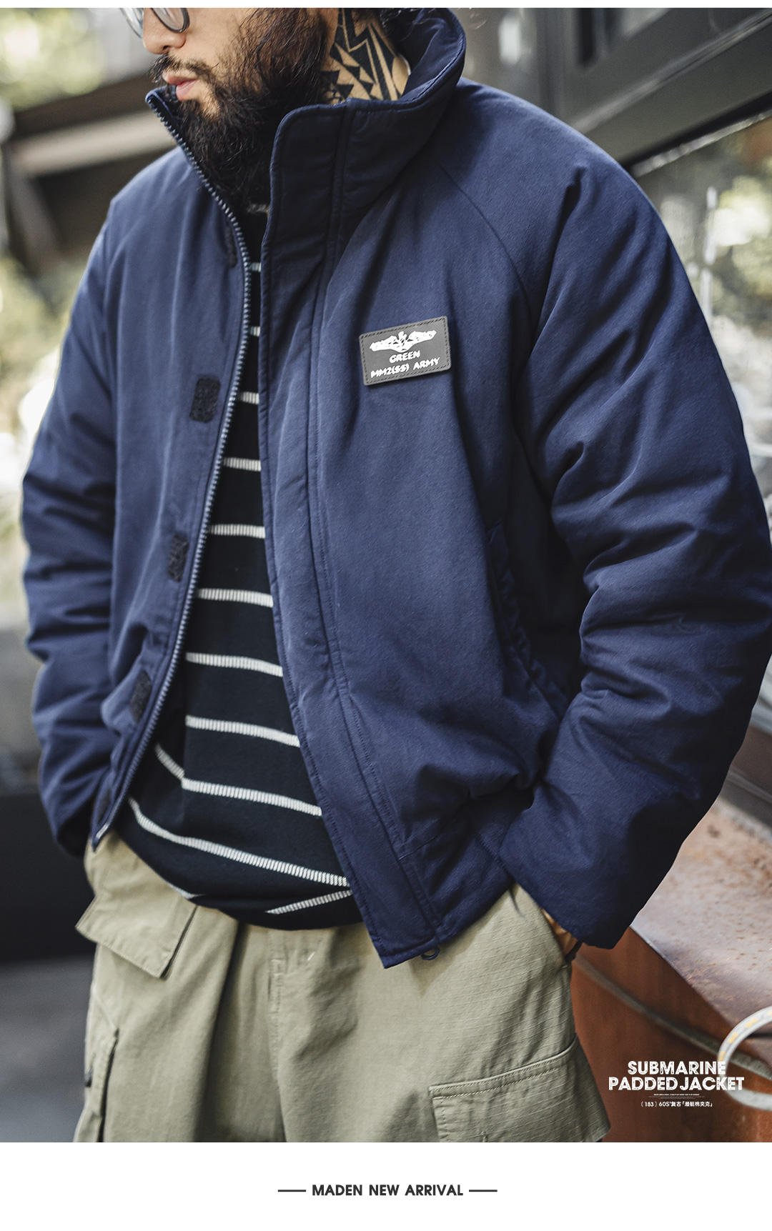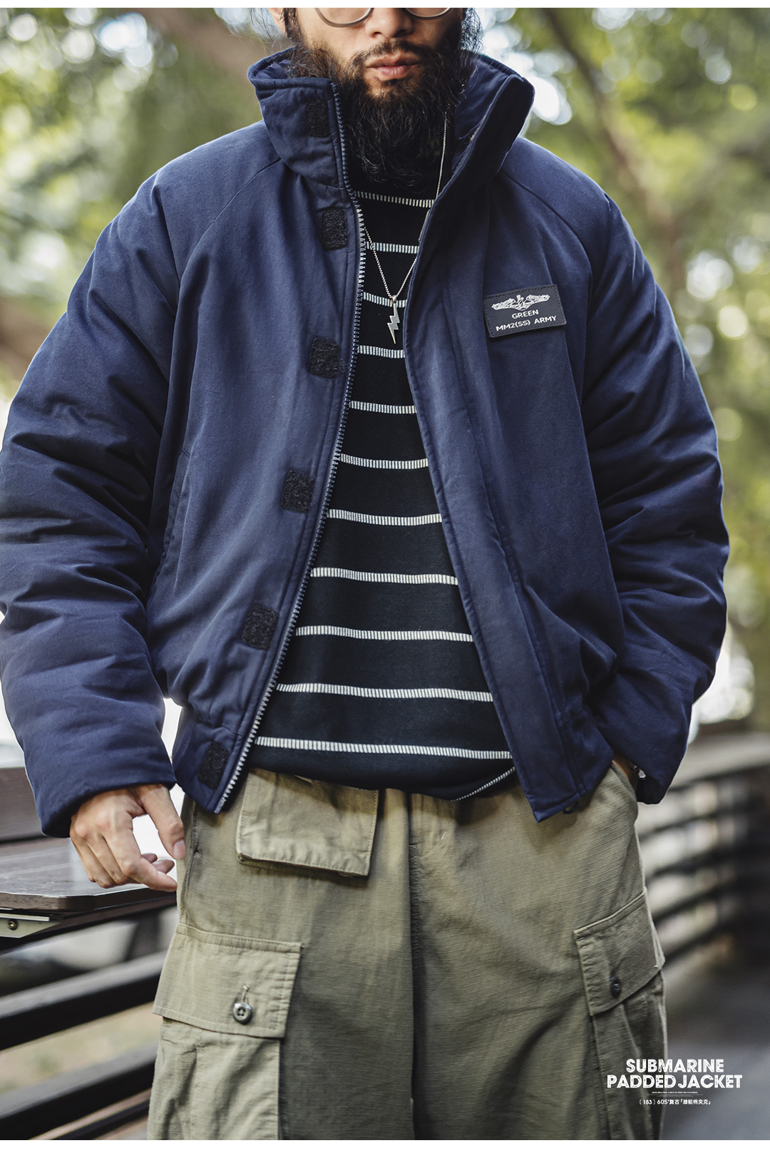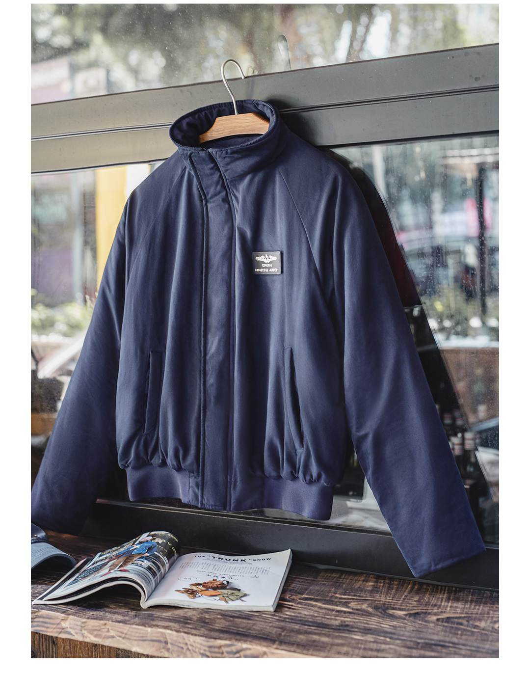 马登工装美式海军蓝色立领棉服加厚保暖短款插肩袖夹克外套男秋冬