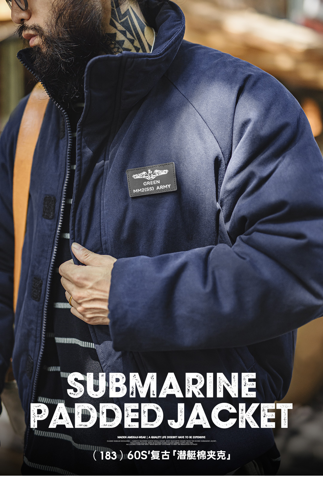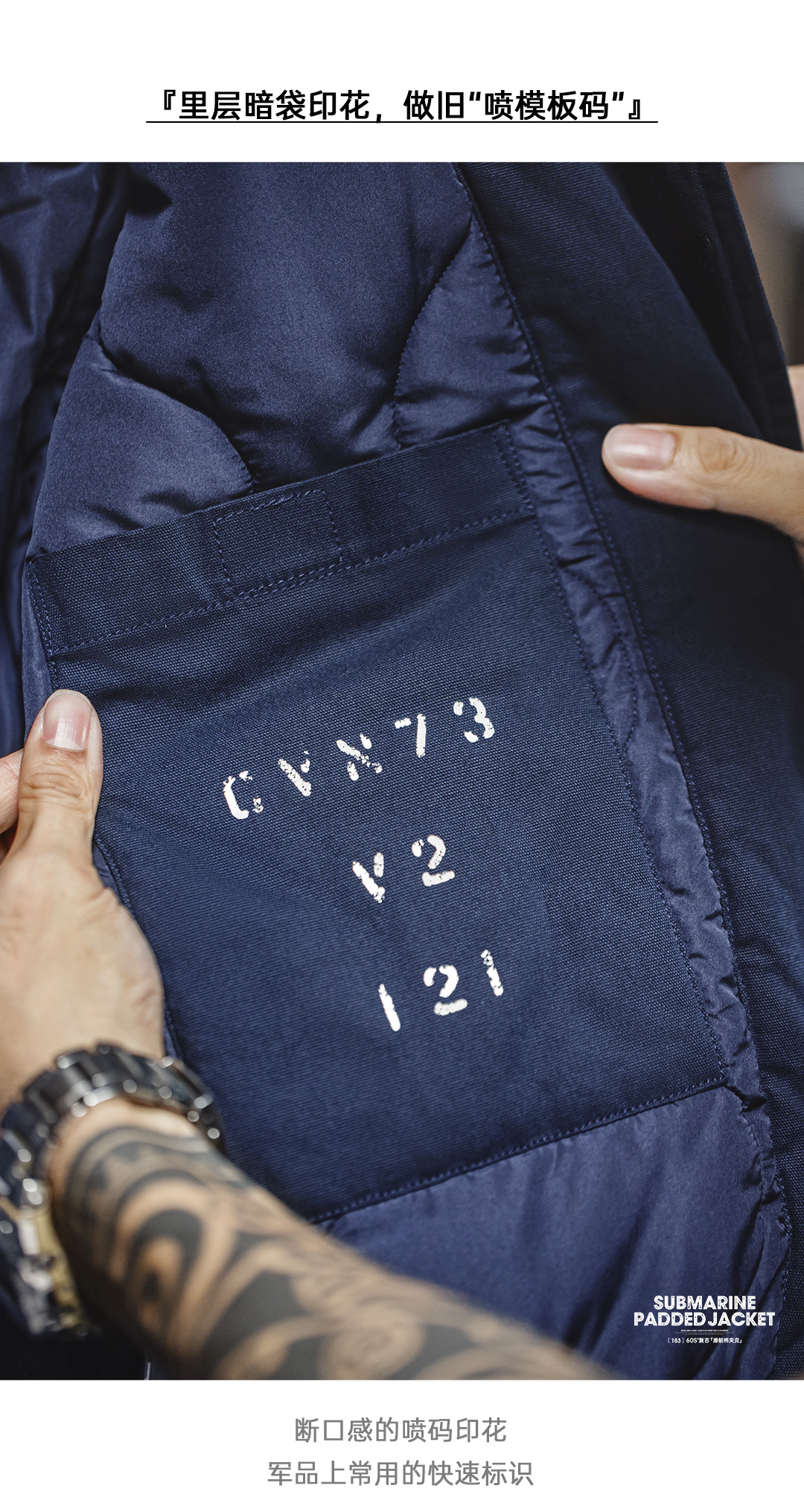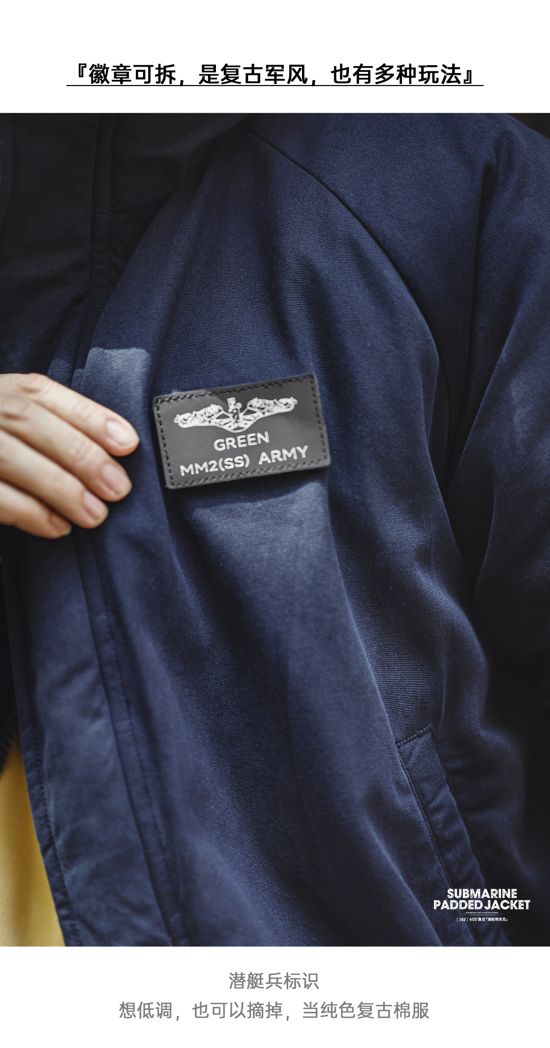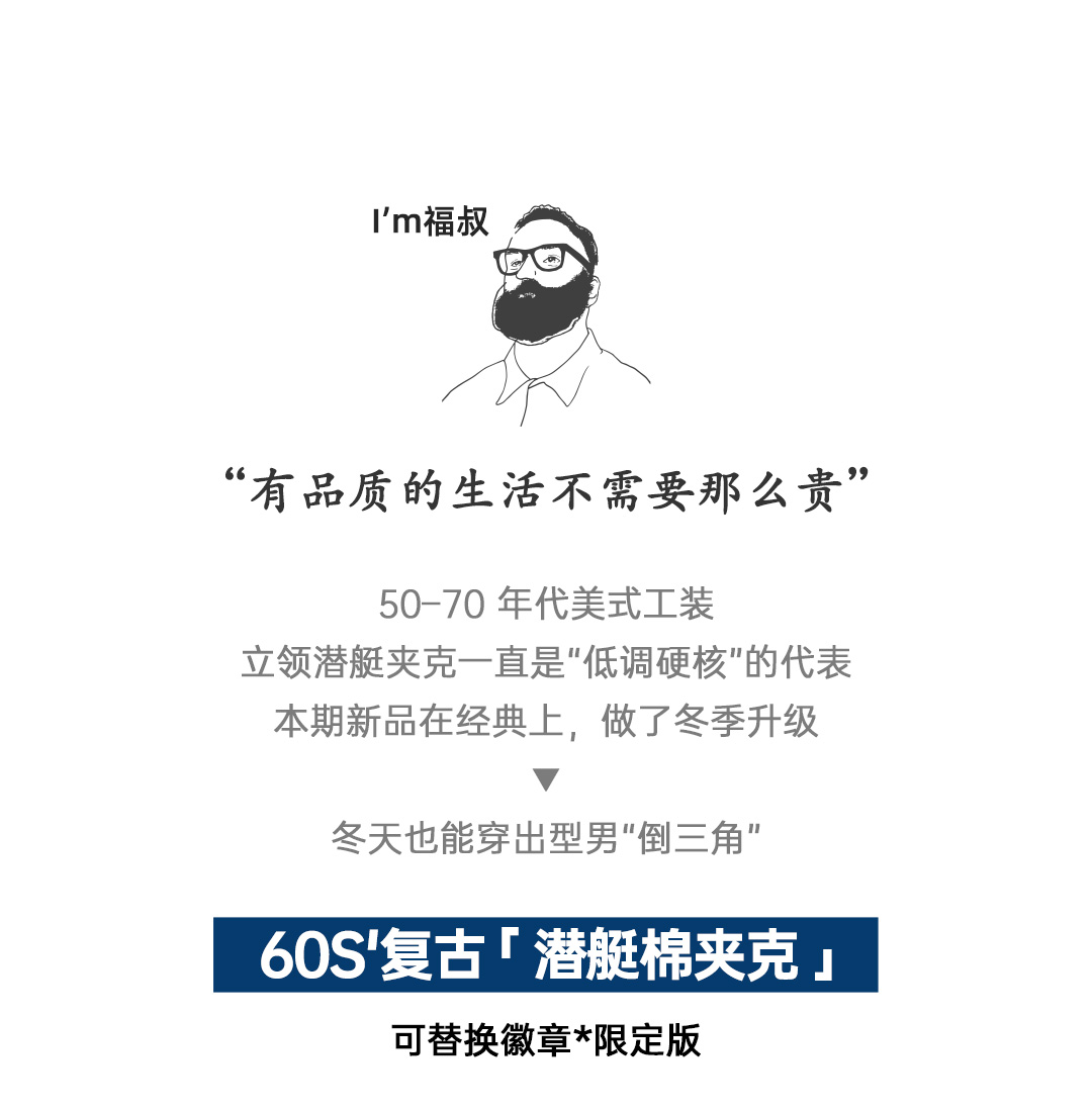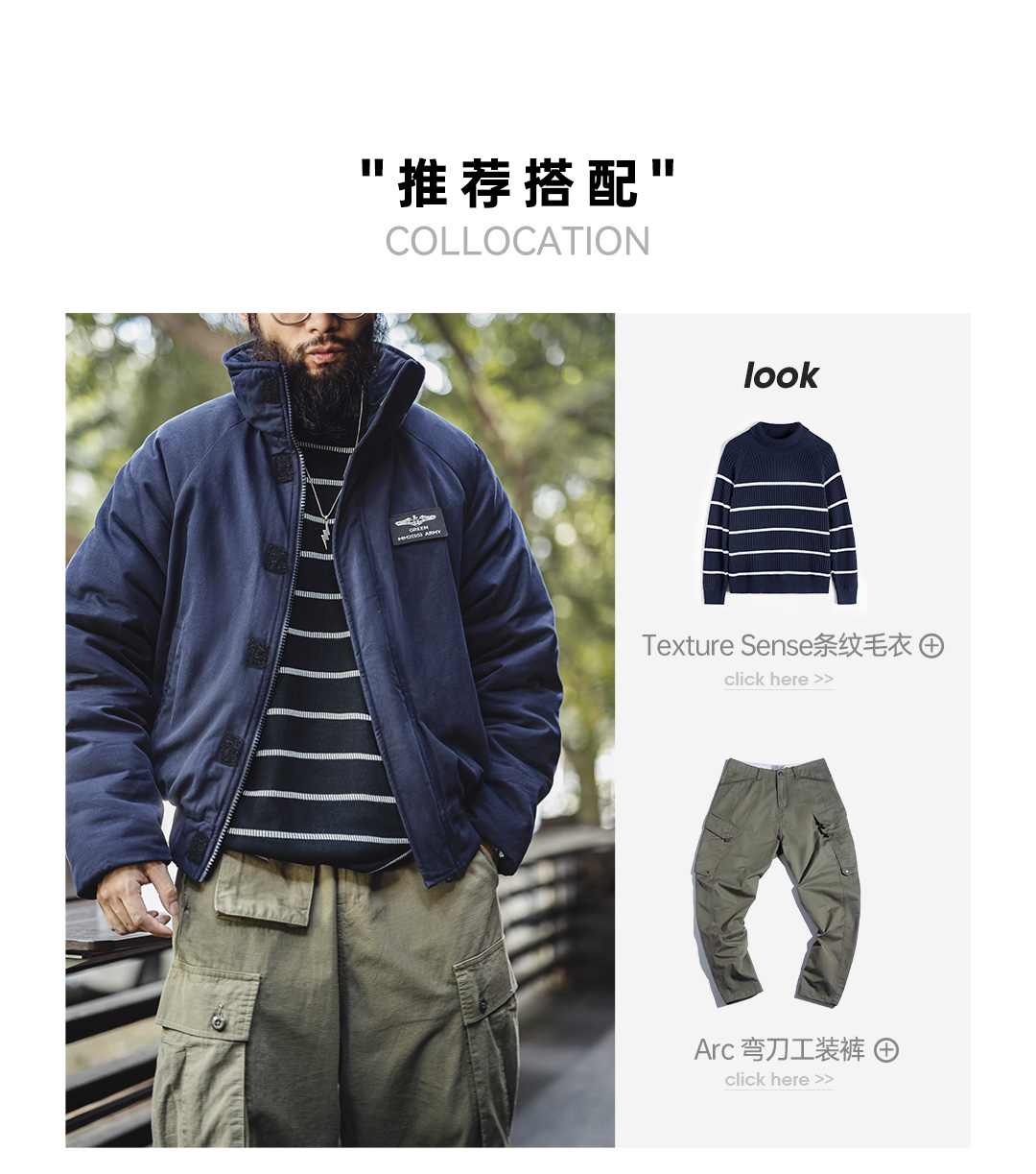 马登工装美式海军蓝色立领棉服加厚保暖短款插肩袖夹克外套男秋冬