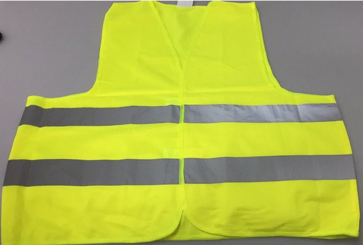【外观】黄色背心,上面缝有反光条,干净整洁,无污渍,无多余线头。