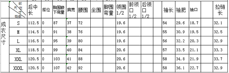 --- 尺码 ---