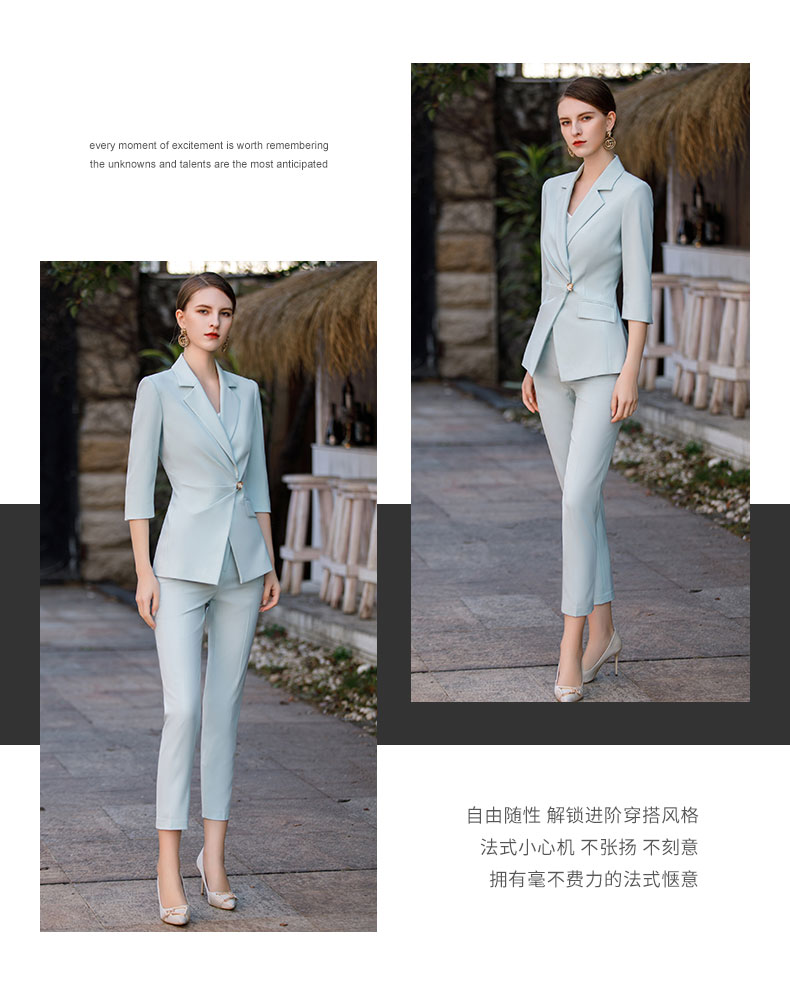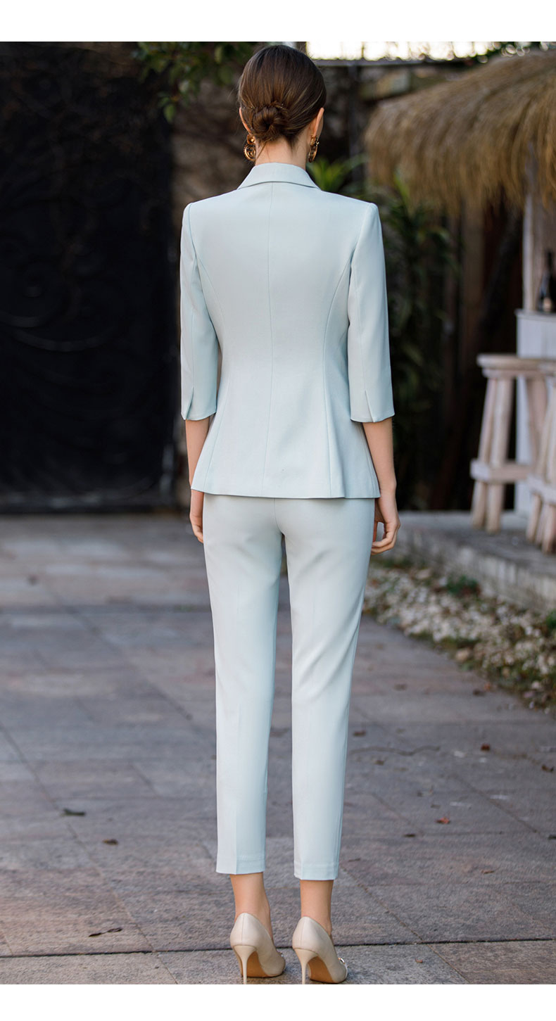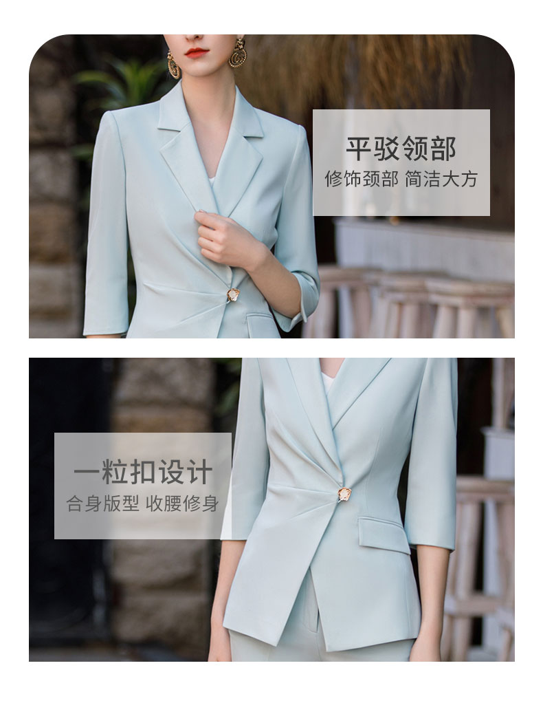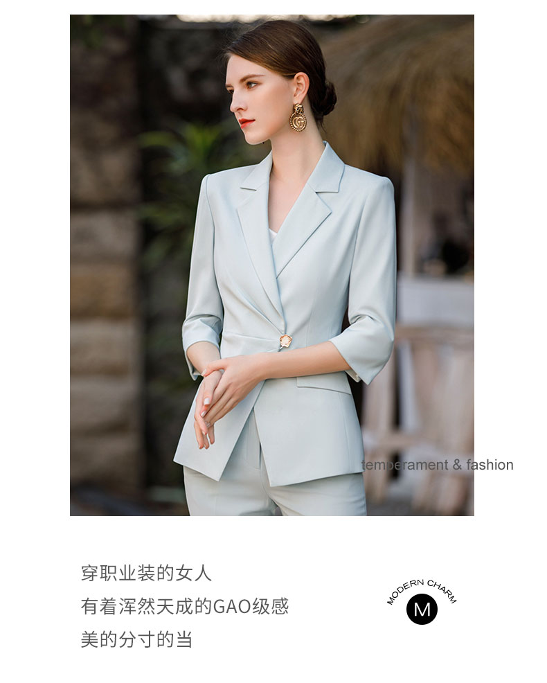 春季浅绿色播音艺考服装女主持人正装套装职业装气质女神范西服