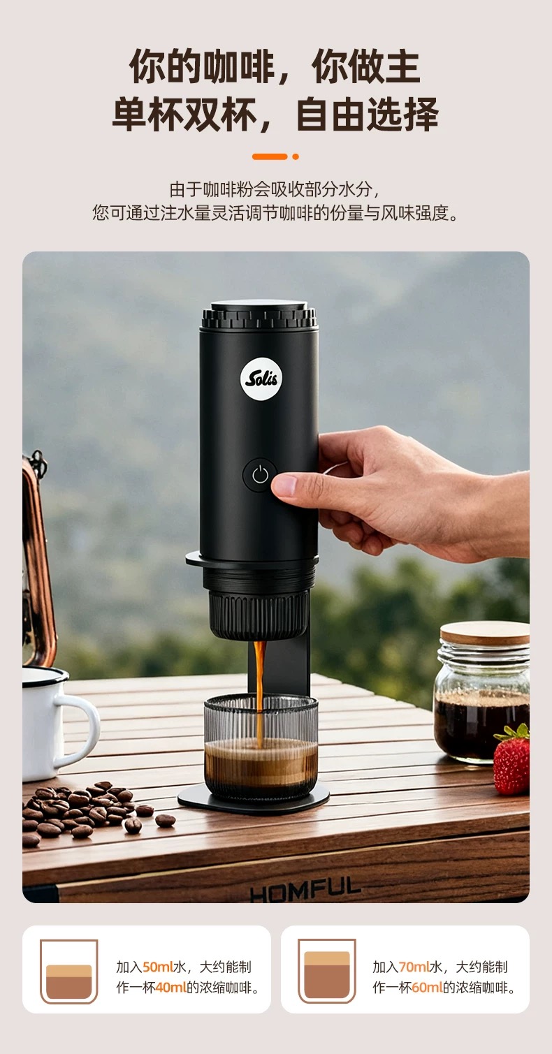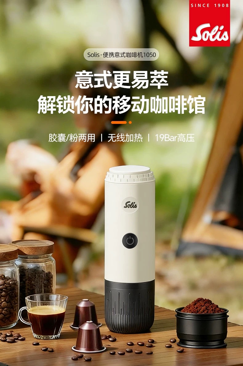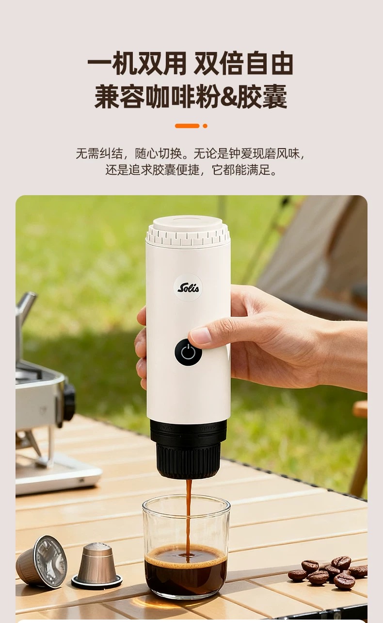 瑞士 Solis/索利斯 1050 便携意式咖啡机 粉和胶囊双用萃取 户外露营 无线充电 轻便便携