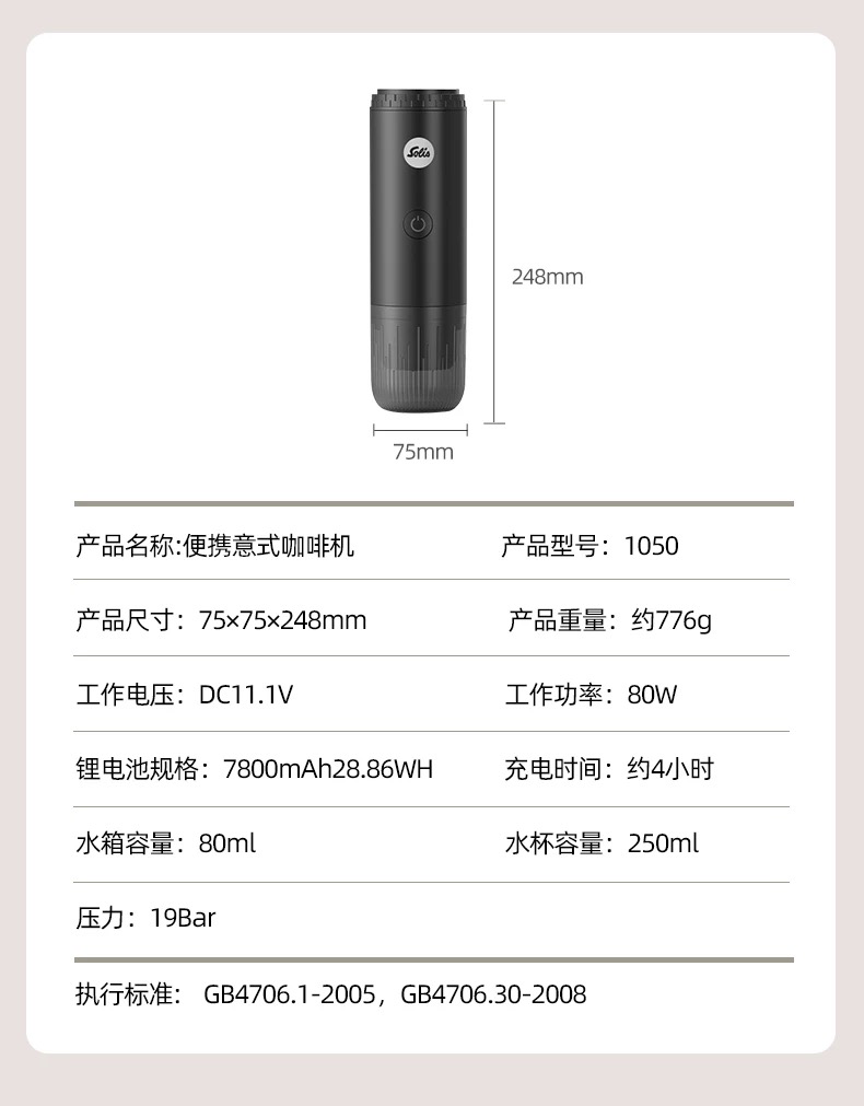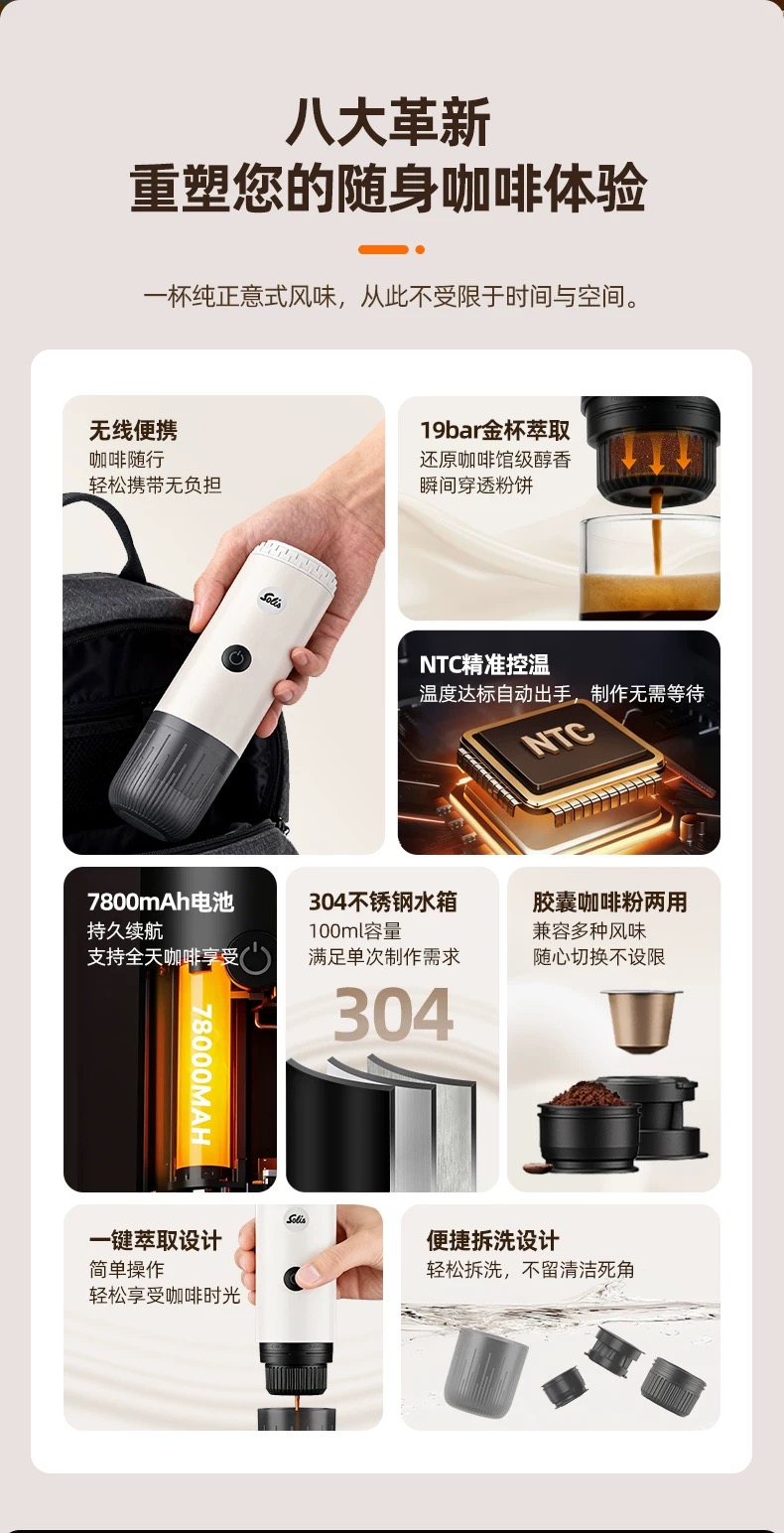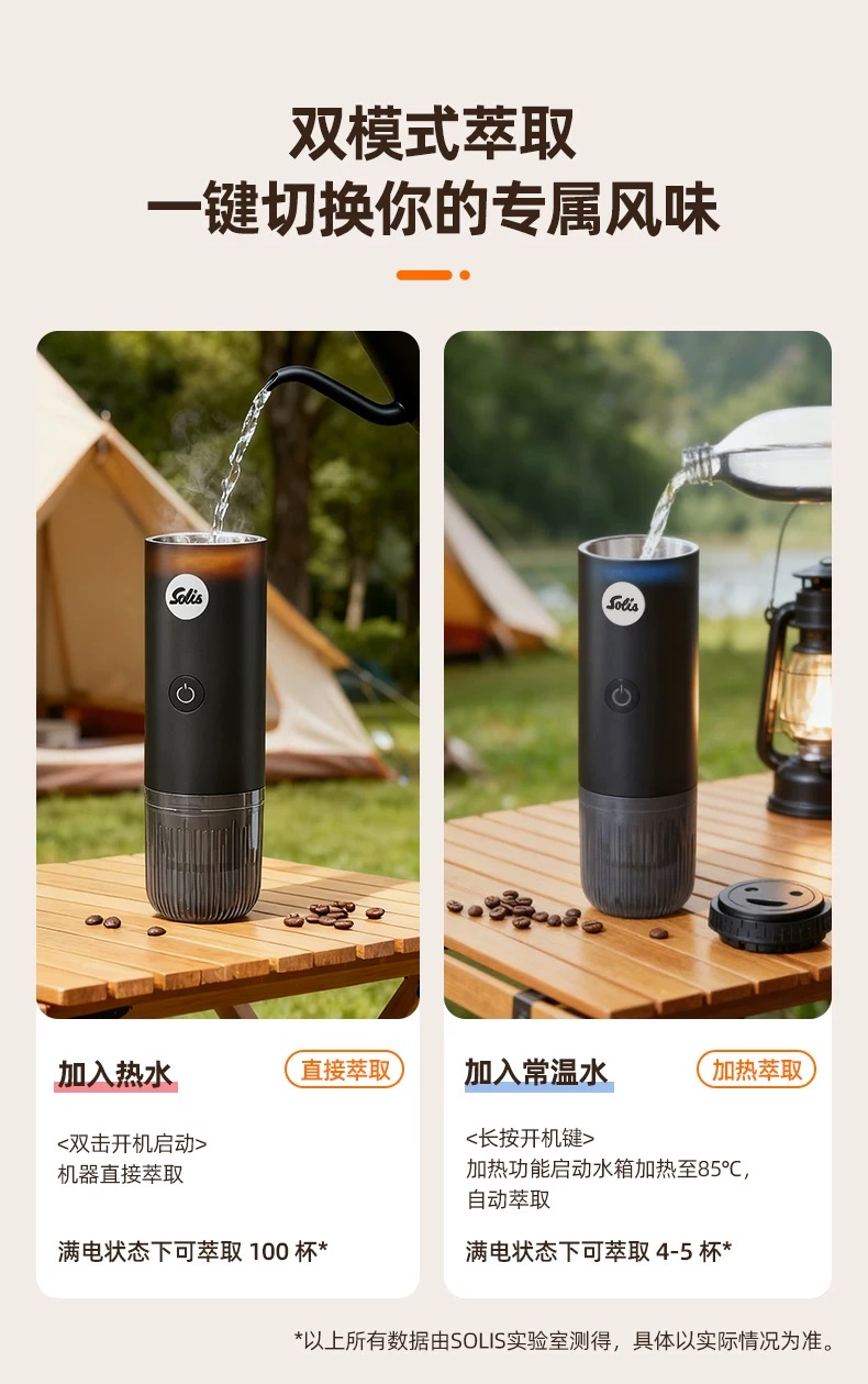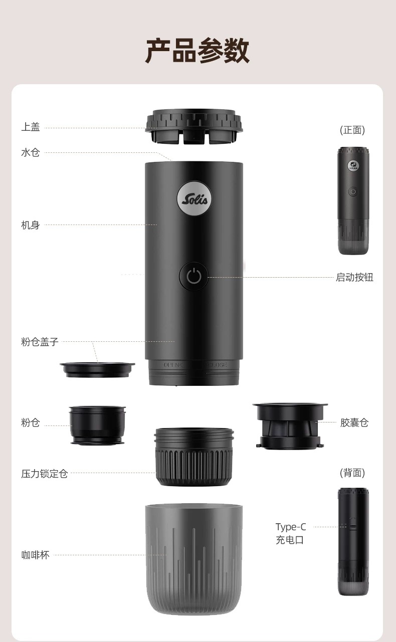 瑞士 Solis/索利斯 1050 便携意式咖啡机 粉和胶囊双用萃取 户外露营 无线充电 轻便便携