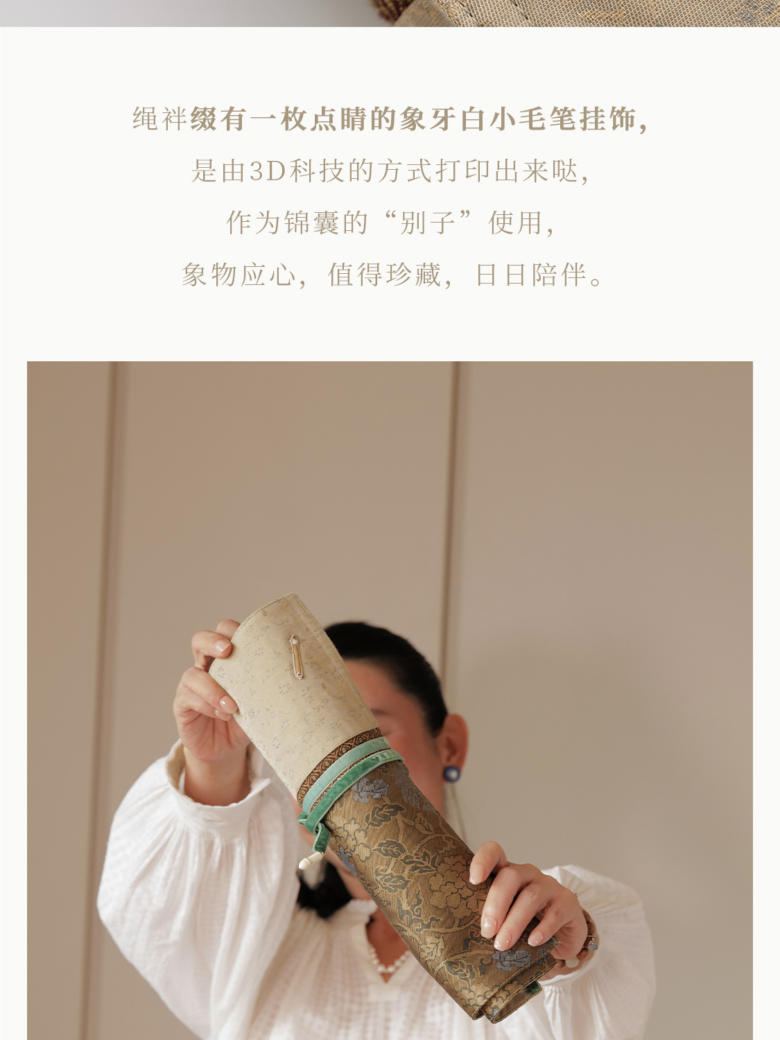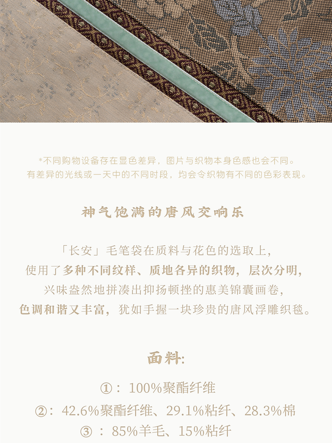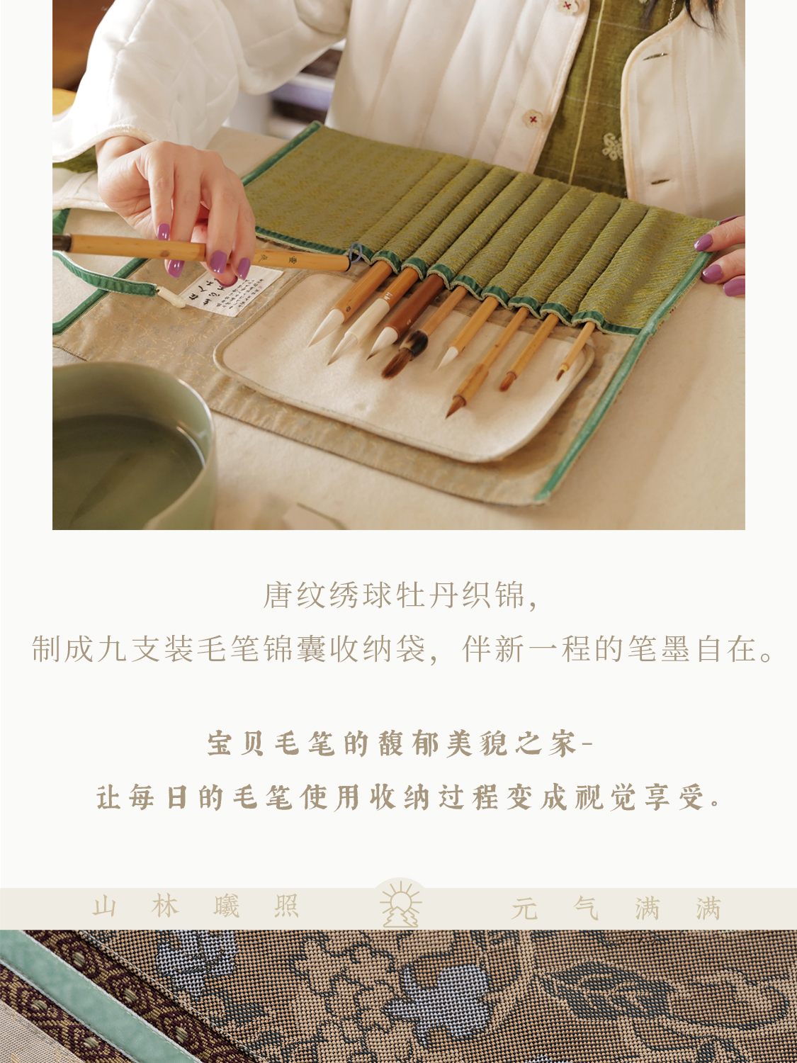 长安 绣球牡丹纹样唐锦 九支装毛笔收纳袋 山林曦照