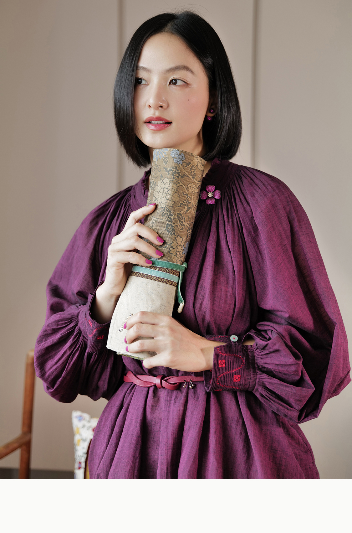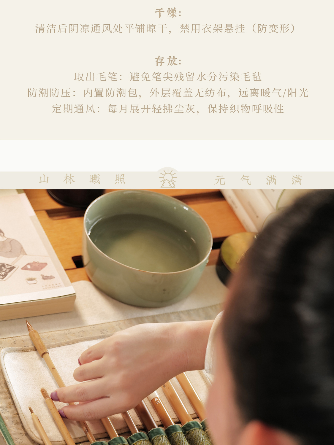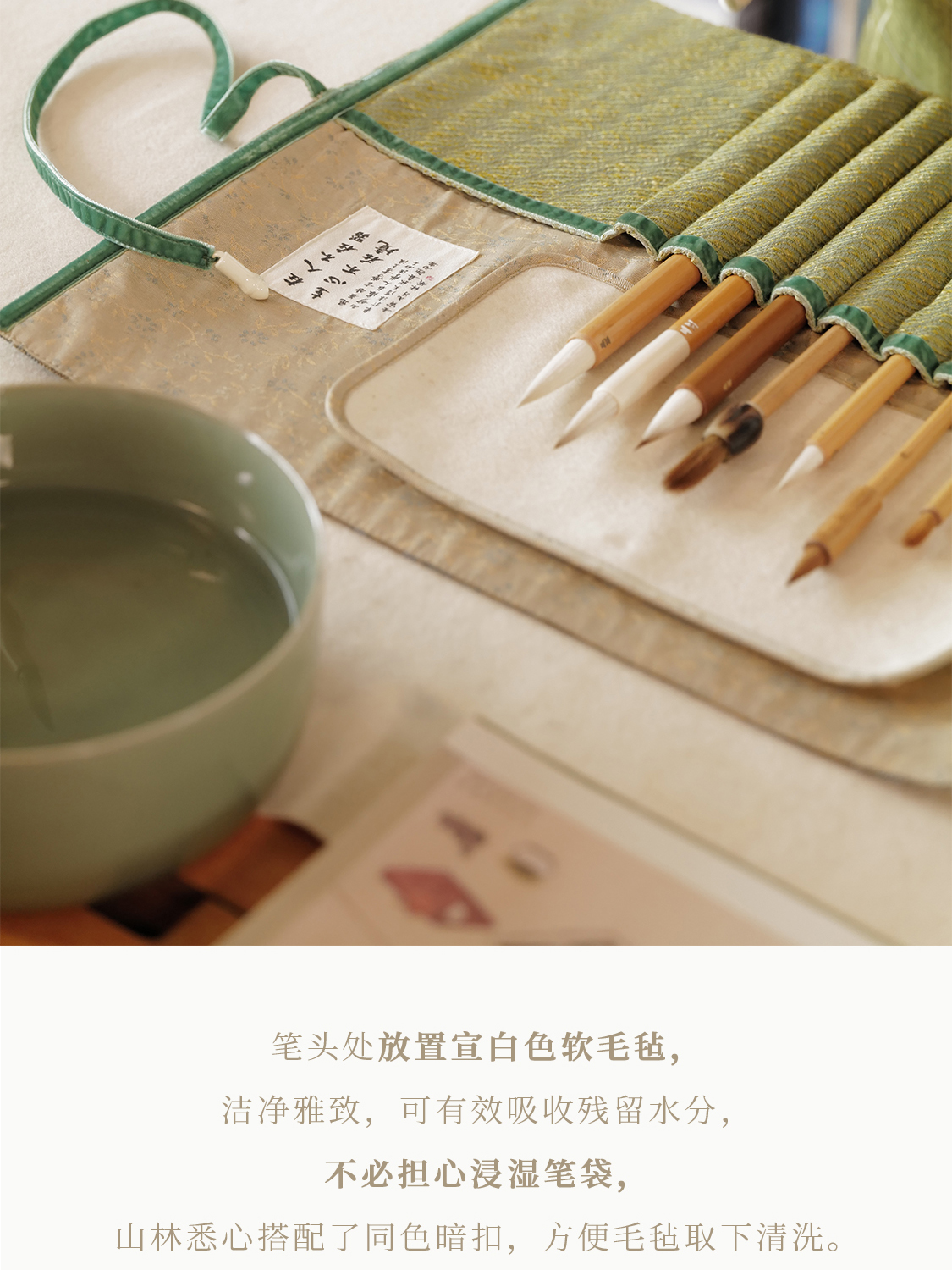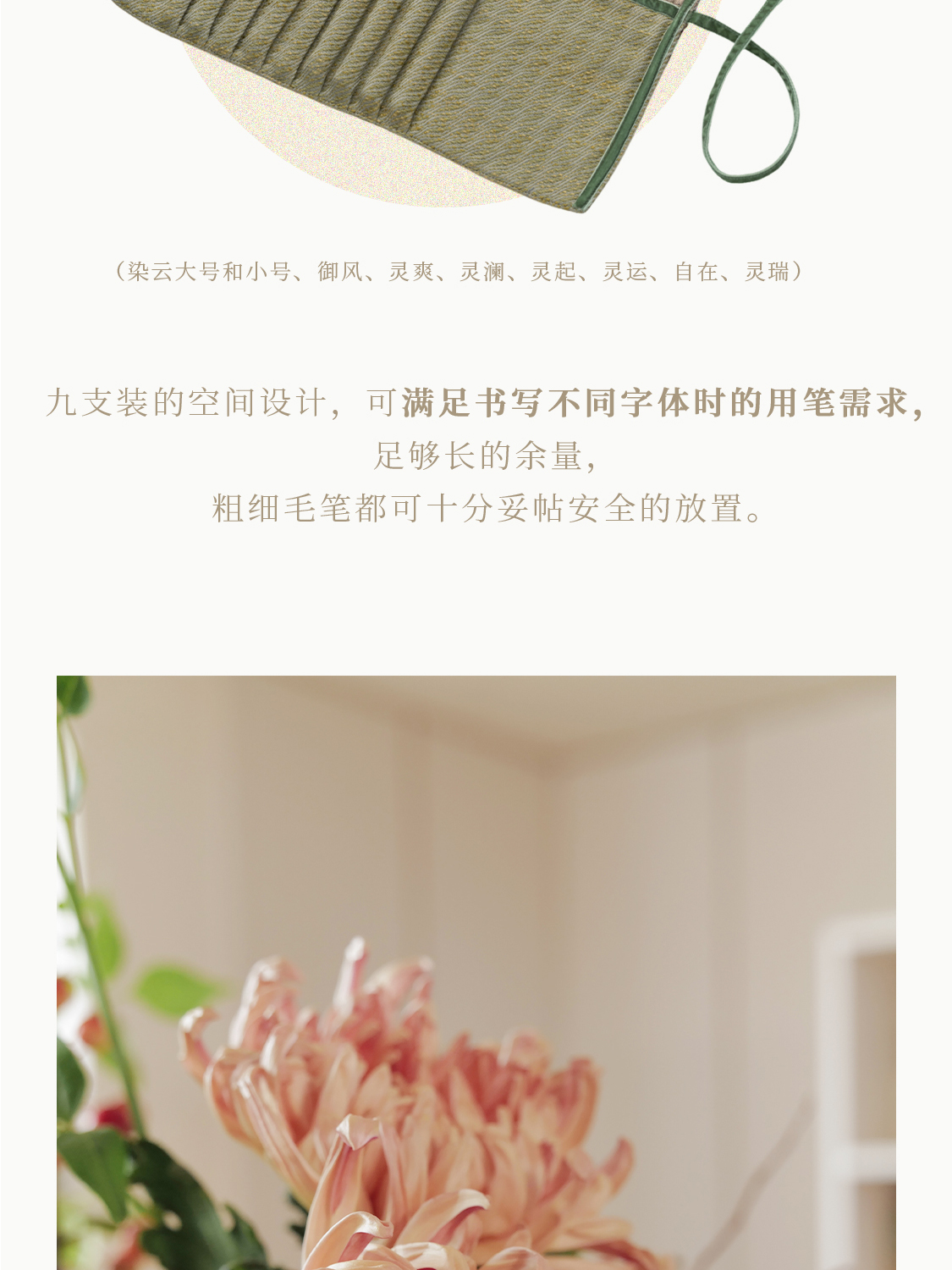 长安 绣球牡丹纹样唐锦 九支装毛笔收纳袋 山林曦照