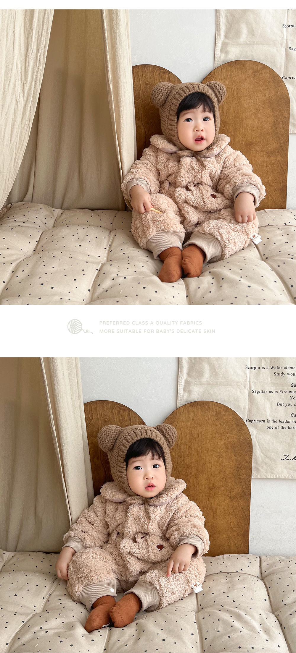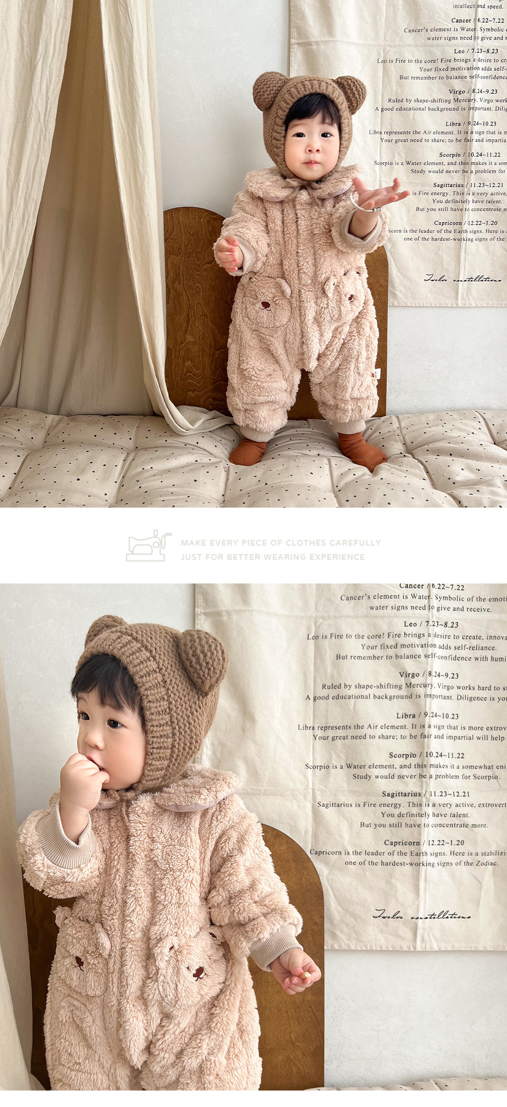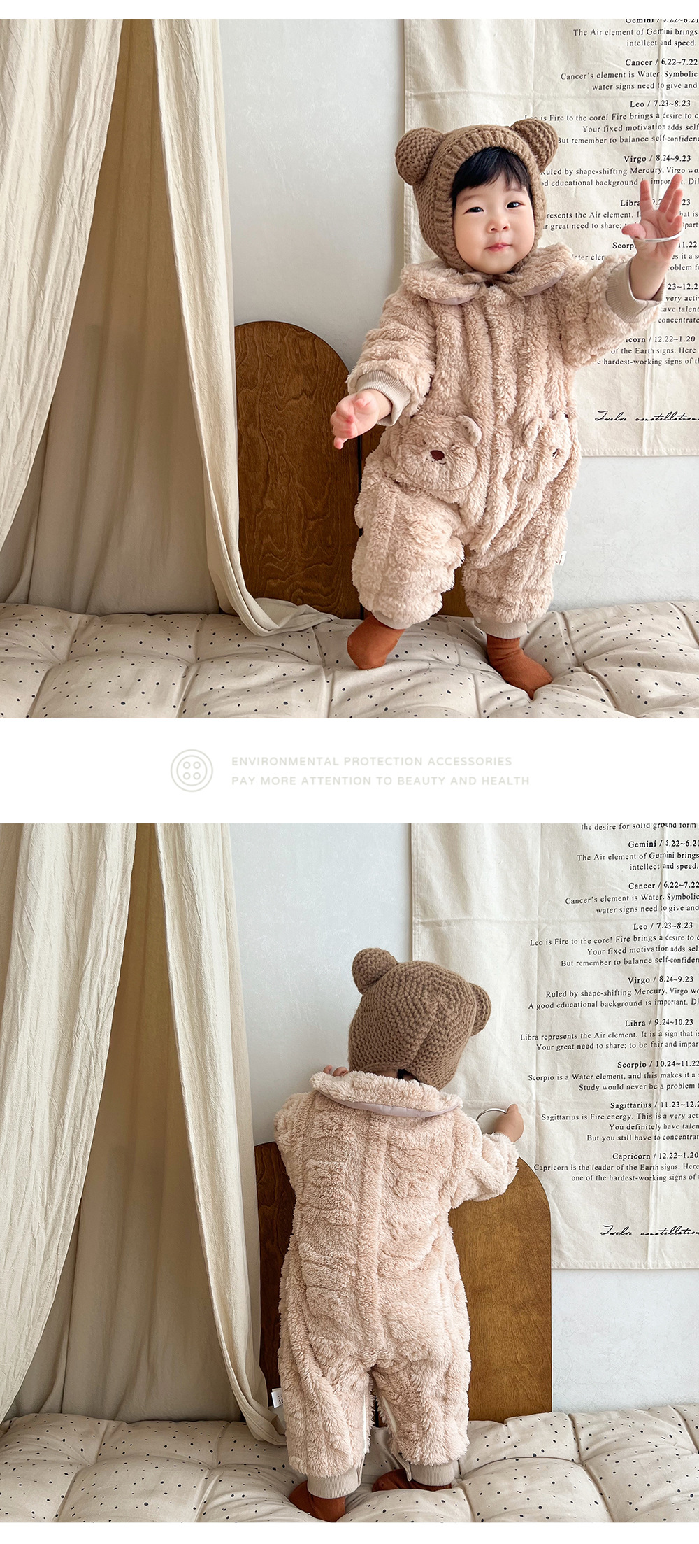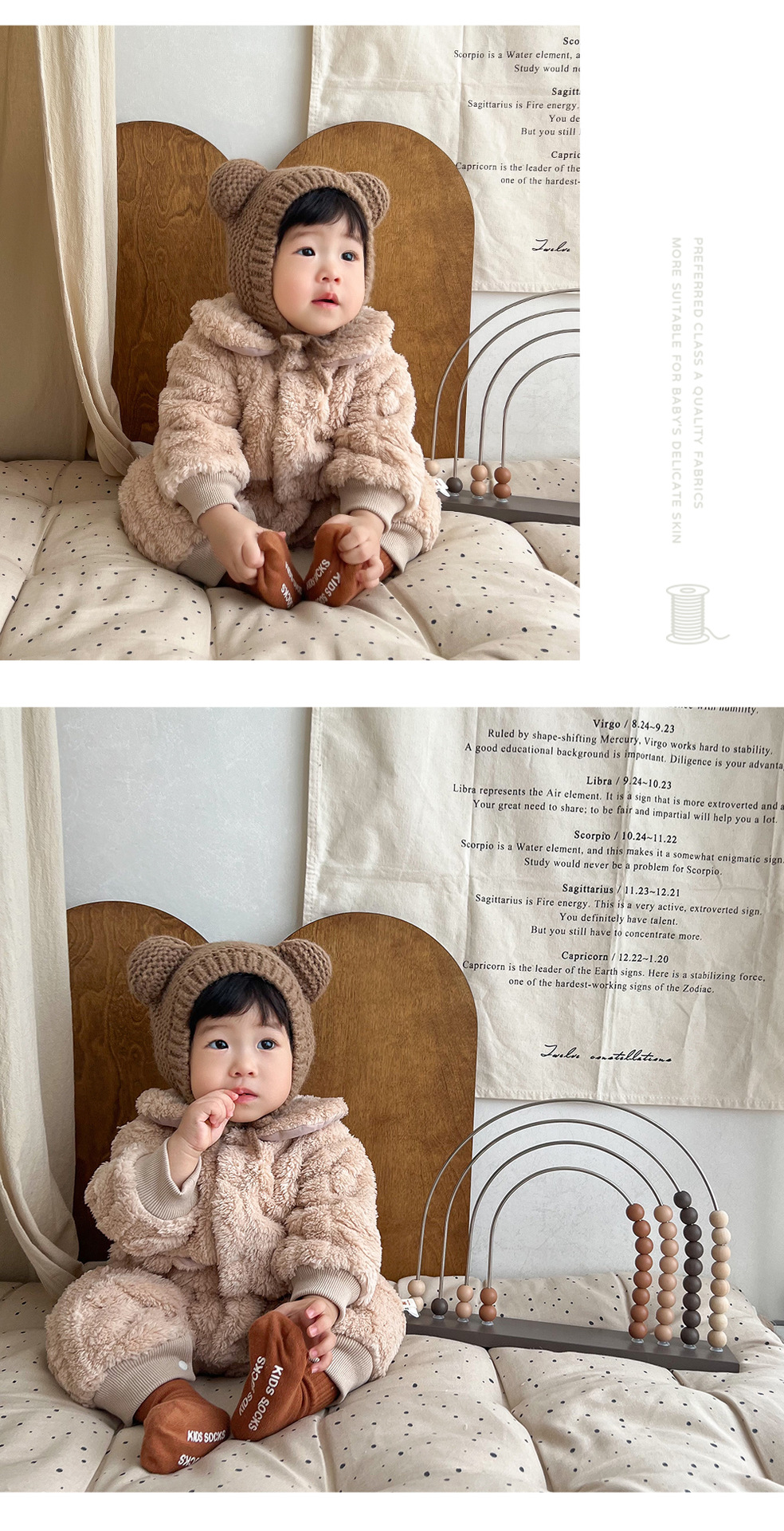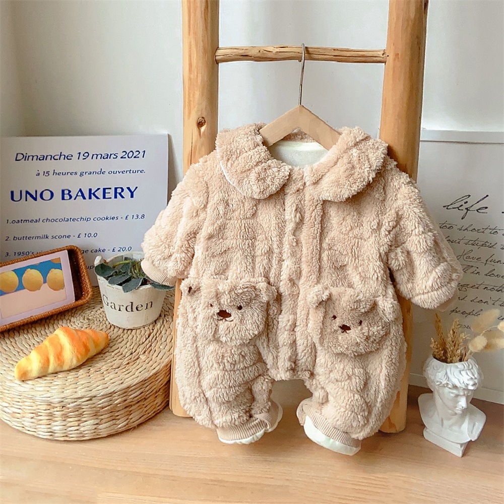 【可爱小熊羊羔绒哈衣】婴儿秋冬款毛毛连体衣新款加绒宝宝保暖爬爬服