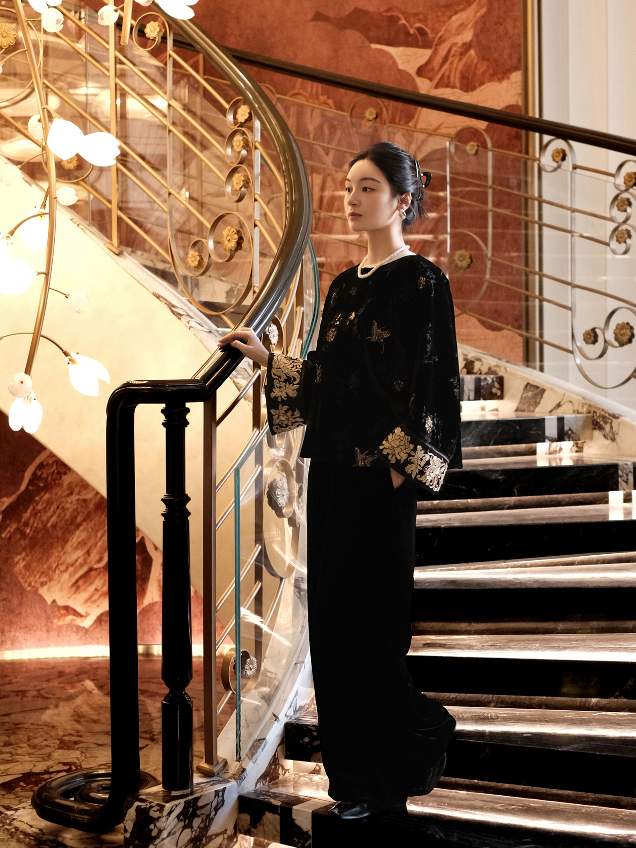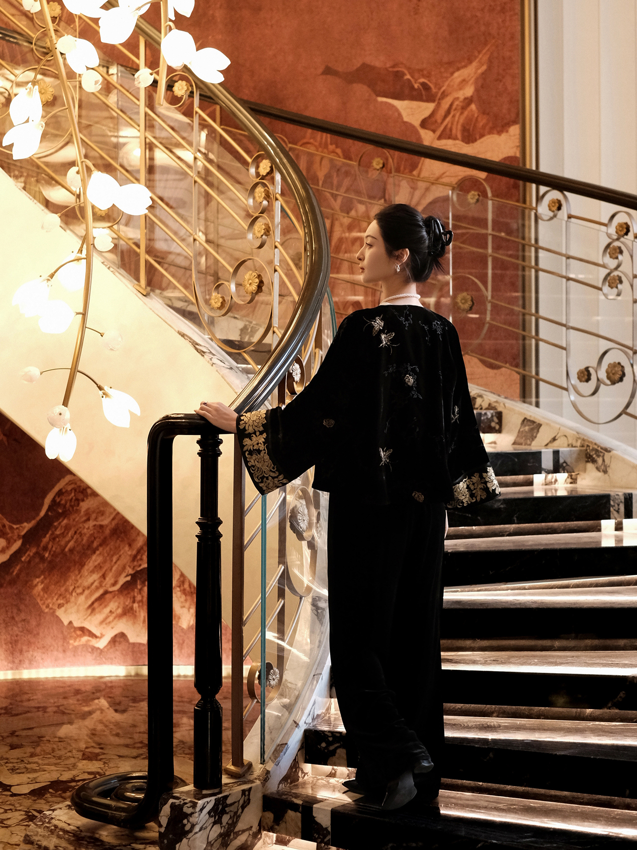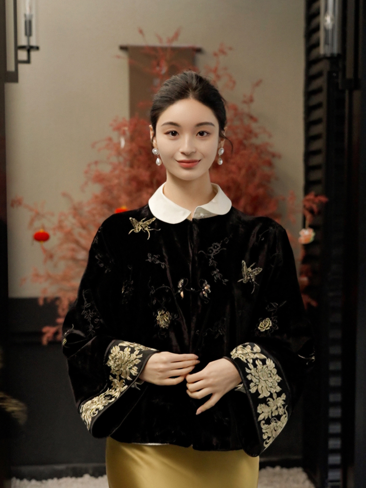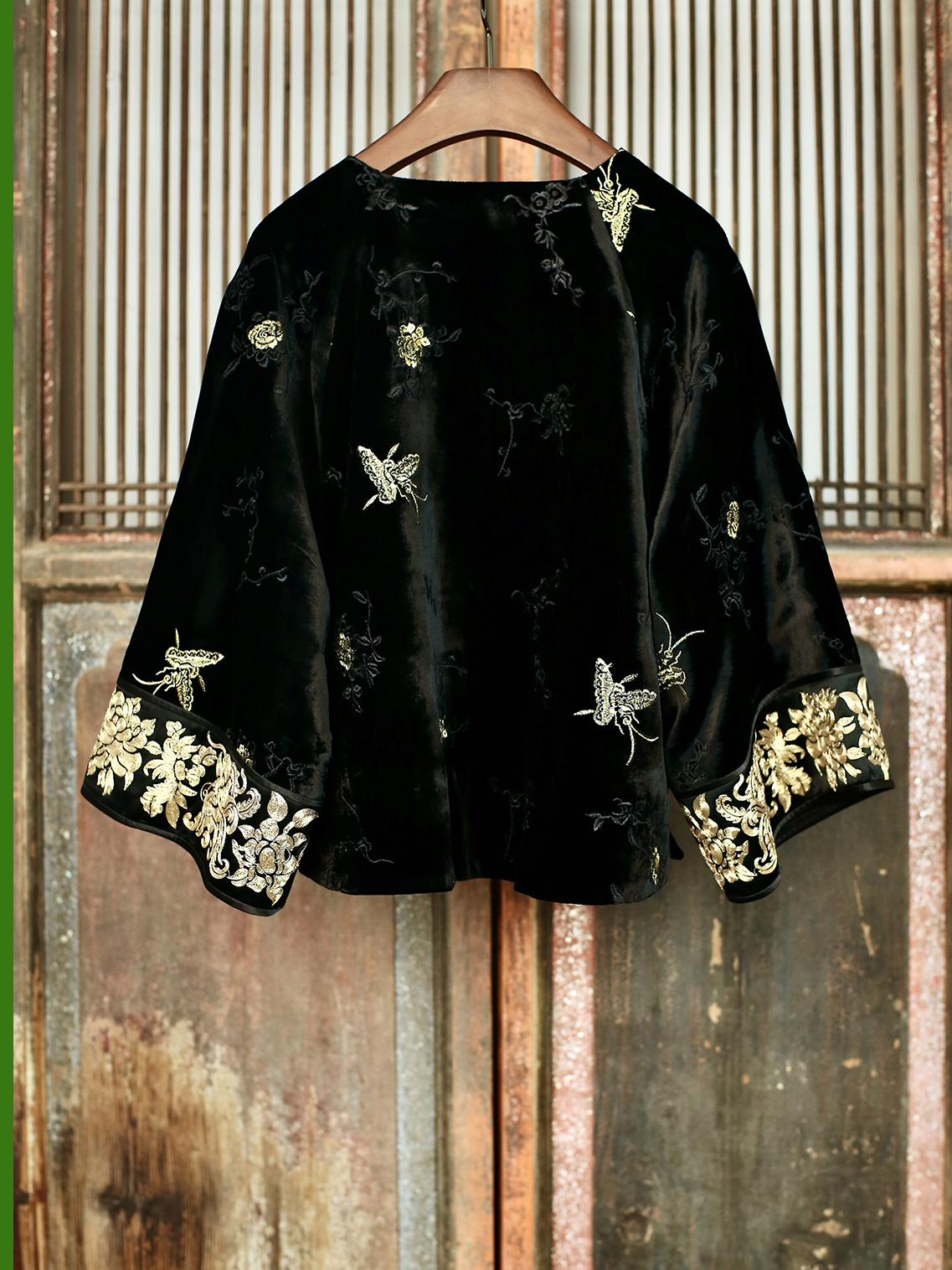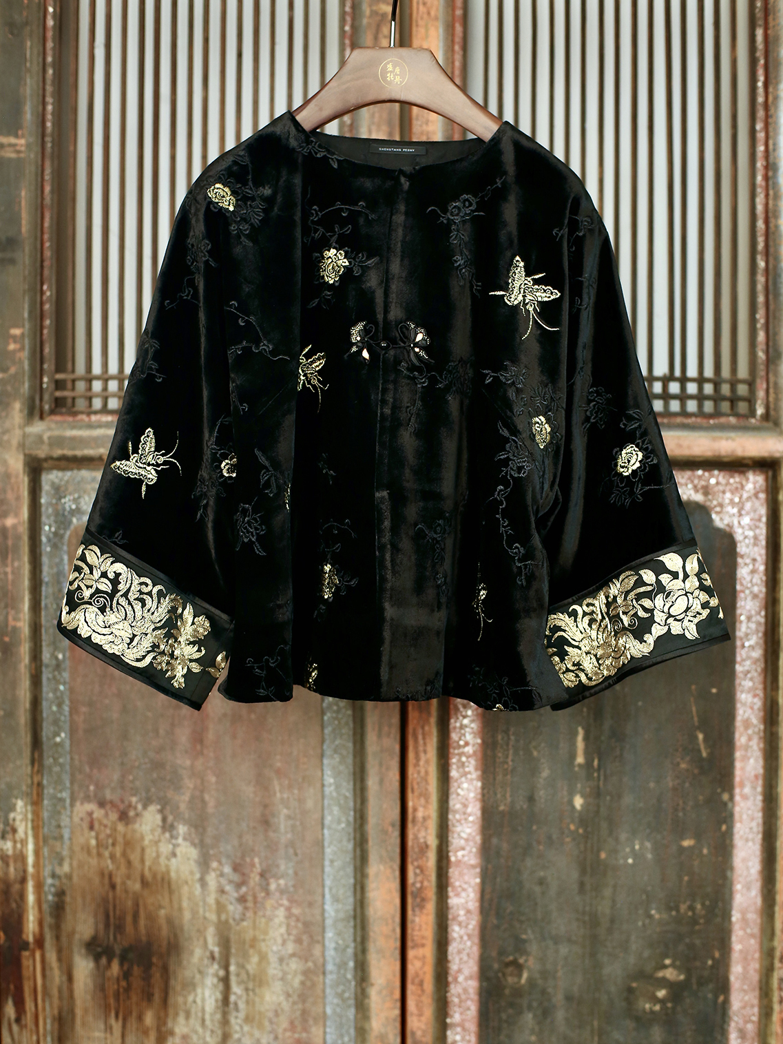 盛唐牡丹盛奢系列| 丝绒蝴蝶绣花盘金绣外套