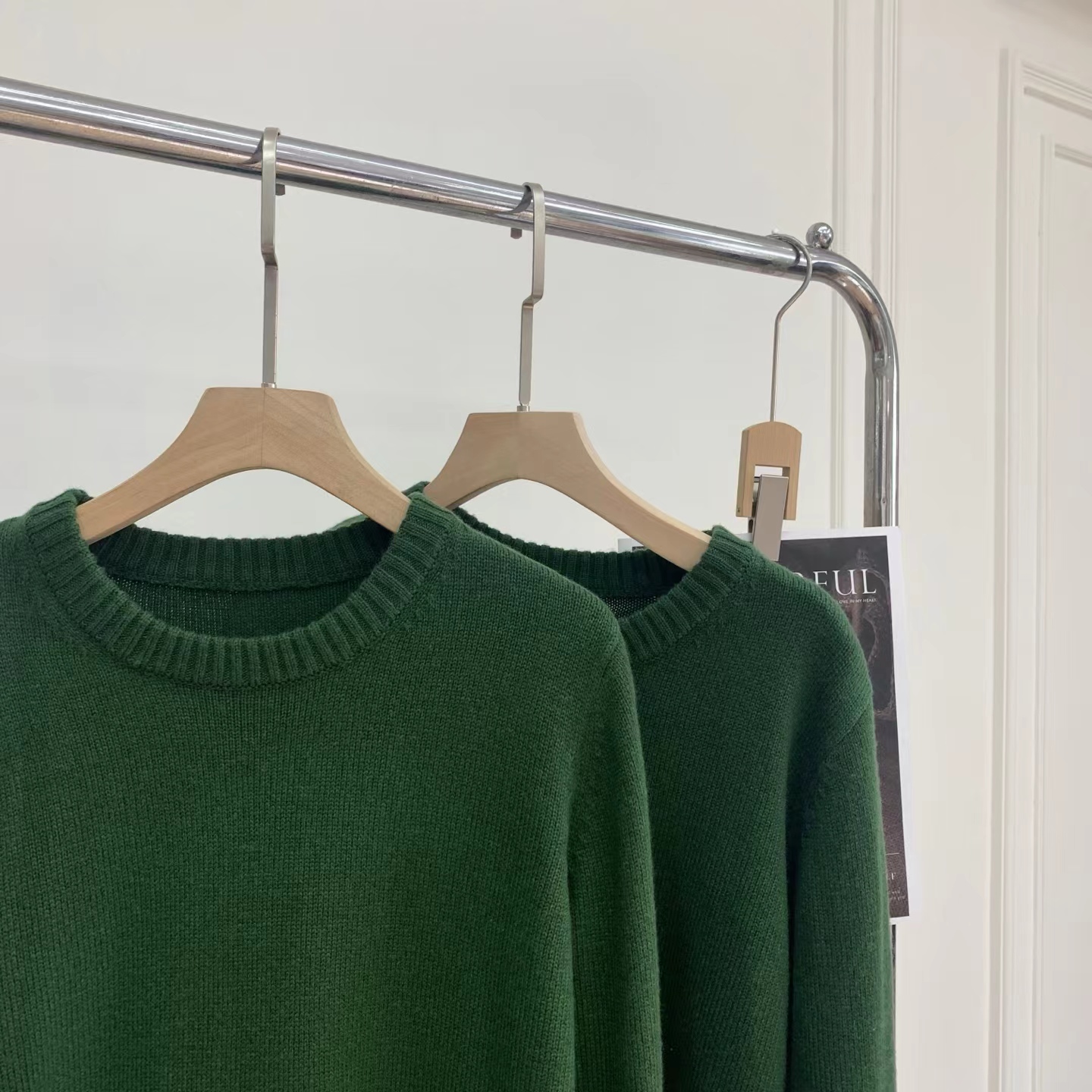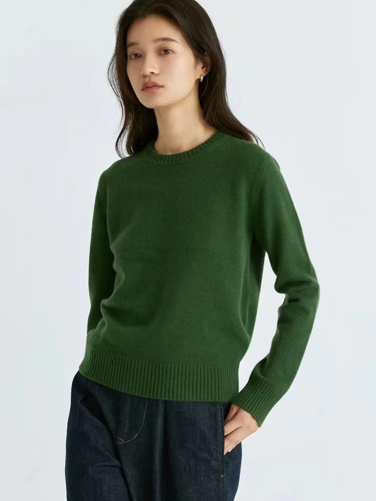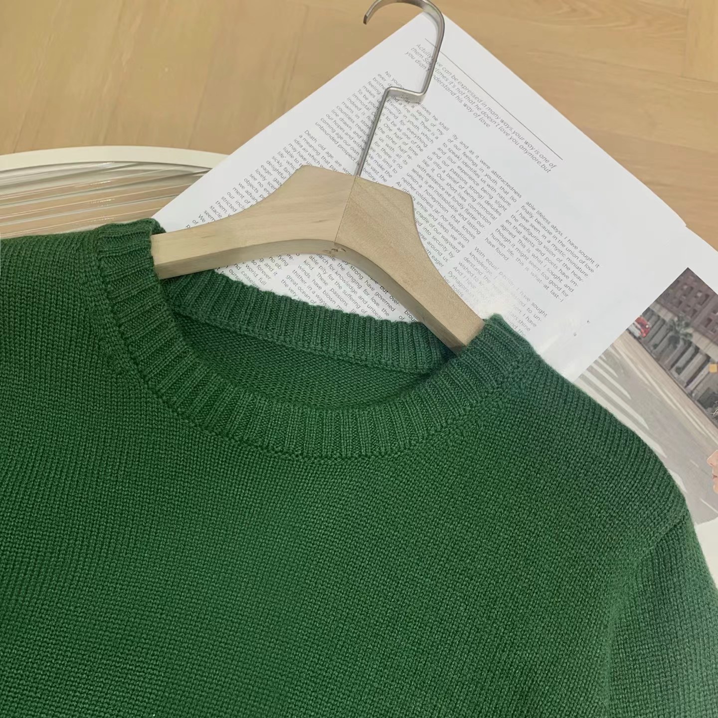 显白碧玺绿~冬季糕级感宽松百搭套头圆领羊毛毛衣秋冬的衣橱里,总需要一件能瞬间点亮穿搭的亮色单品,这款圆领毛衣以浓郁却不张扬的碧玺绿为主调,像揉碎了深秋的森林光影,黄皮上身提亮肤色,冷白皮穿更是自带清冷糕级的氛围感。小宽松版型,宽松度把控得恰到好处,既不会过于松垮显得拖沓,又能巧妙藏住腰腹的小赘肉,对各种身形都有包容度。肩线采用自然小落肩设计,弱化了肩部的硬朗线条,不会有紧绷的束缚感。精典的小圆领高度贴合颈部曲线,不卡脖子也不会露出过多肌肤,兼顾了保暖性与精 致感,内搭衬衫或高领打底也不会显得臃肿。袖口与下摆均采用细密的罗纹收边工艺,罗纹的纹理与衣身的平针针织形成质感对比,增添了视觉层次。下摆的罗纹宽度适中,能轻轻收拢衣摆,让整体造型更利落,避免了毛衣下摆拖沓的问题。面料选用含优质羊毛材质,触感柔软细腻如云朵,贴身穿也毫无扎肤感,羊毛的天然保暖性足以应对初冬的微凉。针织的密度把控得宜,既保证了透气性,又不会过于单薄。