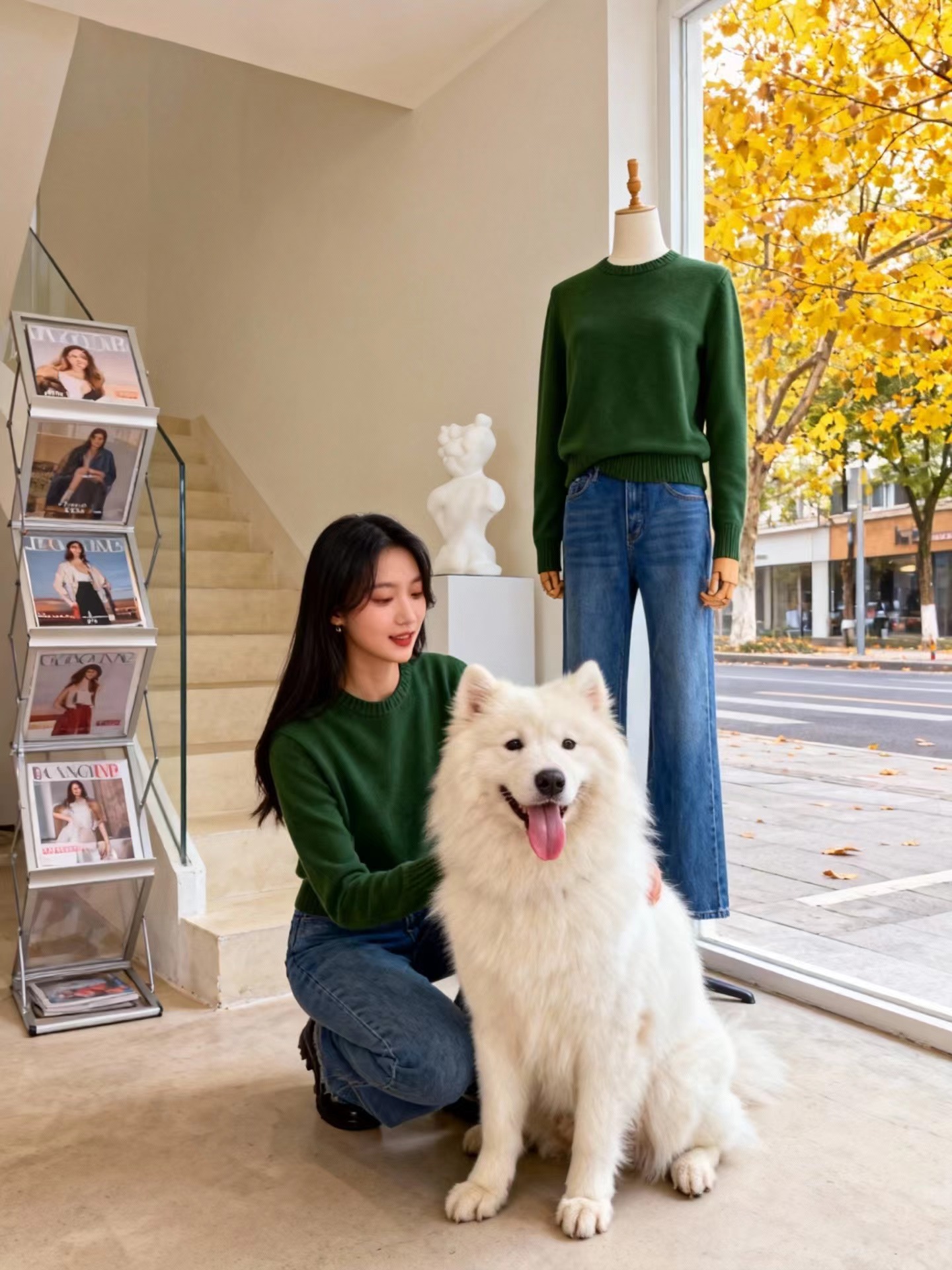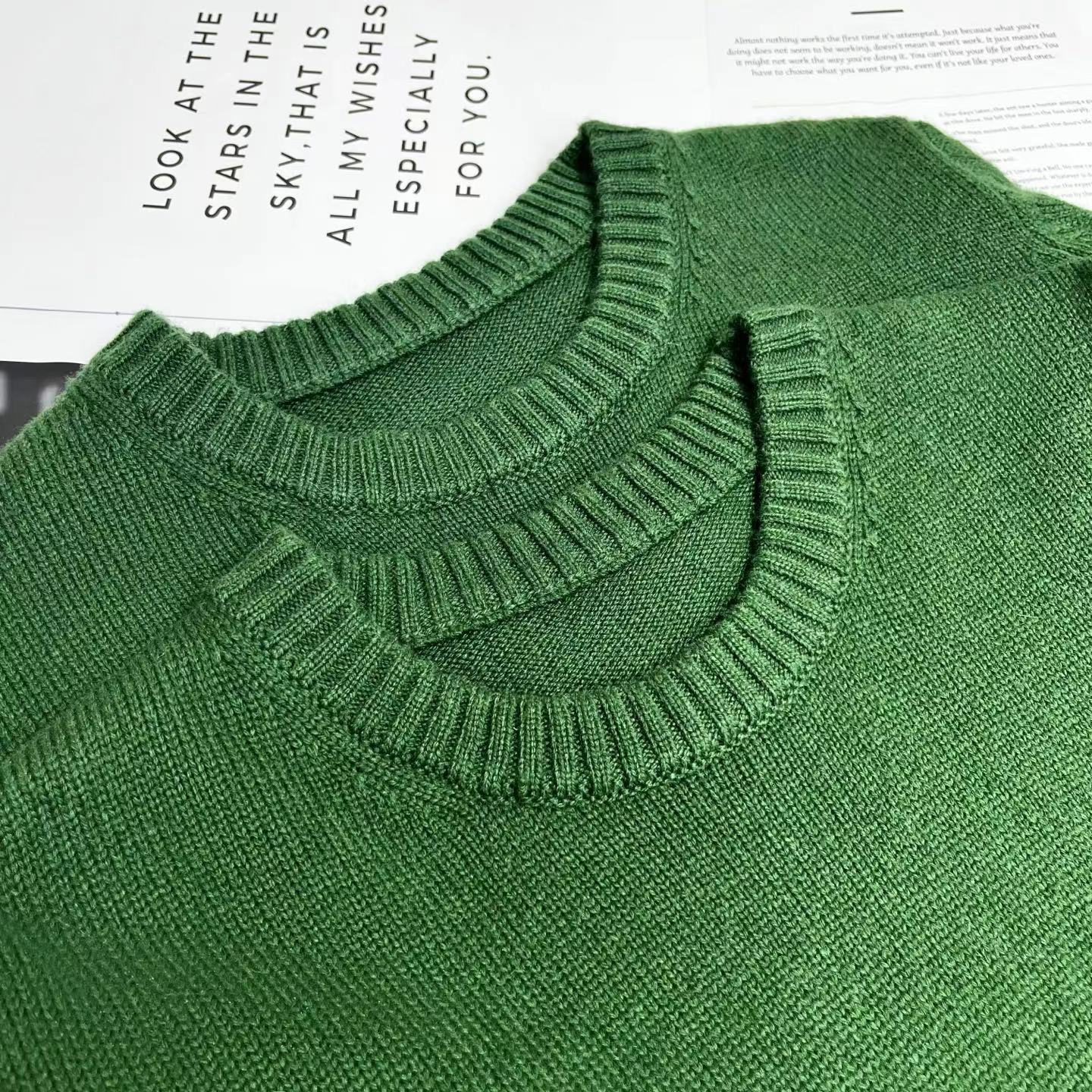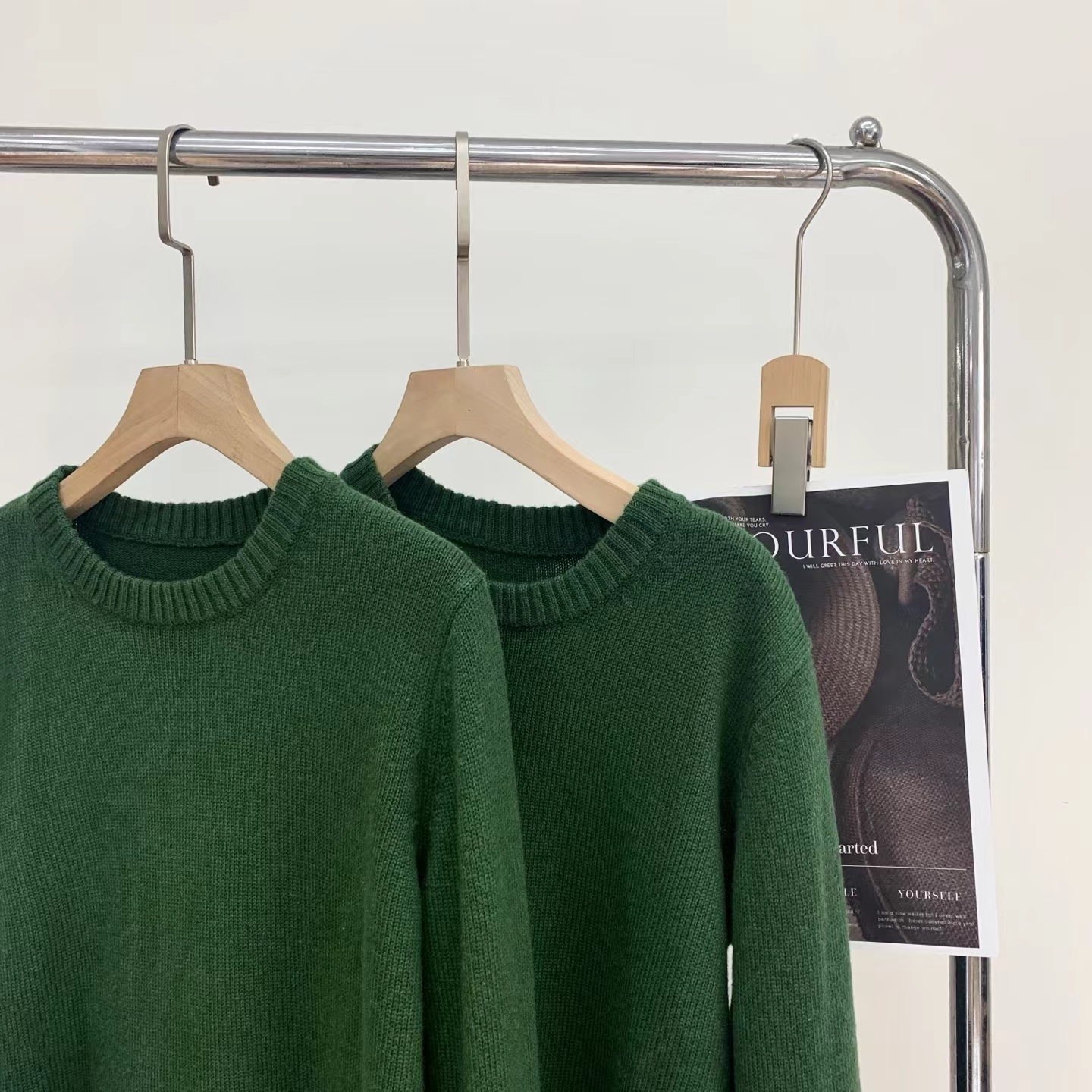 显白碧玺绿~冬季糕级感宽松百搭套头圆领羊毛毛衣秋冬的衣橱里,总需要一件能瞬间点亮穿搭的亮色单品,这款圆领毛衣以浓郁却不张扬的碧玺绿为主调,像揉碎了深秋的森林光影,黄皮上身提亮肤色,冷白皮穿更是自带清冷糕级的氛围感。小宽松版型,宽松度把控得恰到好处,既不会过于松垮显得拖沓,又能巧妙藏住腰腹的小赘肉,对各种身形都有包容度。肩线采用自然小落肩设计,弱化了肩部的硬朗线条,不会有紧绷的束缚感。精典的小圆领高度贴合颈部曲线,不卡脖子也不会露出过多肌肤,兼顾了保暖性与精 致感,内搭衬衫或高领打底也不会显得臃肿。袖口与下摆均采用细密的罗纹收边工艺,罗纹的纹理与衣身的平针针织形成质感对比,增添了视觉层次。下摆的罗纹宽度适中,能轻轻收拢衣摆,让整体造型更利落,避免了毛衣下摆拖沓的问题。面料选用含优质羊毛材质,触感柔软细腻如云朵,贴身穿也毫无扎肤感,羊毛的天然保暖性足以应对初冬的微凉。针织的密度把控得宜,既保证了透气性,又不会过于单薄。