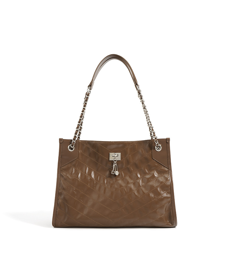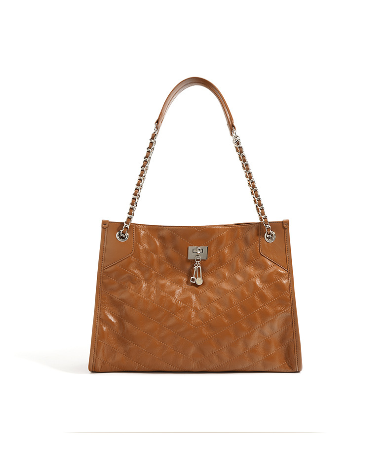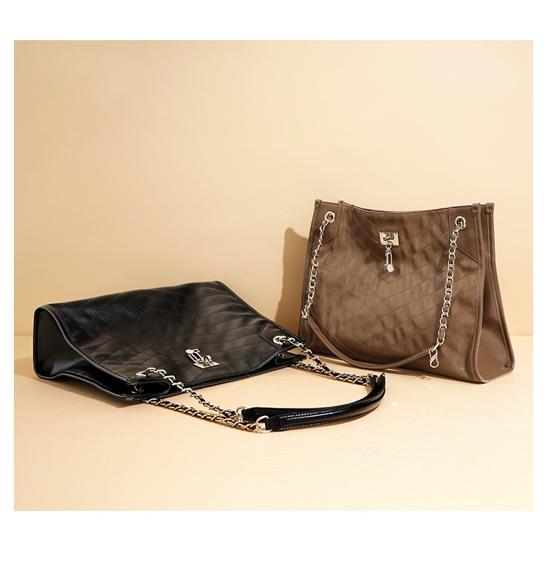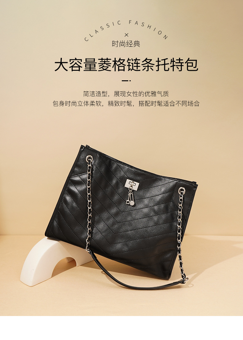 【预售3天】大容量菱格链条包包女2025新款小众时尚通勤单肩斜挎流浪托特包F-9637