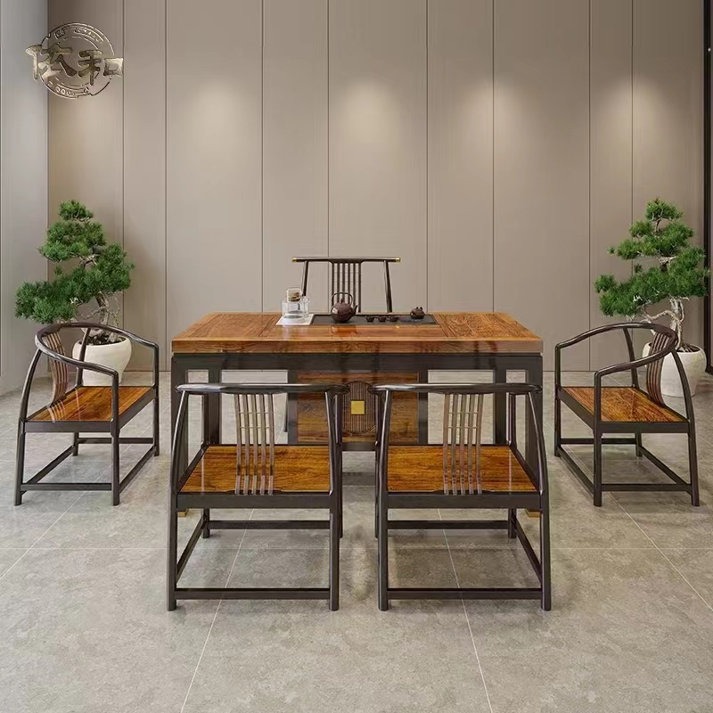 2.18米-(大展宏图)檀香实木六件套茶桌