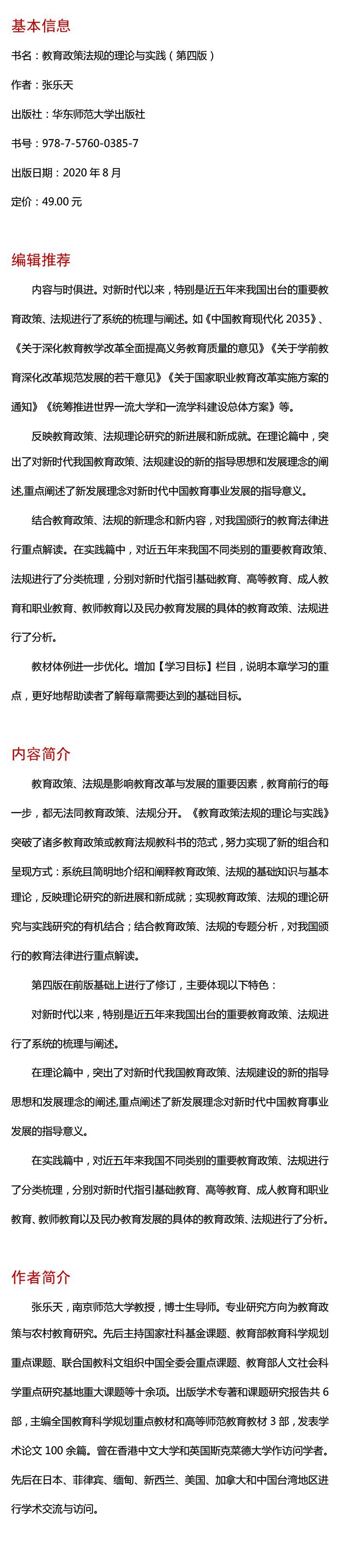 教育政策法规的理论与实践 第四版 张乐天 教育类专业教材