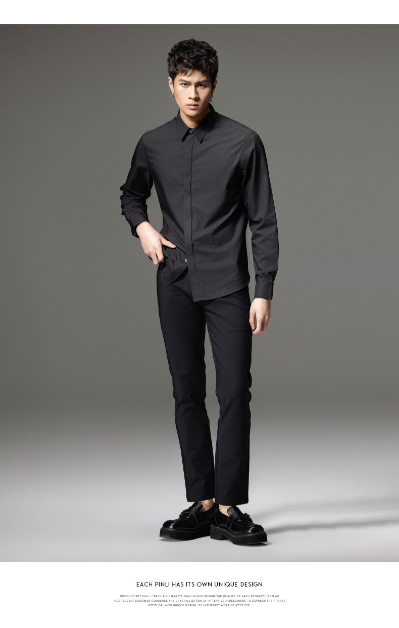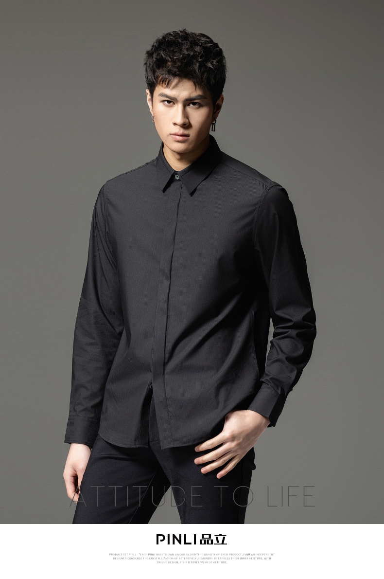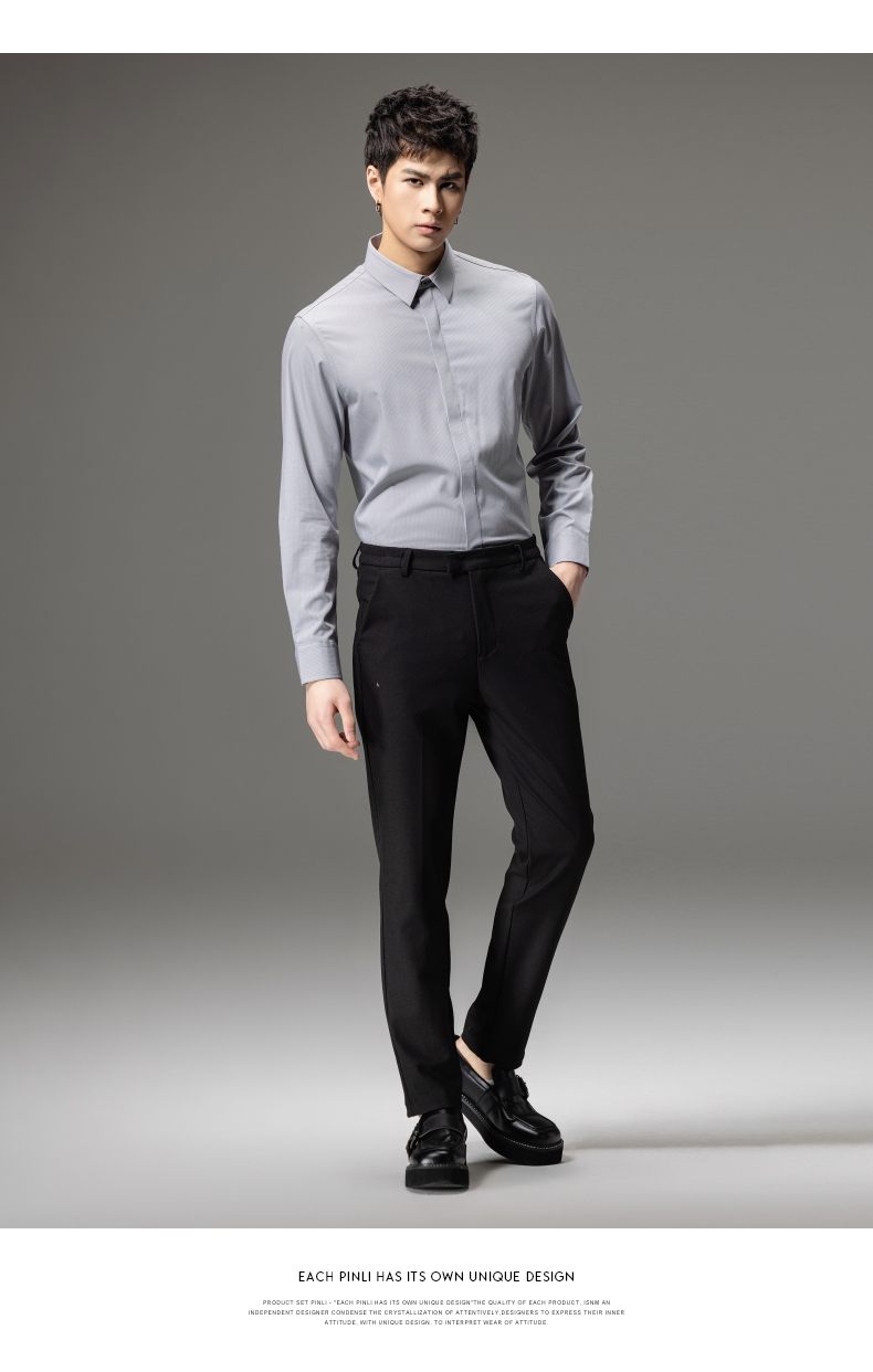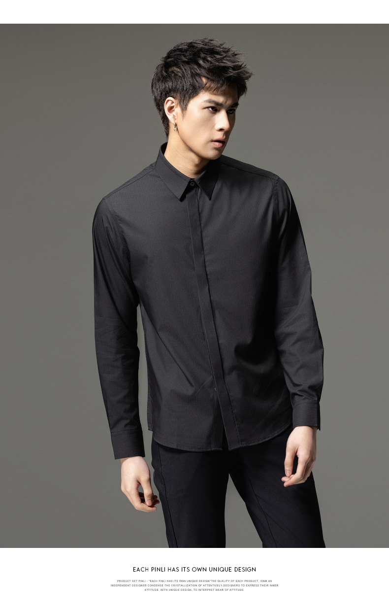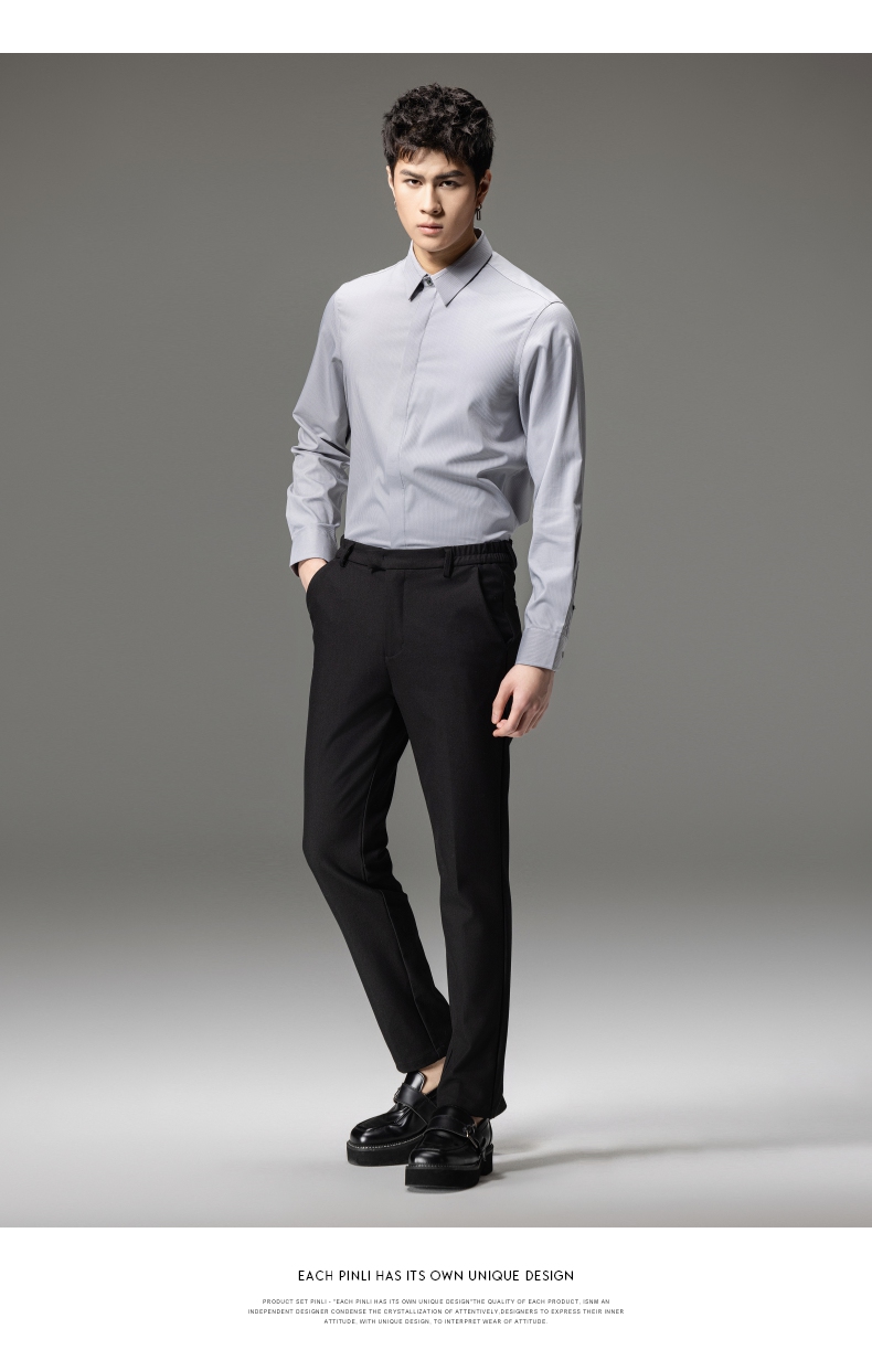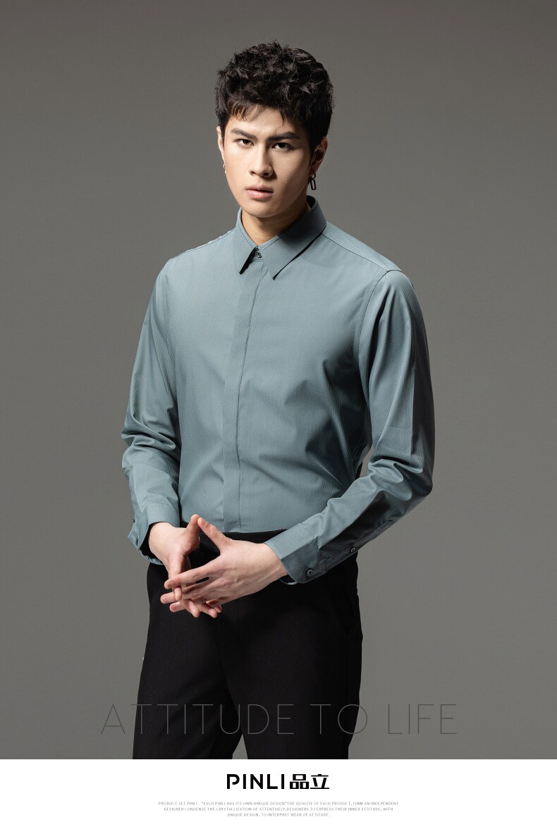 PINLI品立秋季新款男士商务休闲长袖衬衫免烫纯色百搭衬衣潮GD241113066