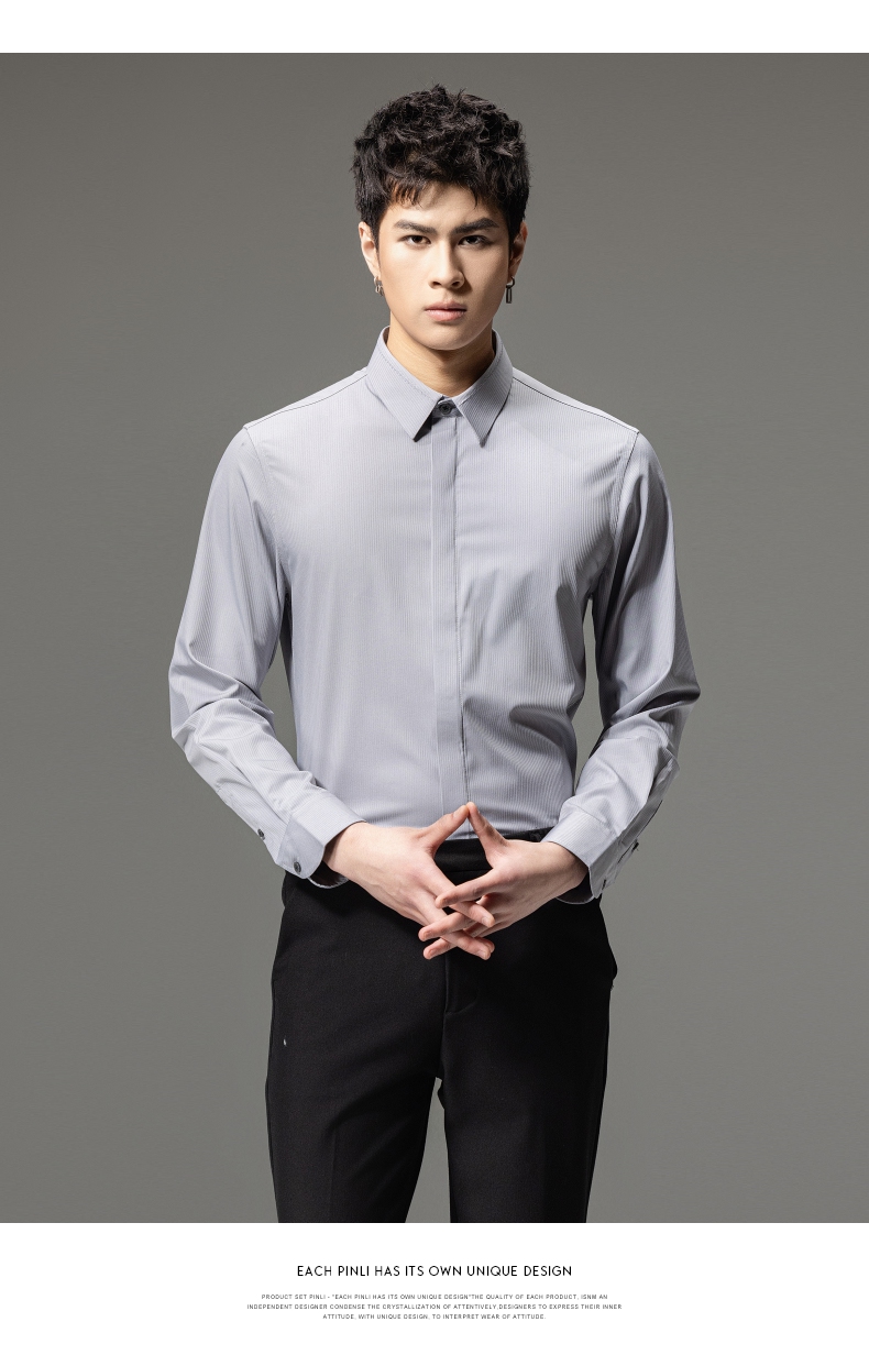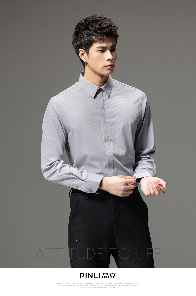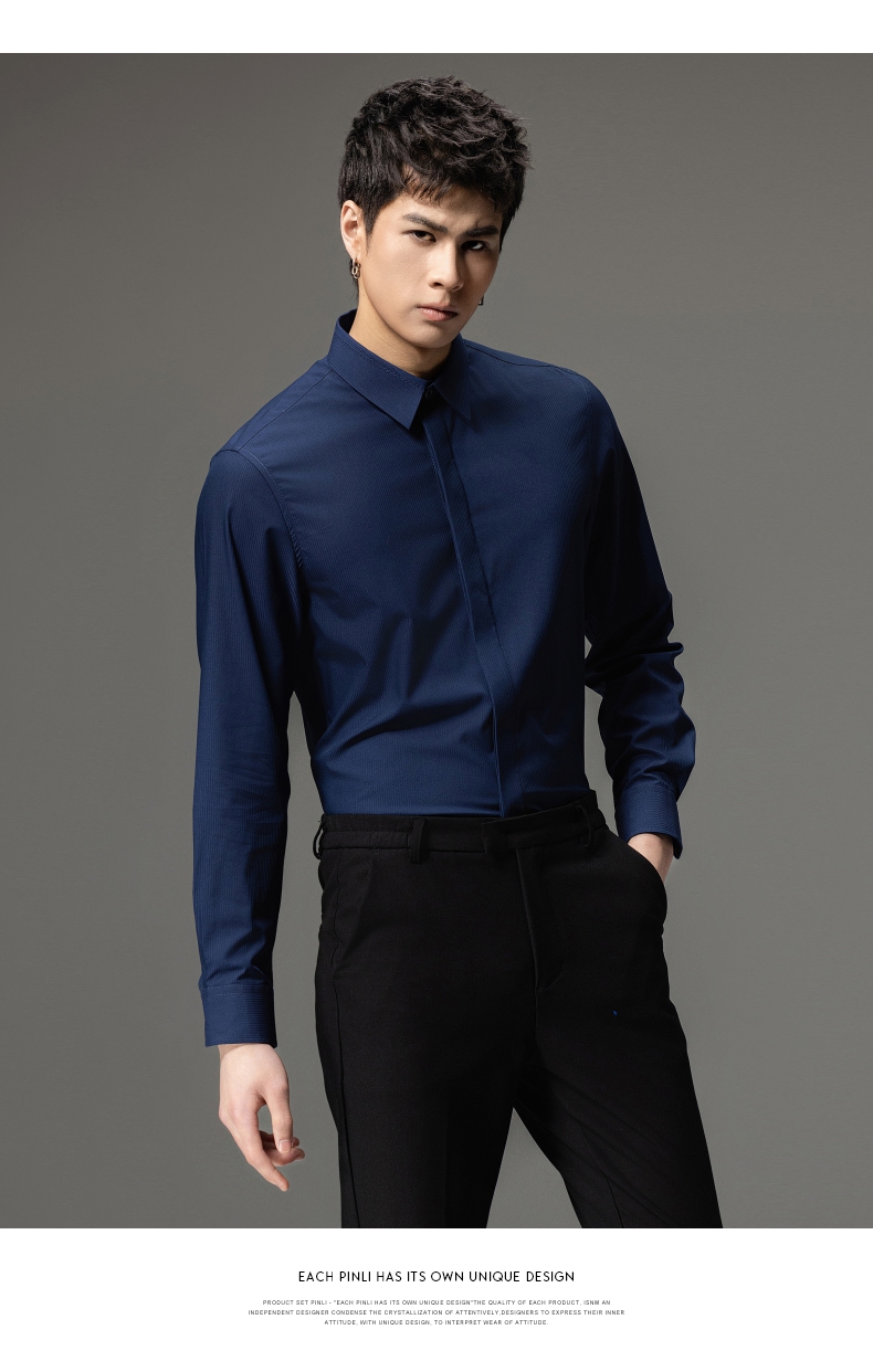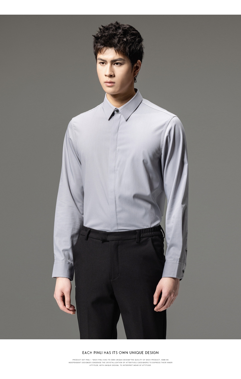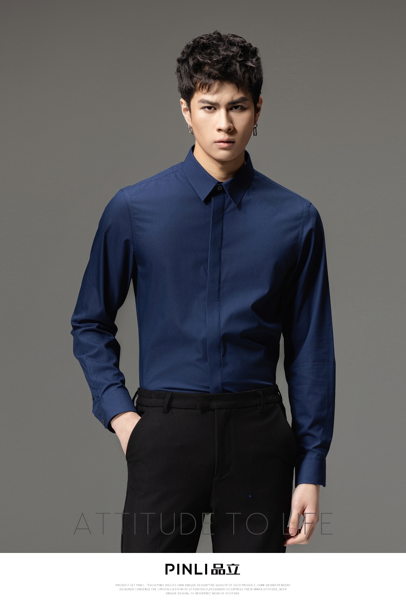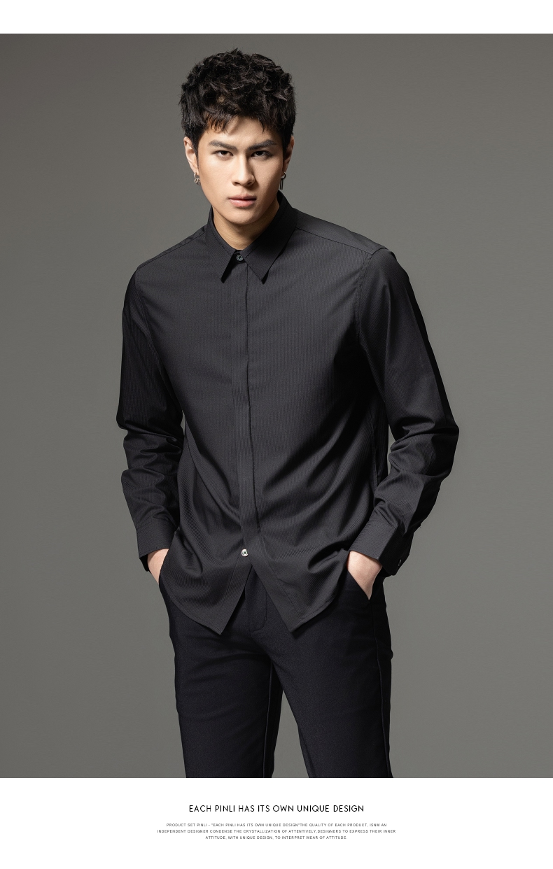 PINLI品立秋季新款男士商务休闲长袖衬衫免烫纯色百搭衬衣潮GD241113066