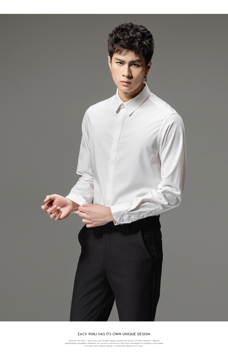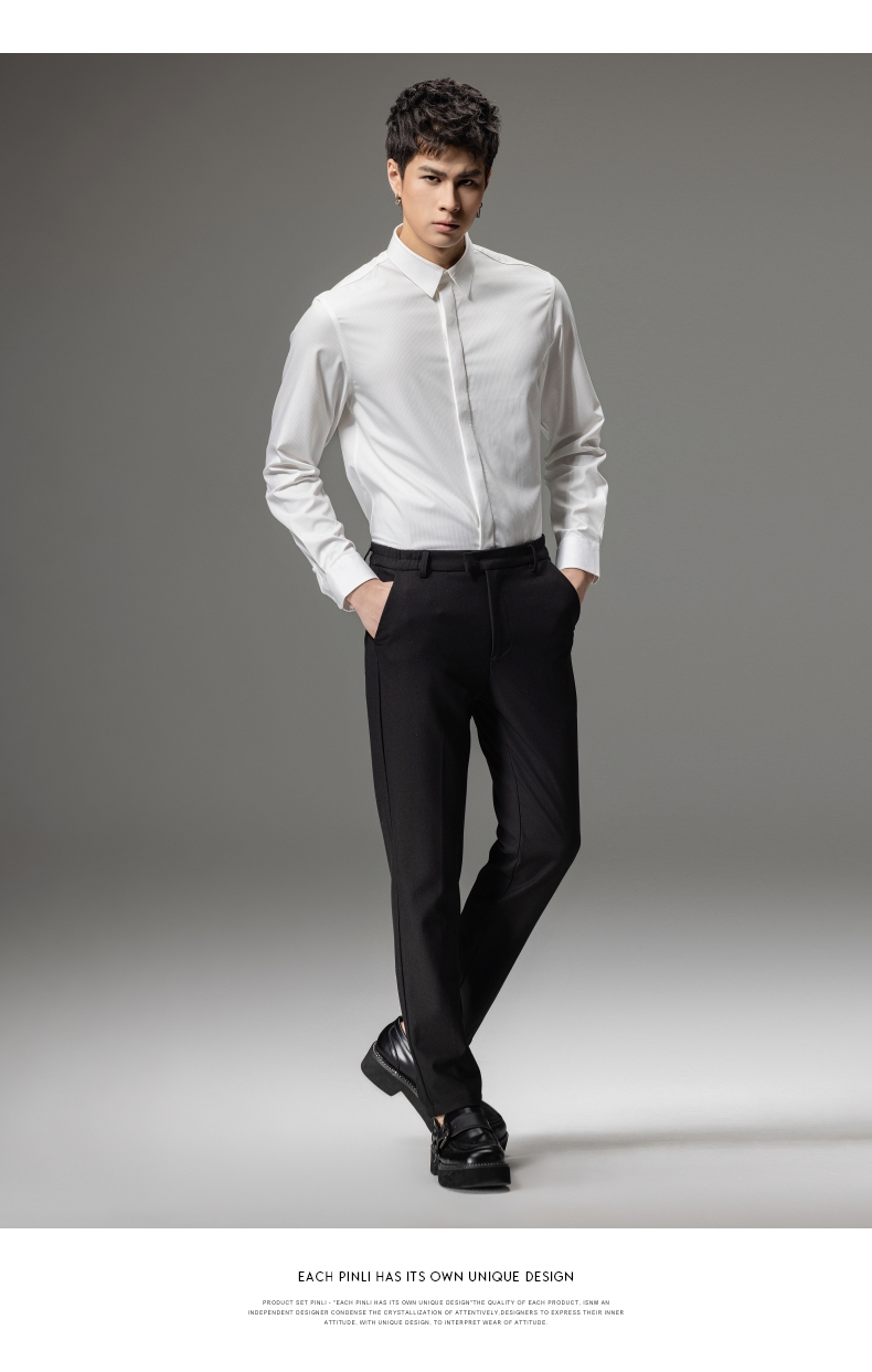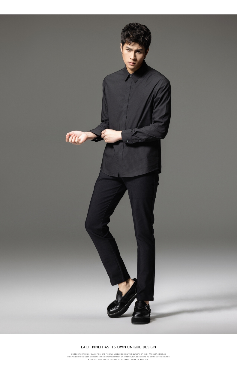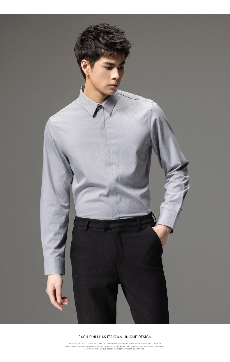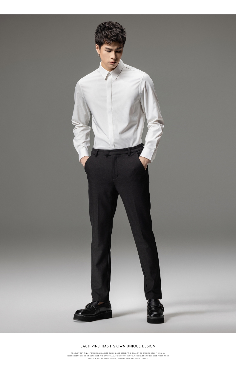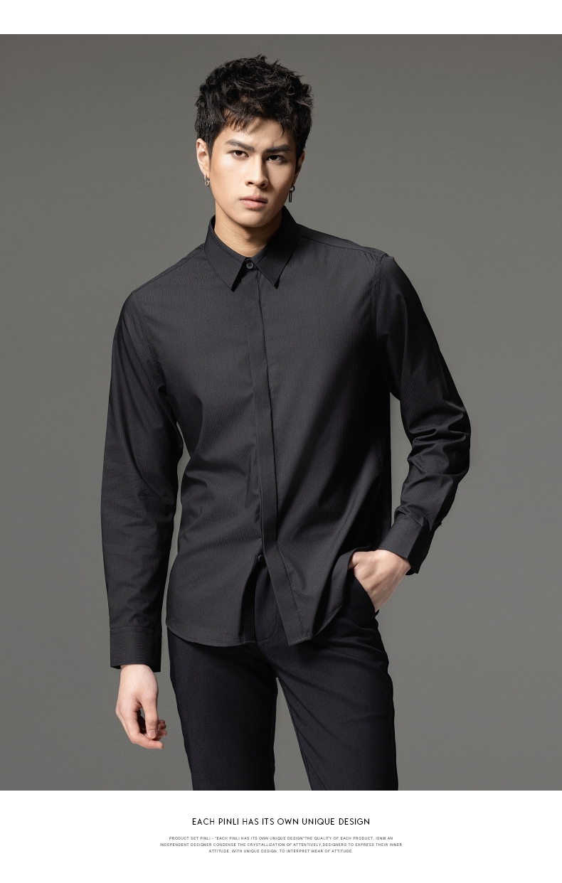 PINLI品立秋季新款男士商务休闲长袖衬衫免烫纯色百搭衬衣潮GD241113066