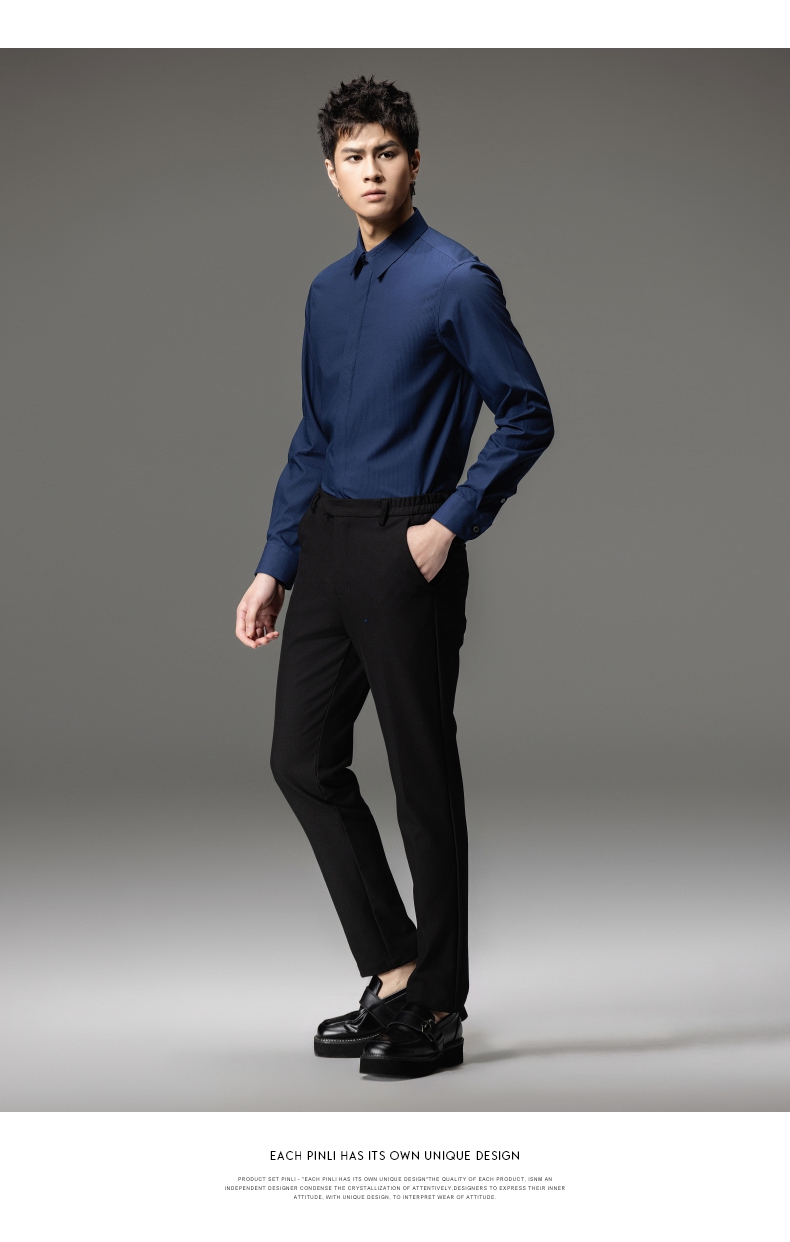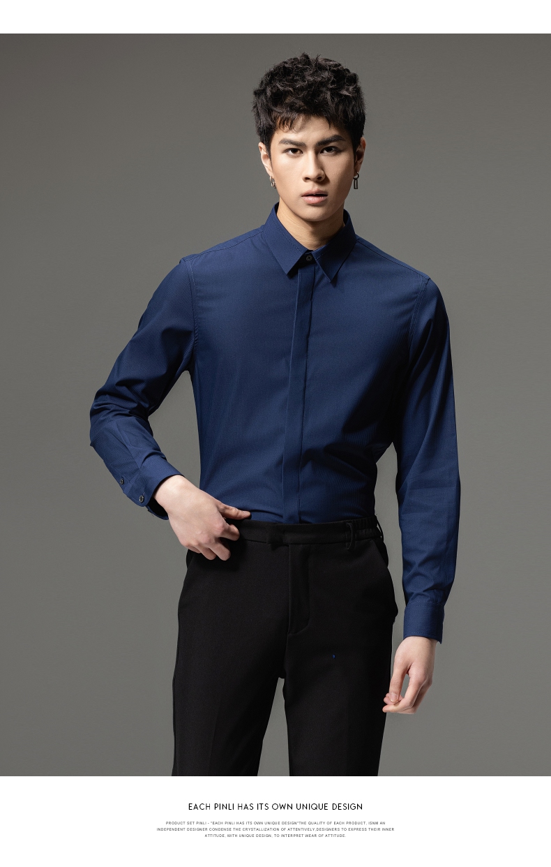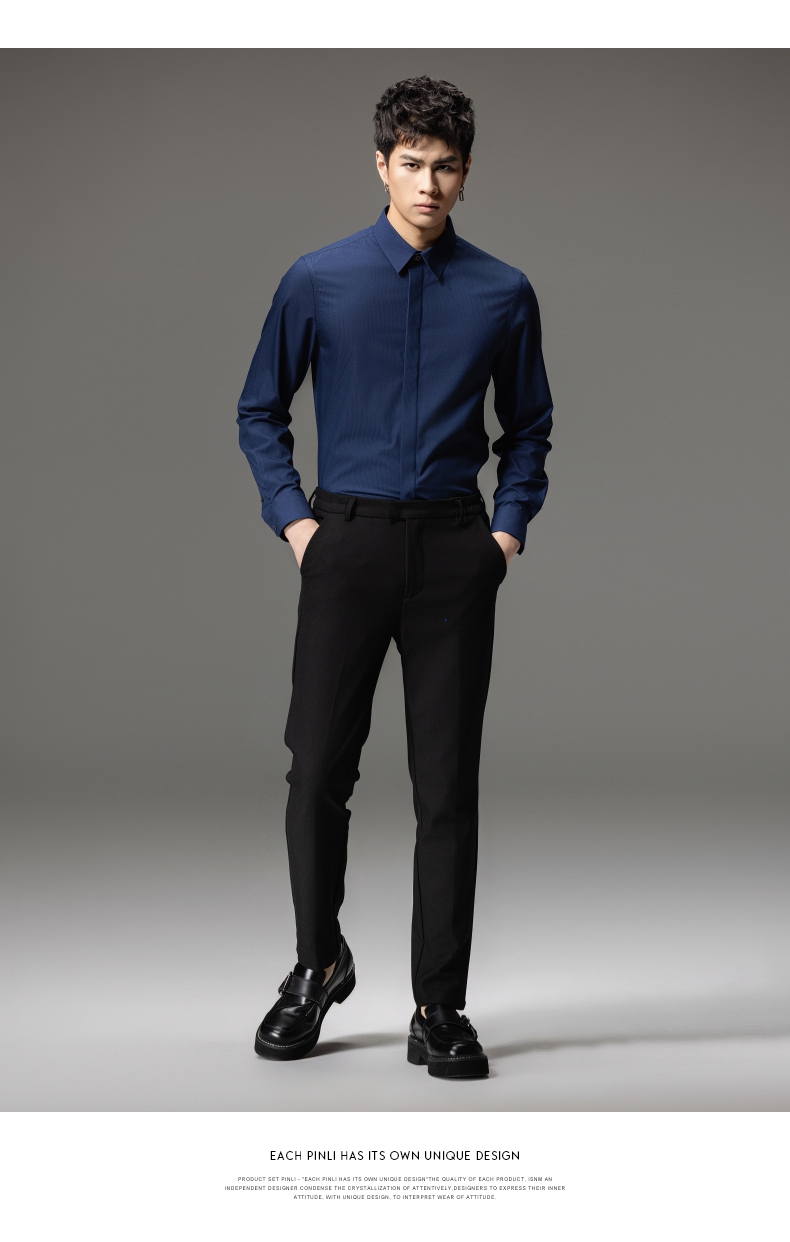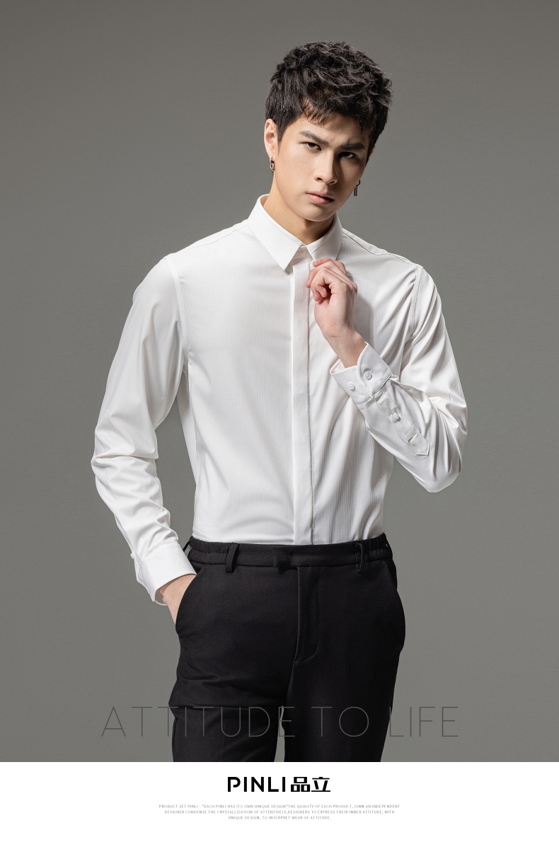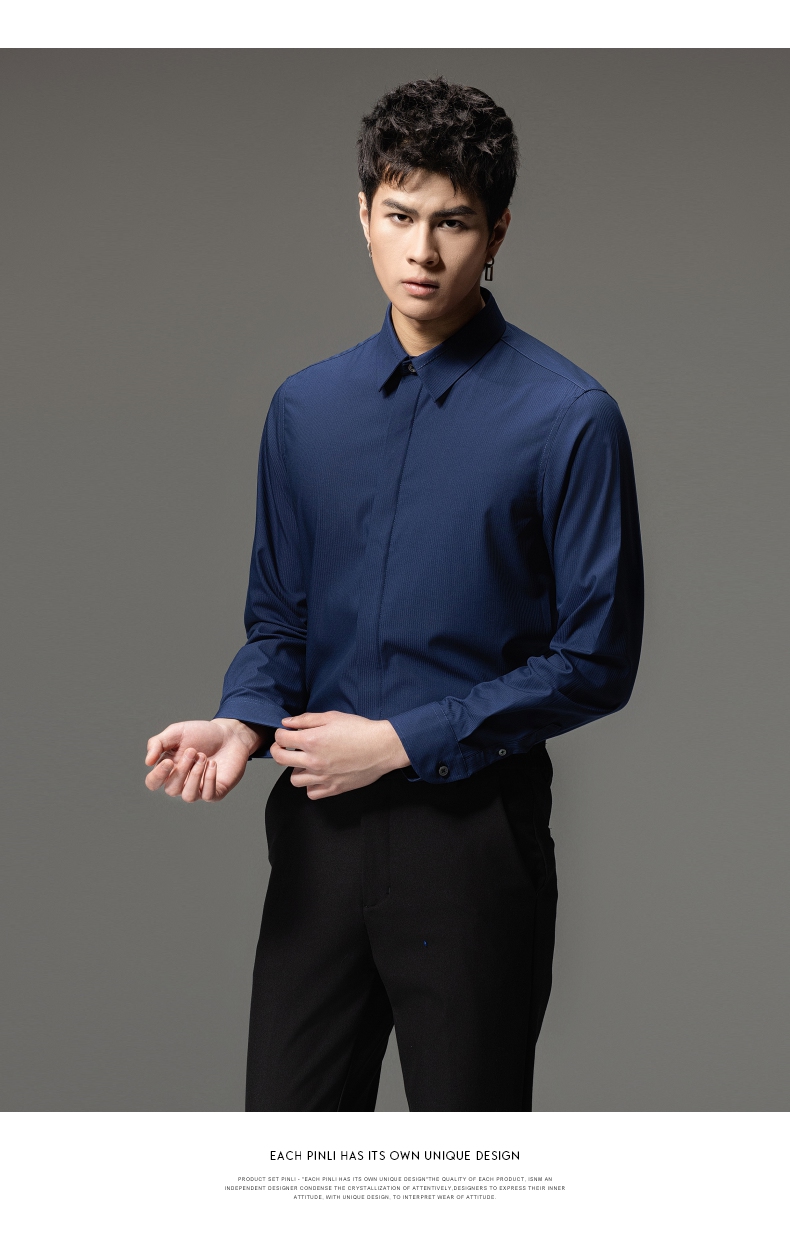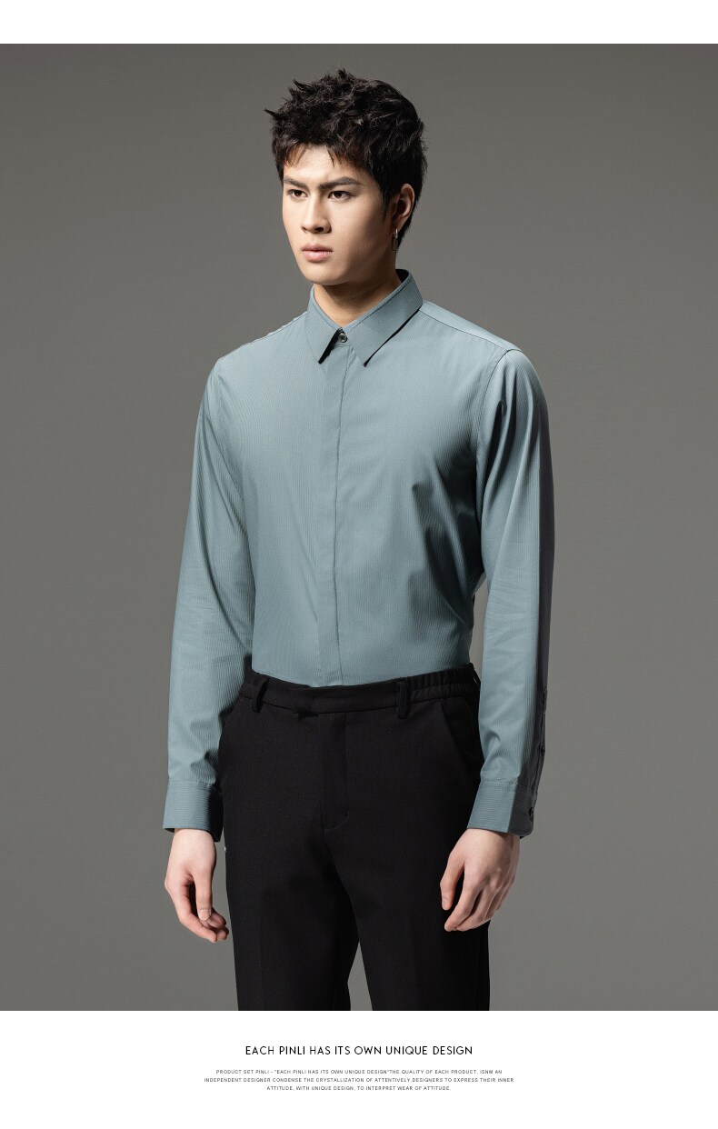PINLI品立秋季新款男士商务休闲长袖衬衫免烫纯色百搭衬衣潮GD241113066