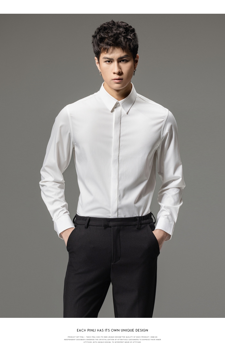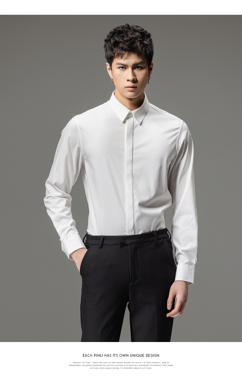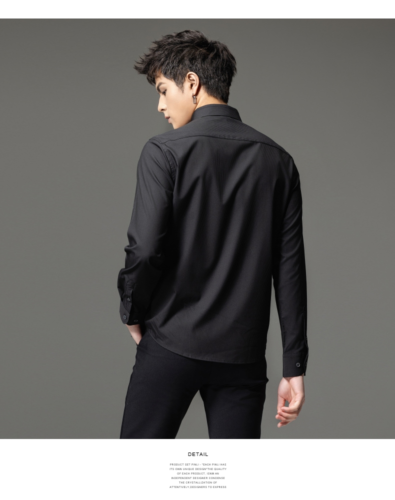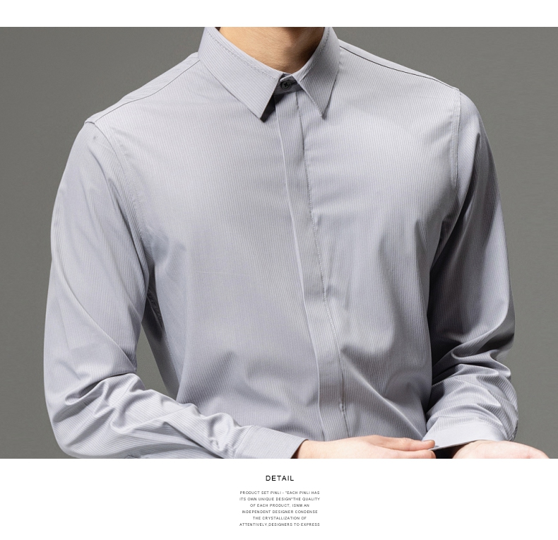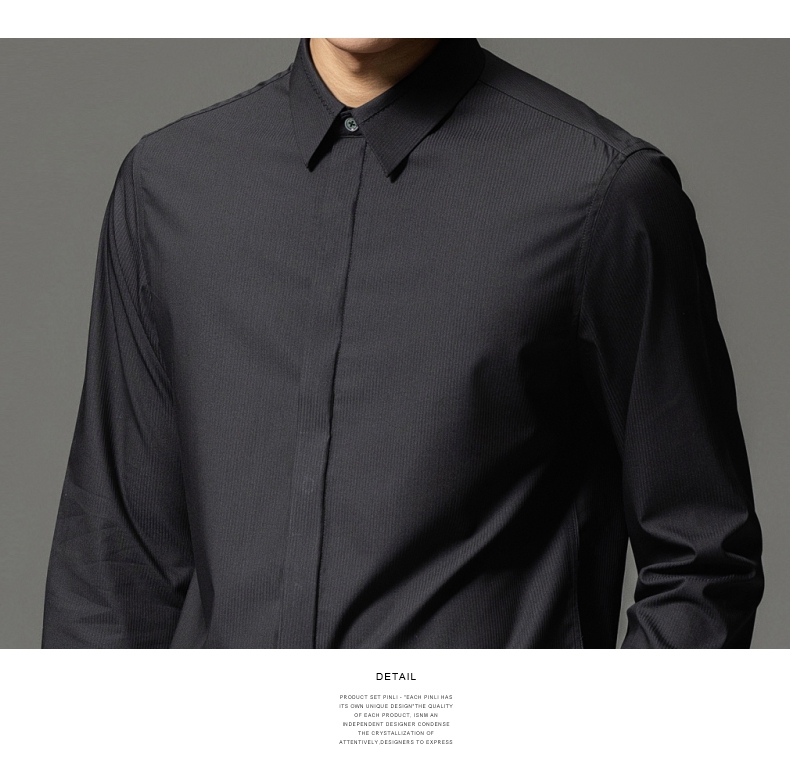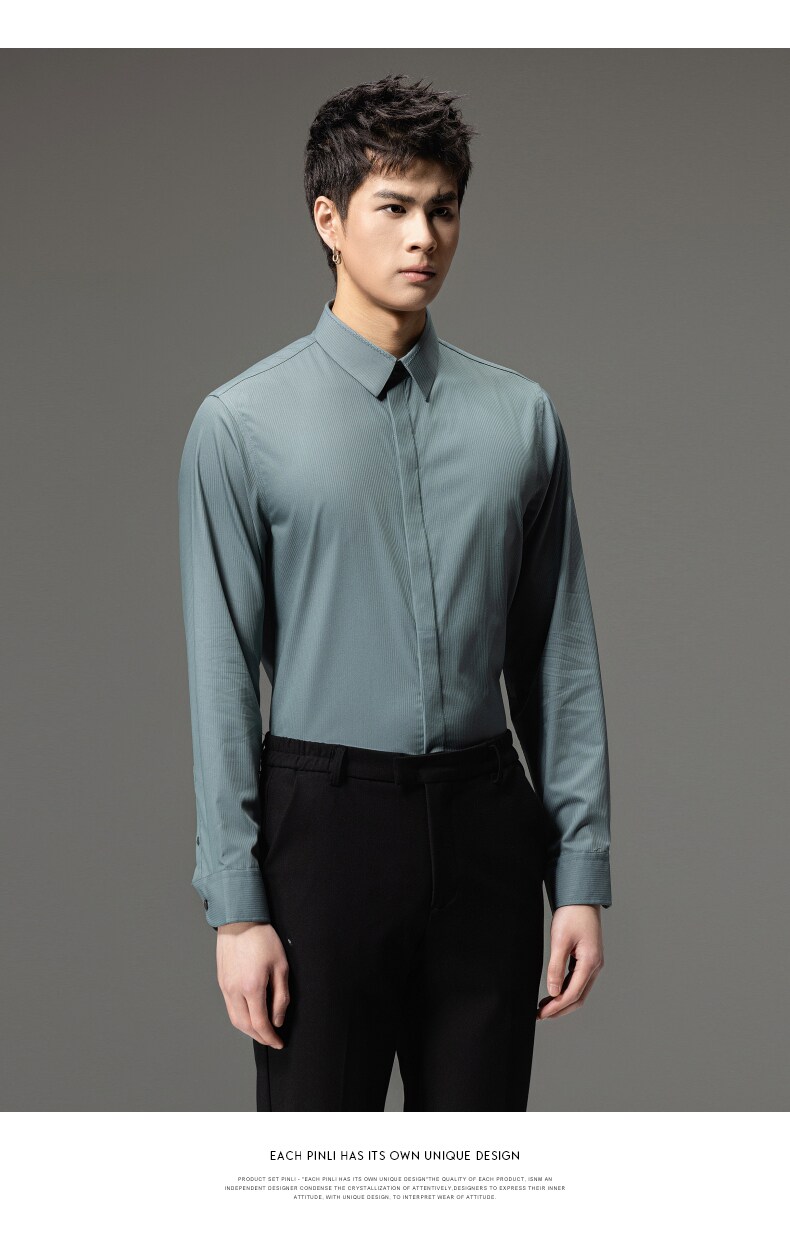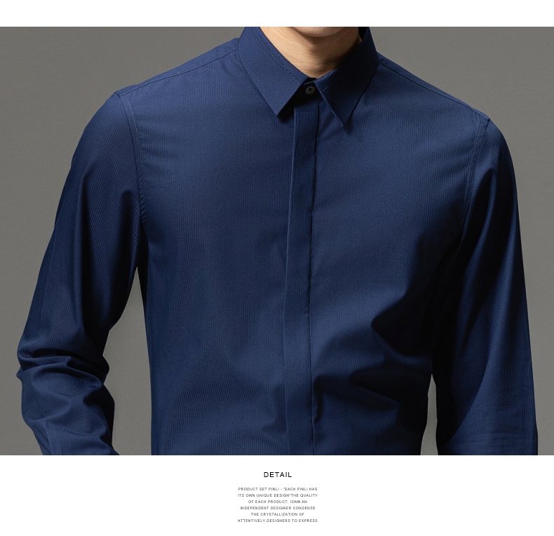 PINLI品立秋季新款男士商务休闲长袖衬衫免烫纯色百搭衬衣潮GD241113066