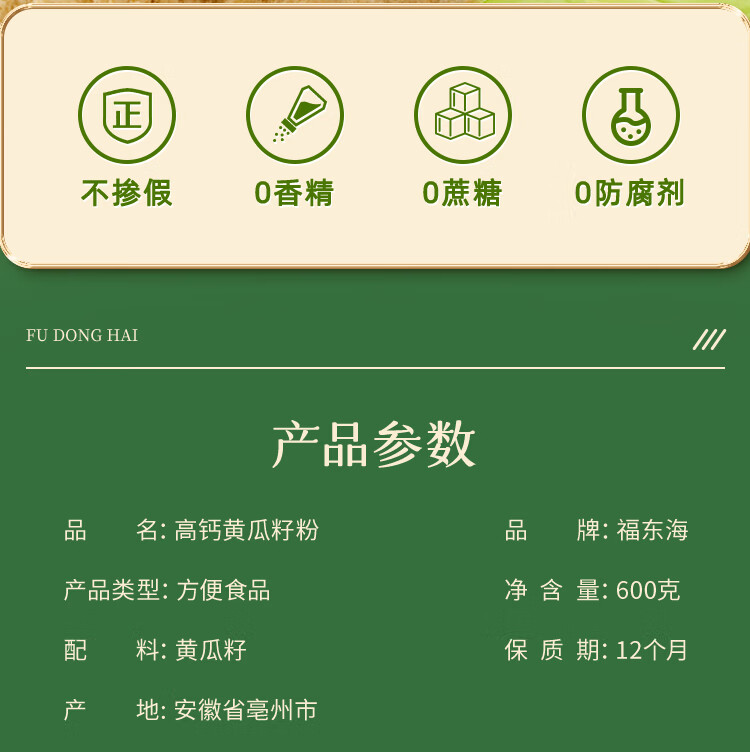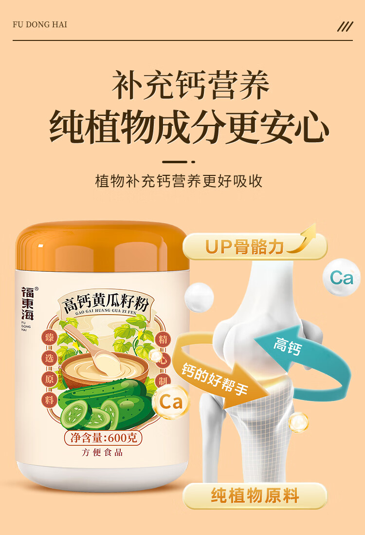 福东海 高钙黄瓜籽粉600克 无蔗糖冲泡即食老人补充营养早餐代餐粉