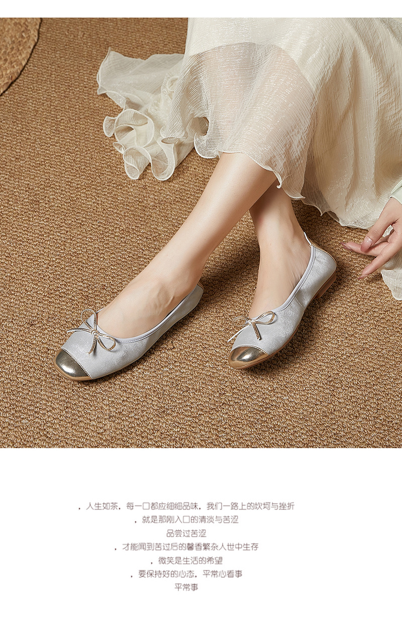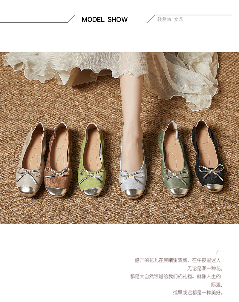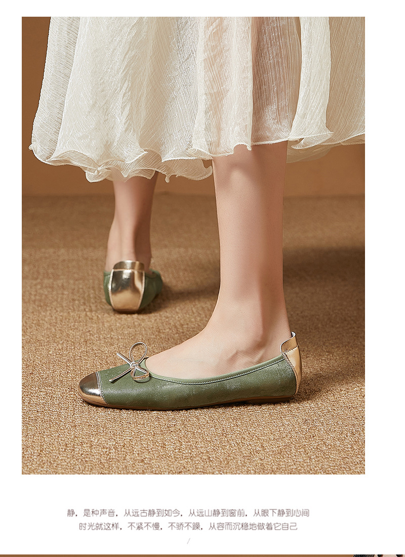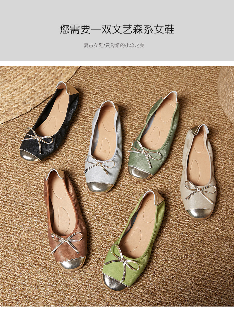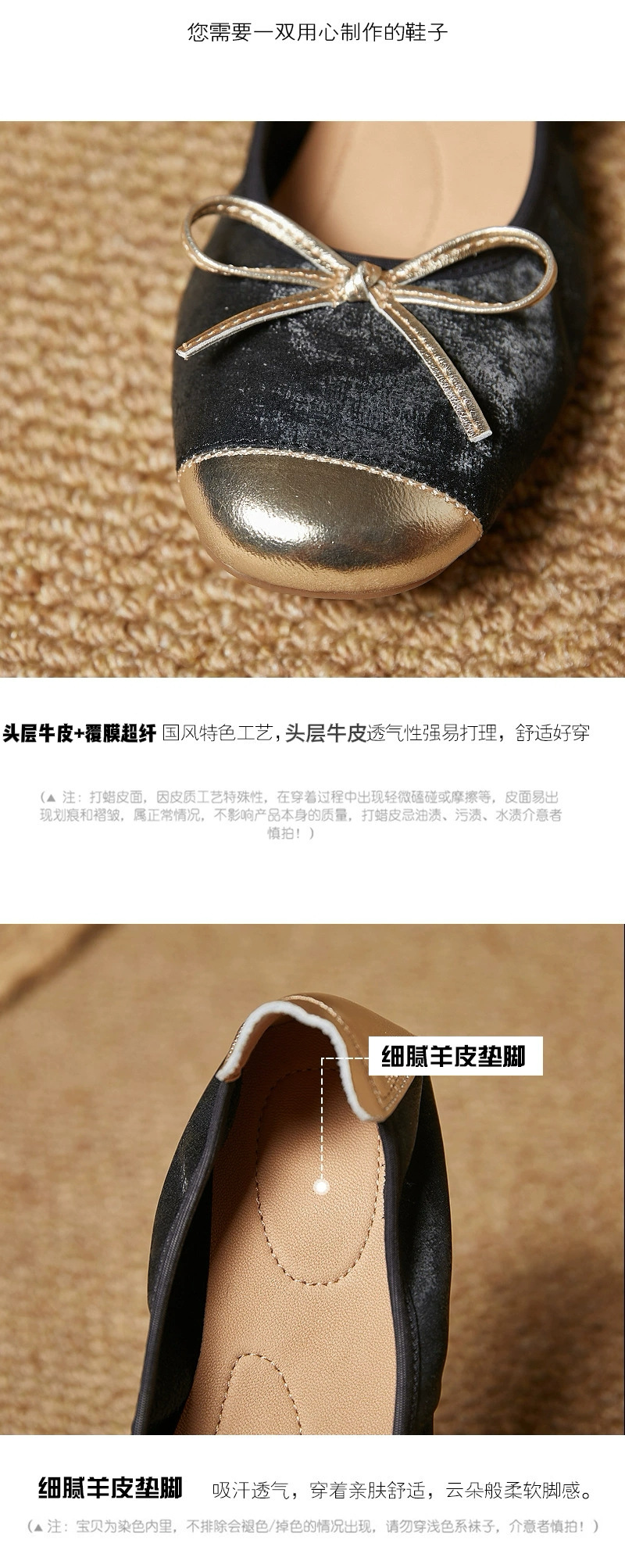 新中式芭蕾鞋2025上新蝴蝶结圆头平底单鞋女休闲中国风奶奶鞋!