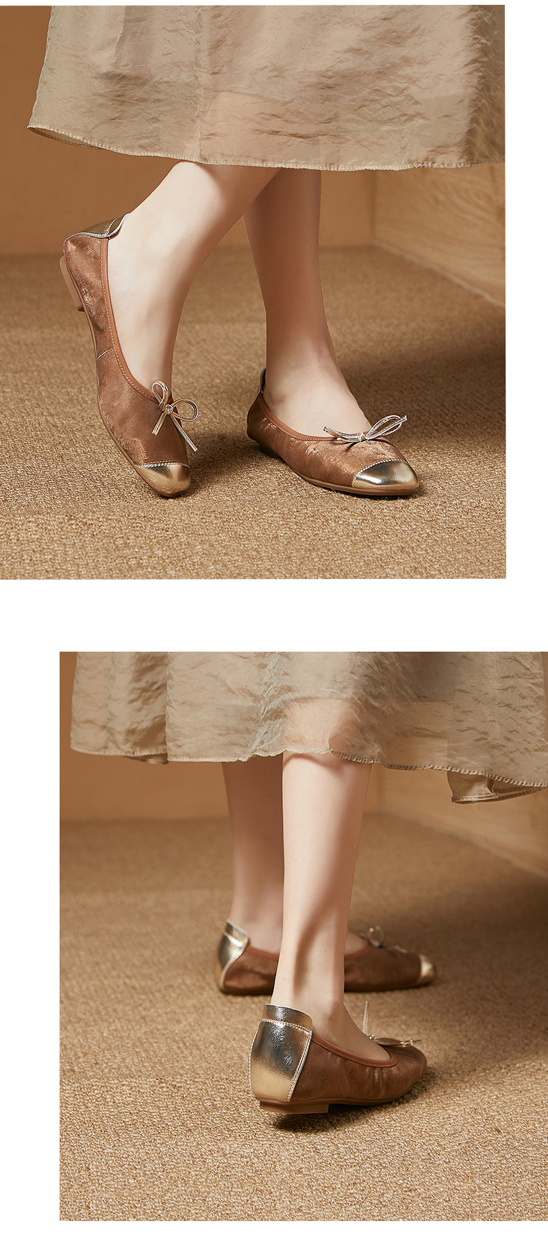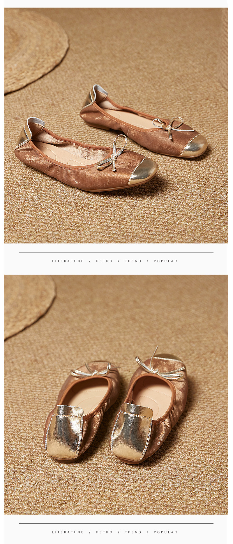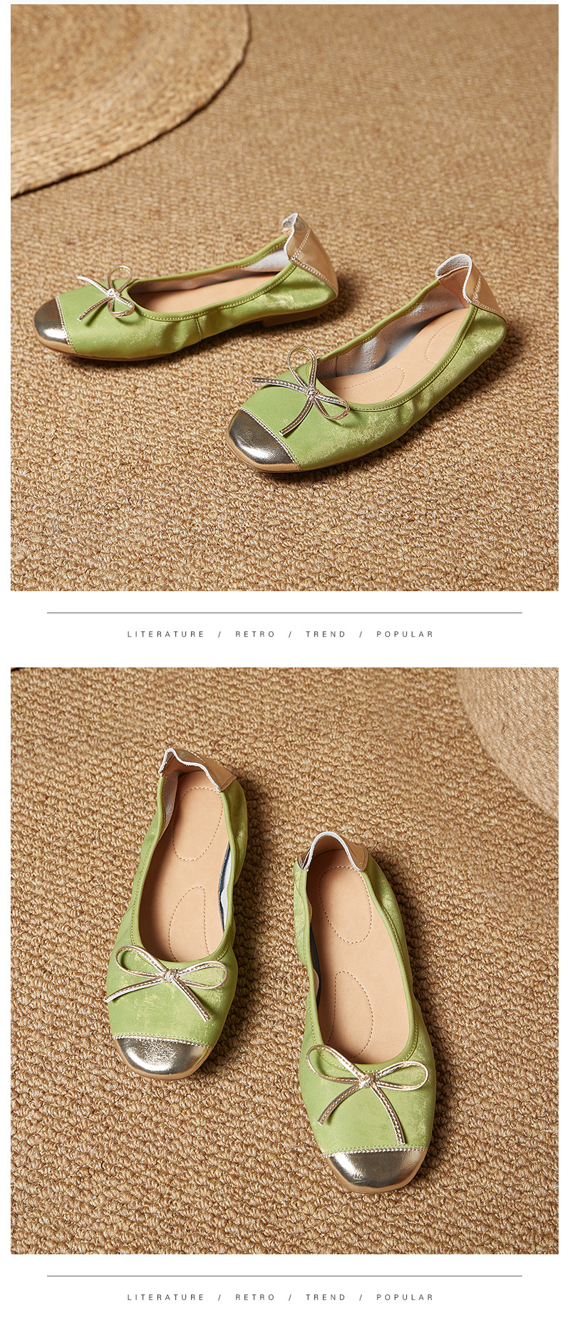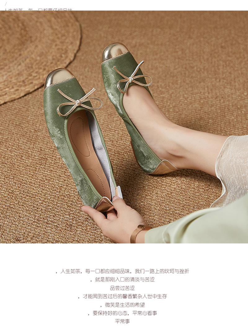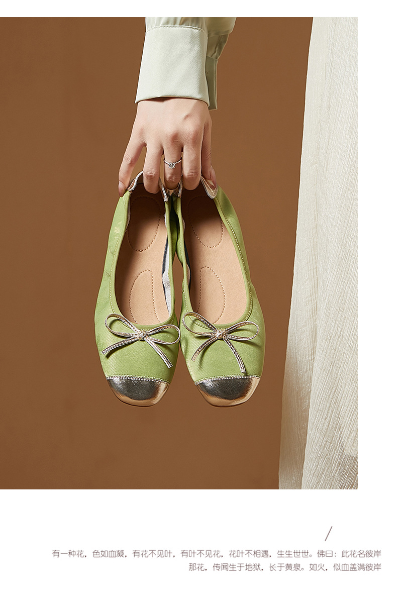 新中式芭蕾鞋2025上新蝴蝶结圆头平底单鞋女休闲中国风奶奶鞋!