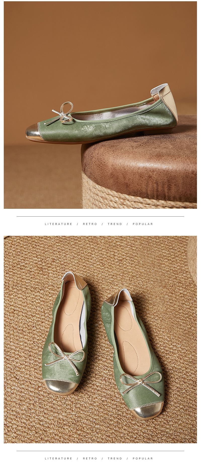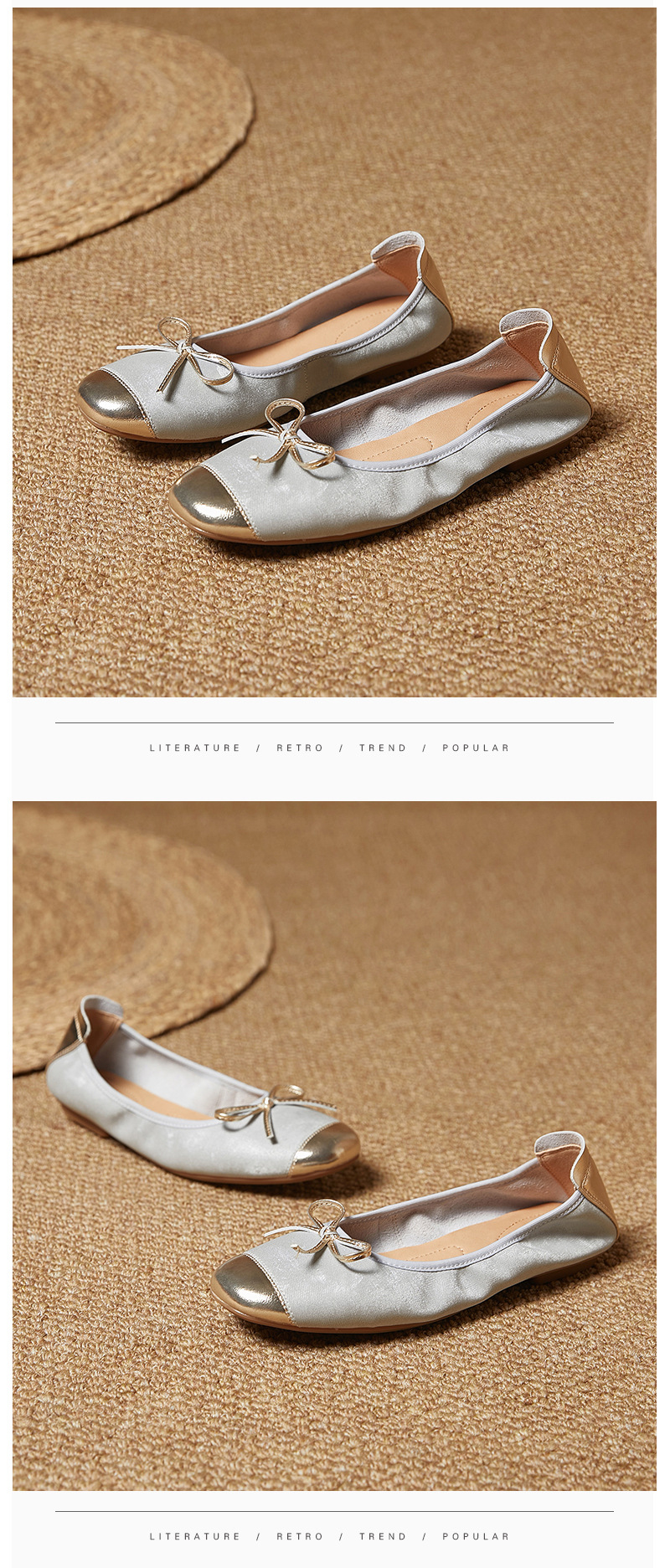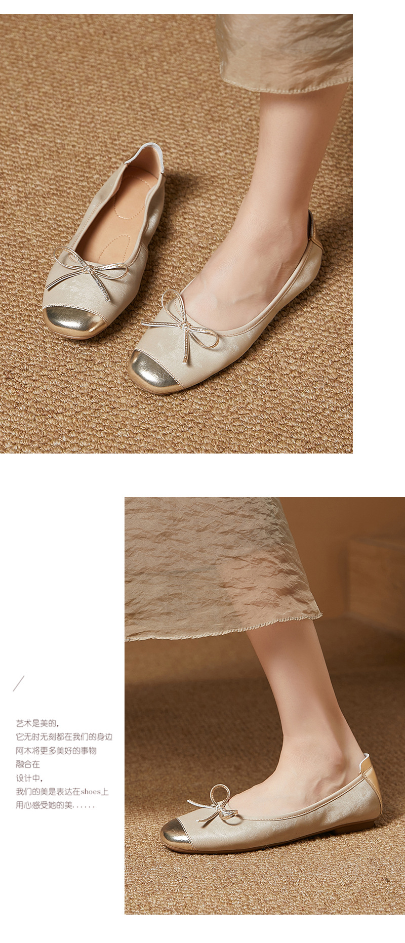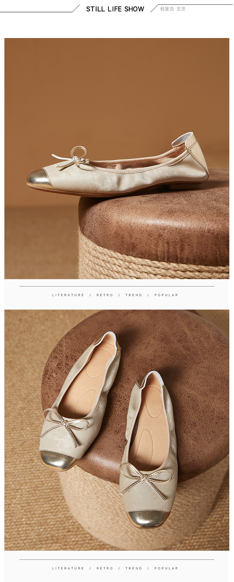 新中式芭蕾鞋2025上新蝴蝶结圆头平底单鞋女休闲中国风奶奶鞋!