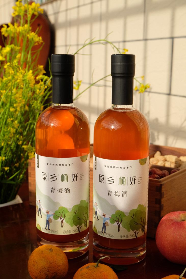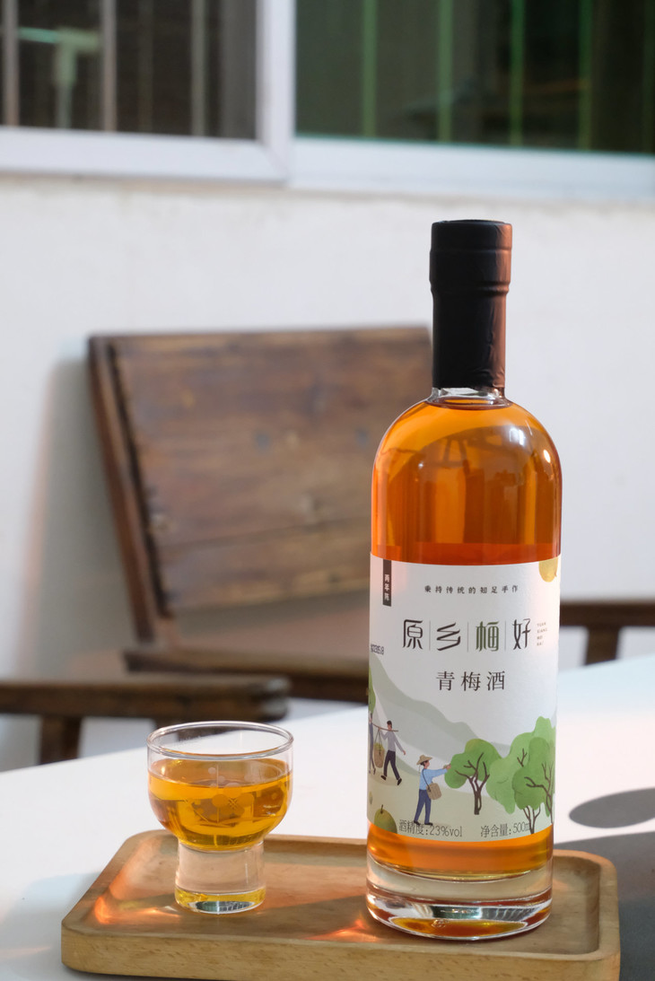懂酒的合作社社员最是清楚,好的基酒对于青梅酒的口感至关重要,社员们精选了附近村的老师傅采用本地常规种植水稻及山泉水酿制的40°的纯粮食米酒,这种米香型白酒绵甜醇厚,清雅纯净,和青梅搭配最是相得益彰。