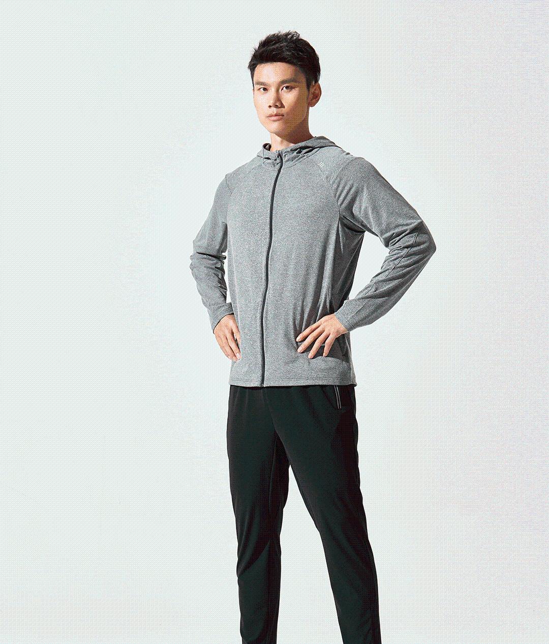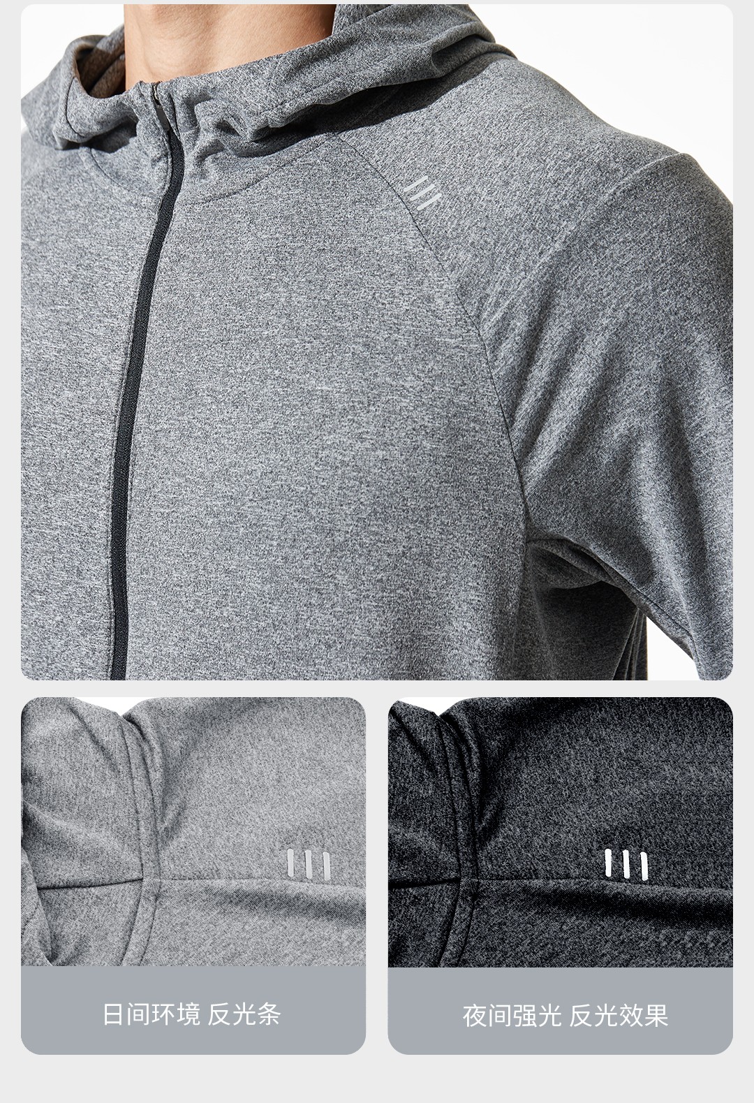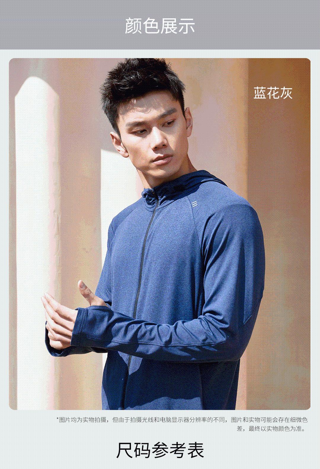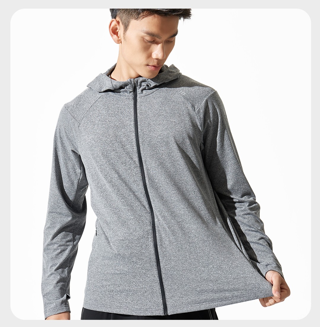 春季新款运动长袖拉链开衫恤速干透气吸湿排汗连帽T恤 浅花灰 165/84A