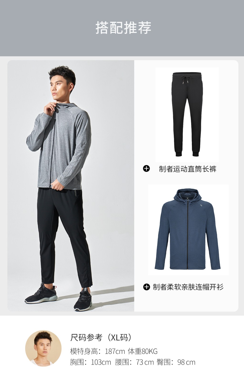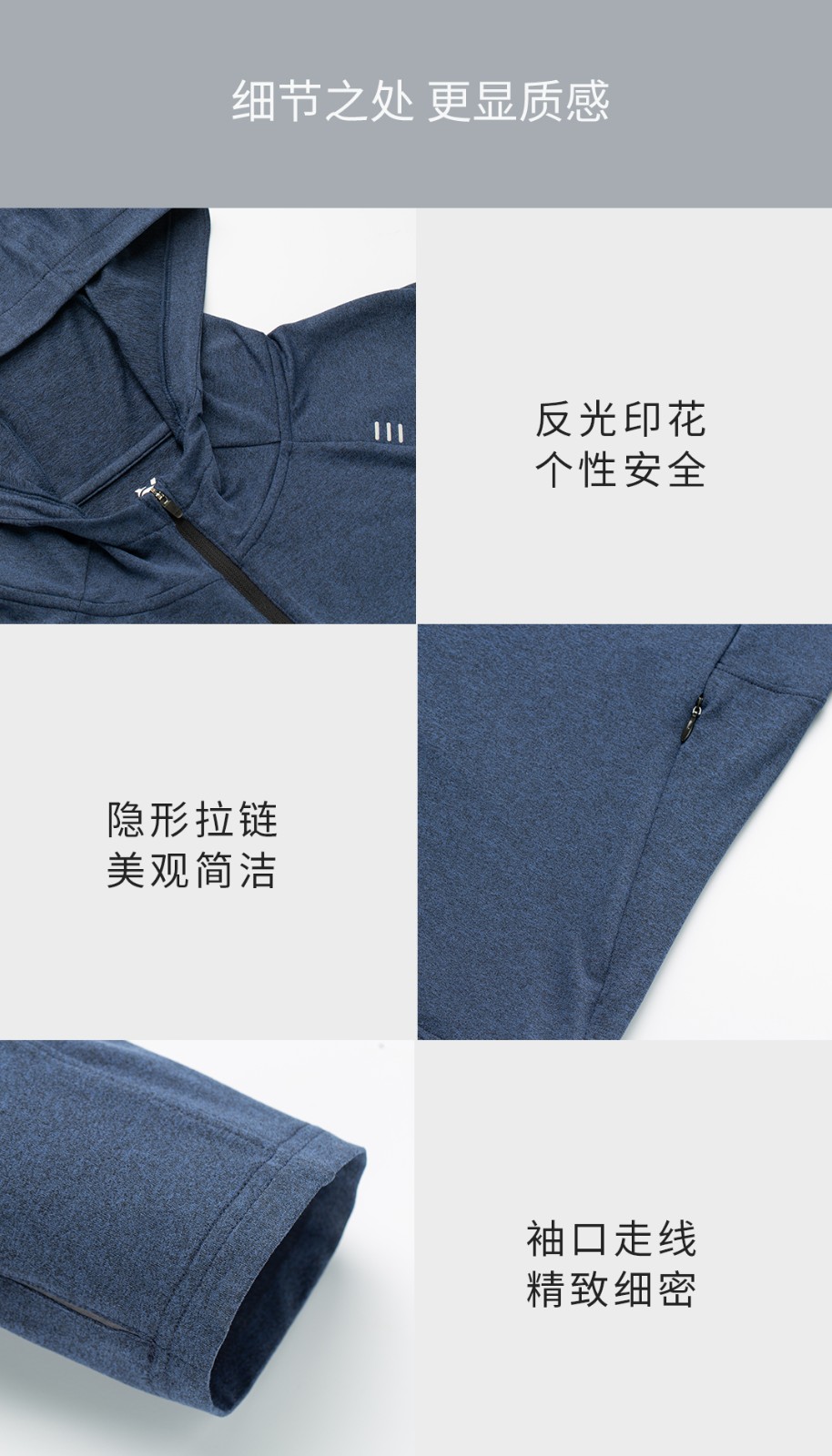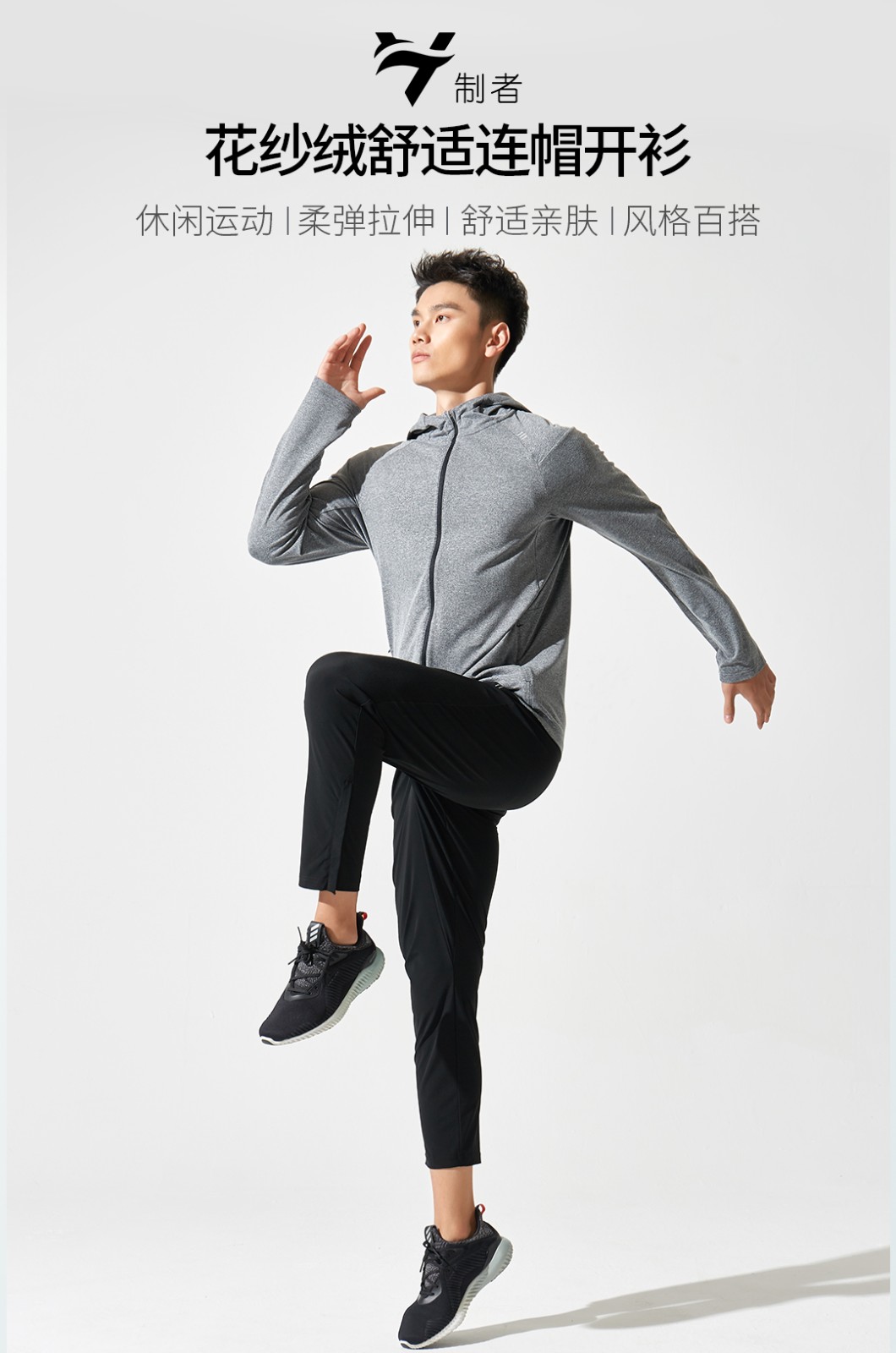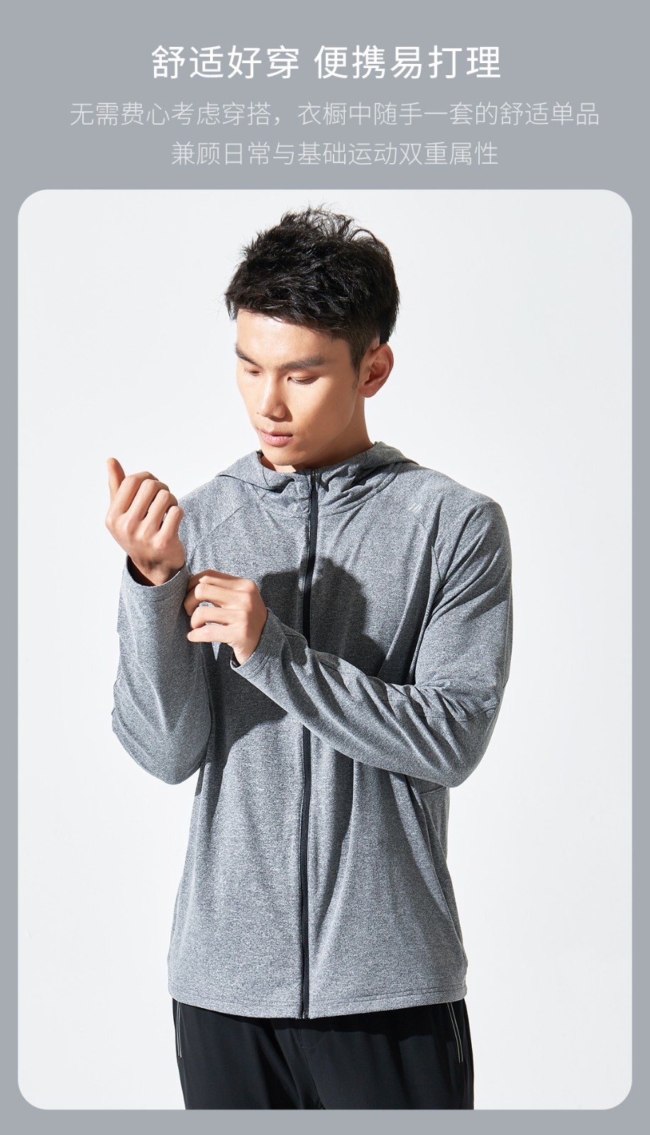 春季新款运动长袖拉链开衫恤速干透气吸湿排汗连帽T恤 浅花灰 165/84A