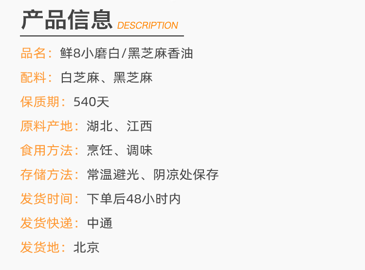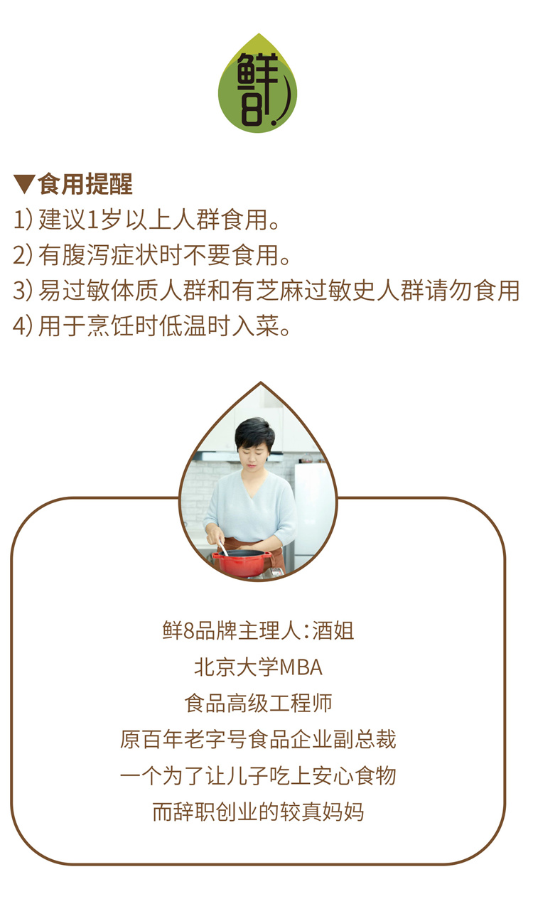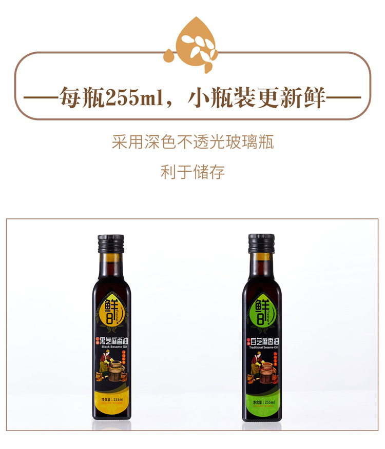 鲜8 小磨白芝麻香油 &黑芝麻香油 255ml/瓶