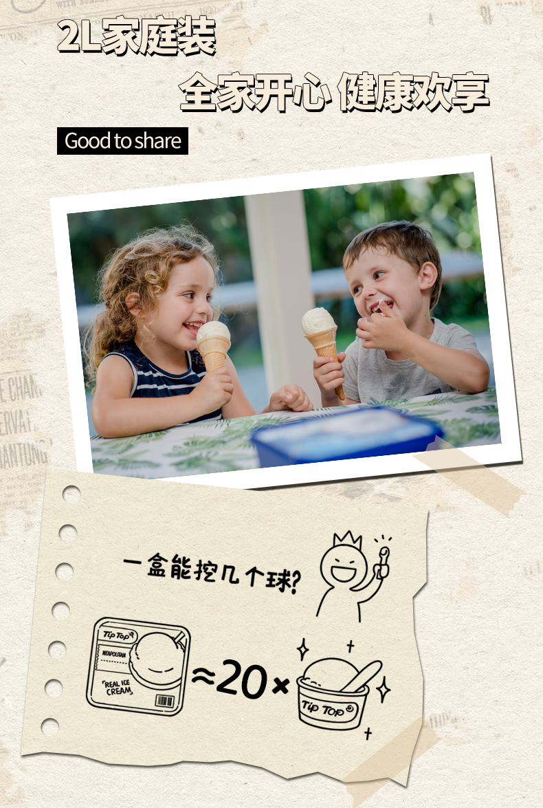 TIP TOP 100%新西兰宝藏级巴氏鲜奶冰淇淋 全乳脂(下单72小时内发货)