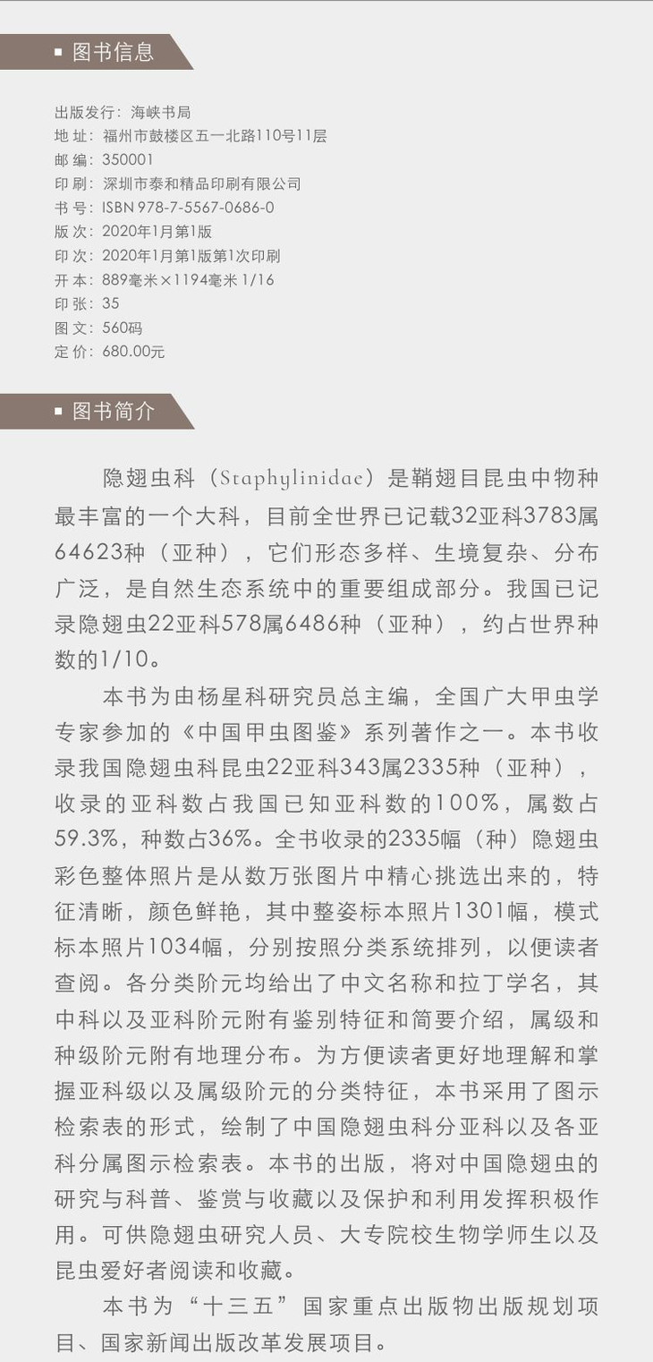 《中国甲虫图鉴 隐翅虫科》 专业科普、工具书 李利珍主编 海峡书局【官方正版 48小时发货】