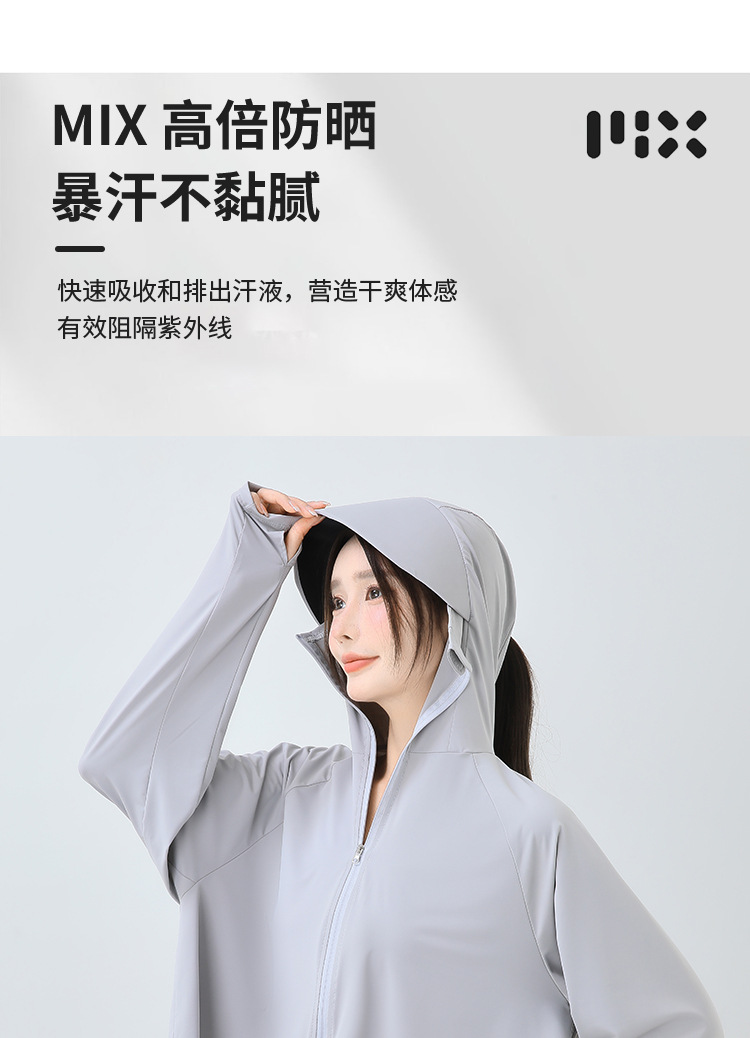 【MIX高倍防晒!长袖防晒衣女防紫外线】冰感面料透心凉,降温透气快干解闷,皮肤衣冰丝外套防晒服户外运动风衣夏日粉丝专属