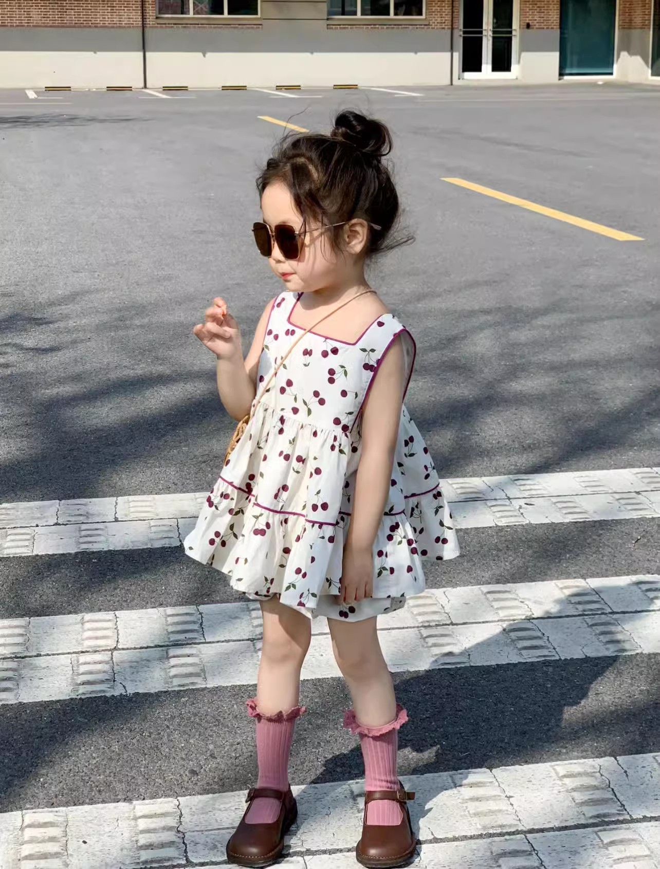 裁缝学苑TQ145方领童装无袖背心裙纸样花苞短裤套装儿童打板服装