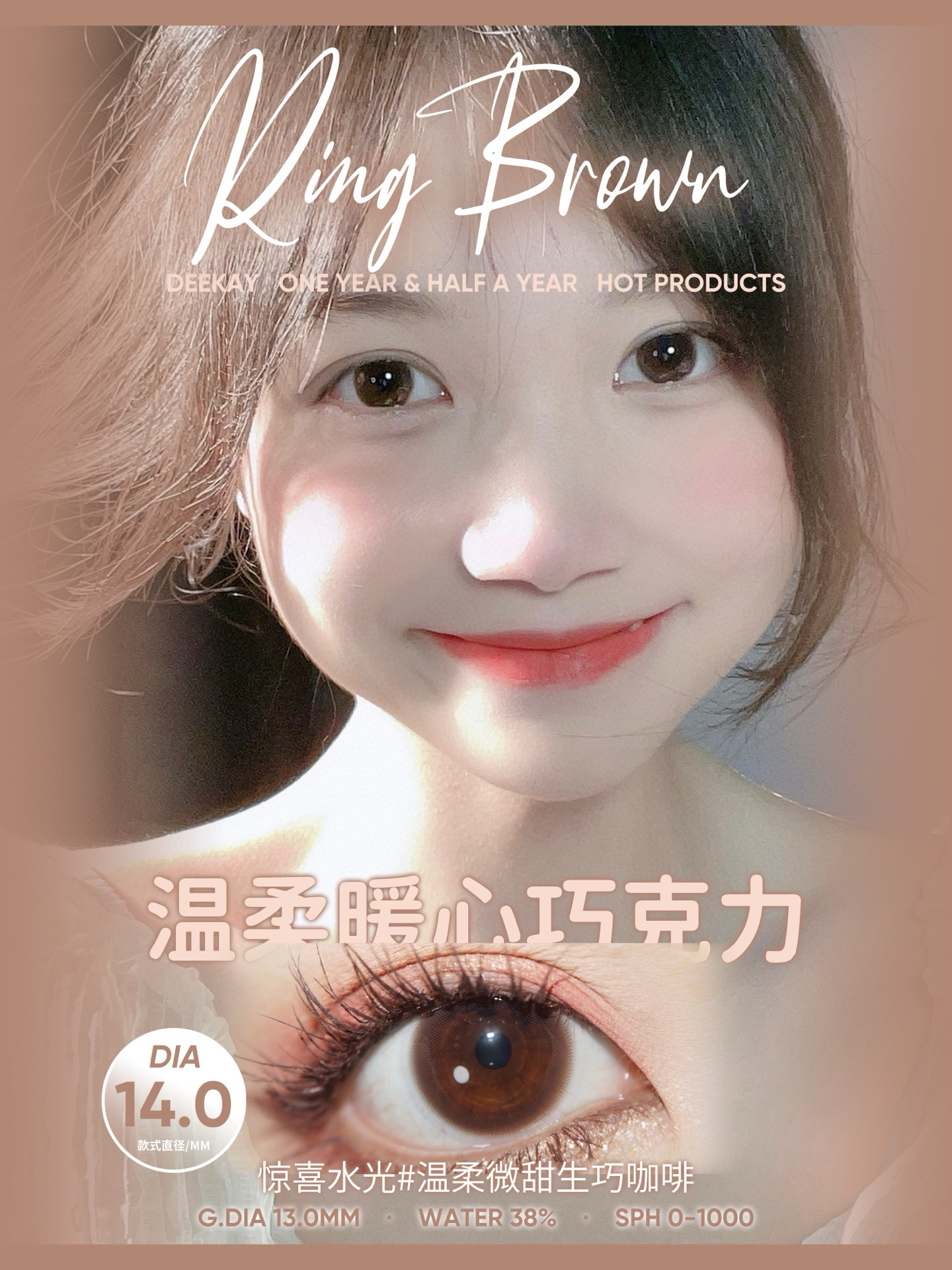 标注直径:14.0mm着色直径:13.0mm含水量:38%佩戴期限:半年型(建议6个月)可配:0-1000度(有525/575)材质韩产含硅水凝胶