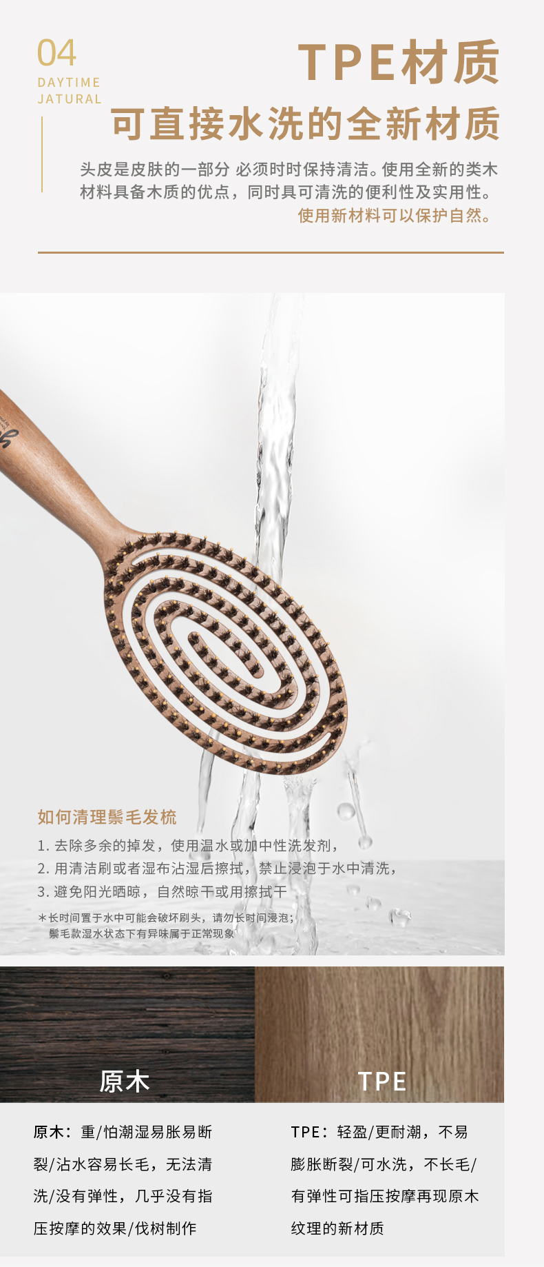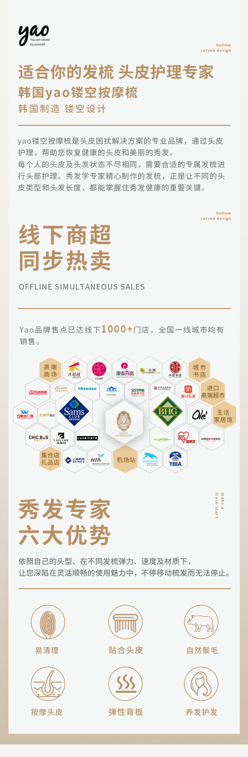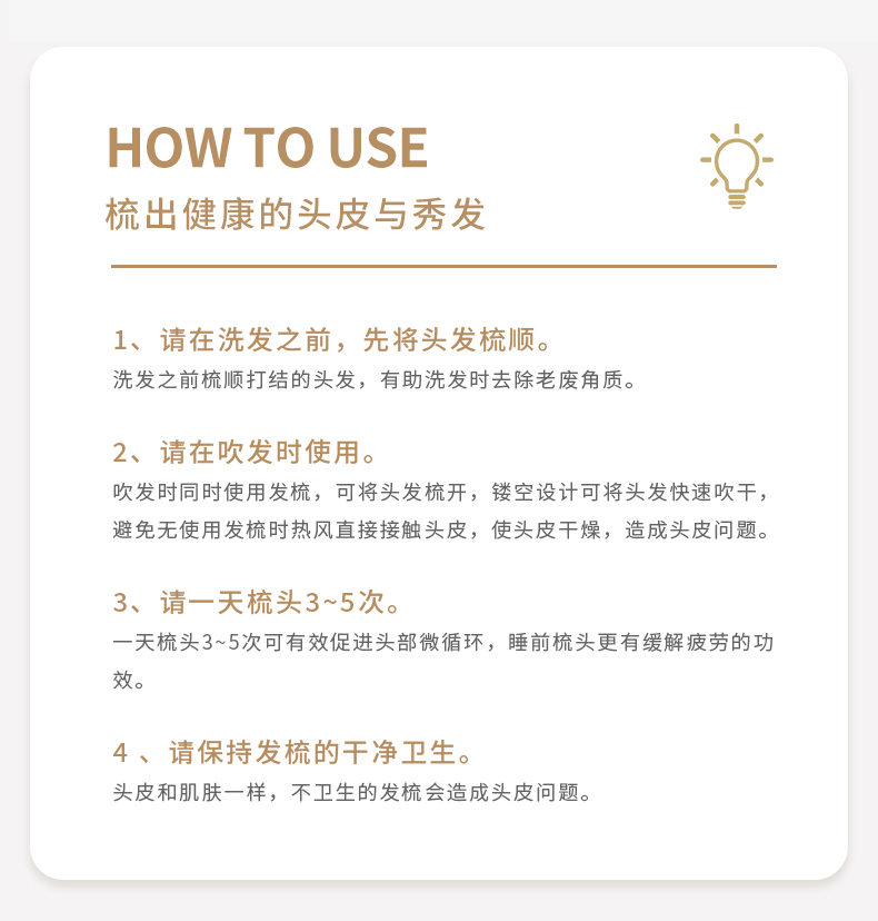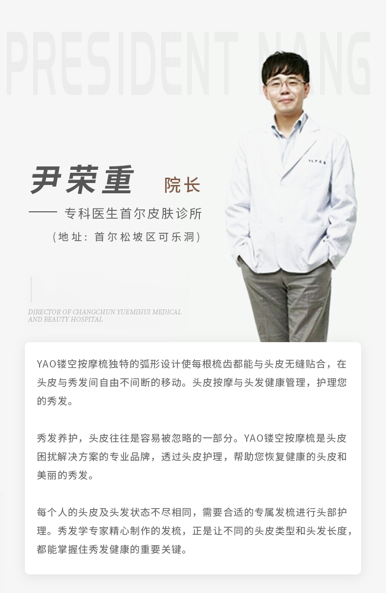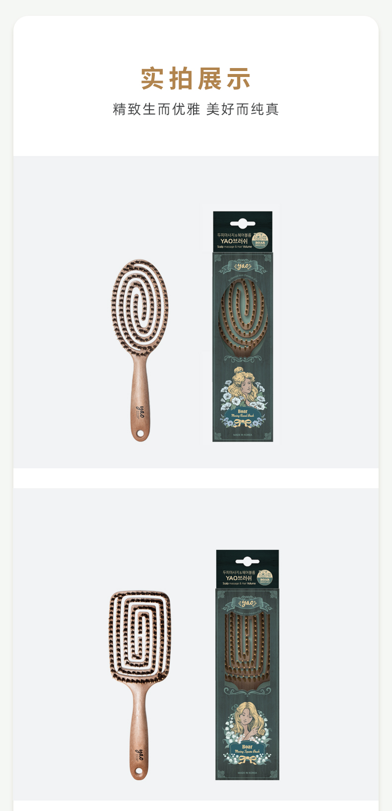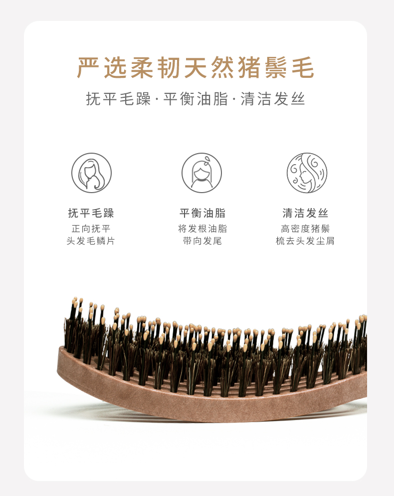 yao韩国原产猪鬃梳舒适弹力按摩梳护理受损发质易清理