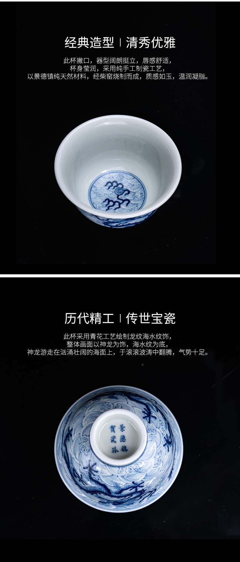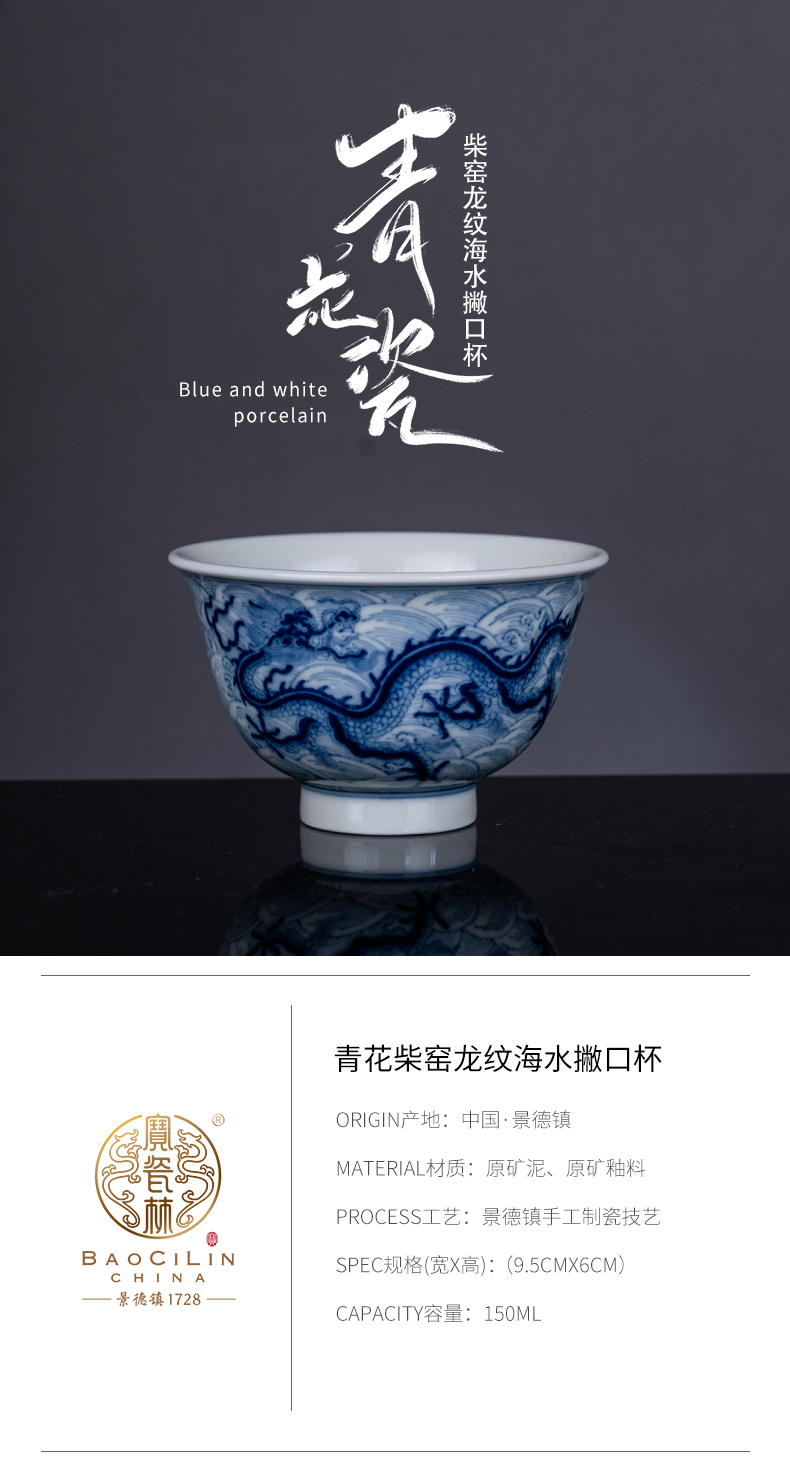 青花柴窑龙纹海水撇口杯