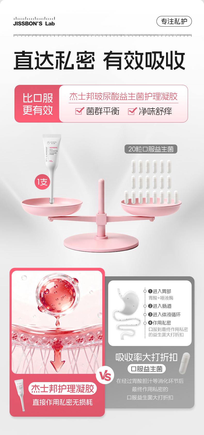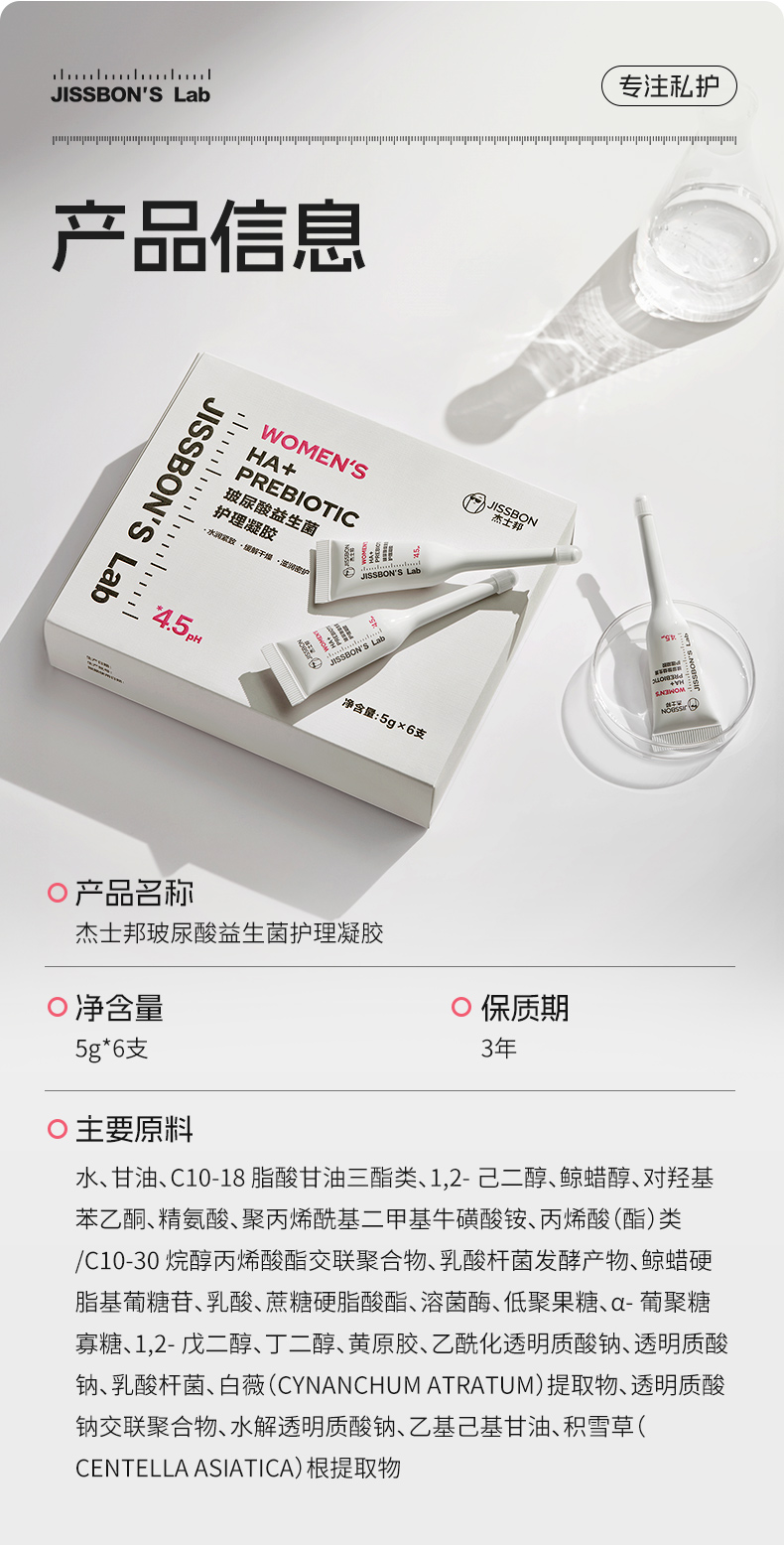杰士邦玻尿酸益生菌护理凝胶5g*6只 4D玻尿酸平衡菌群净味舒痒