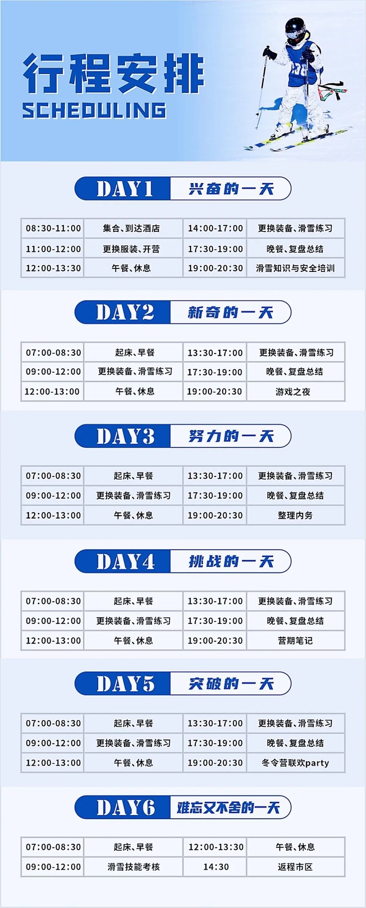 滑雪营课程体系,为孩子们提供一站式的滑雪教学服务,让孩子们在冰雪世界中畅游无阻。
