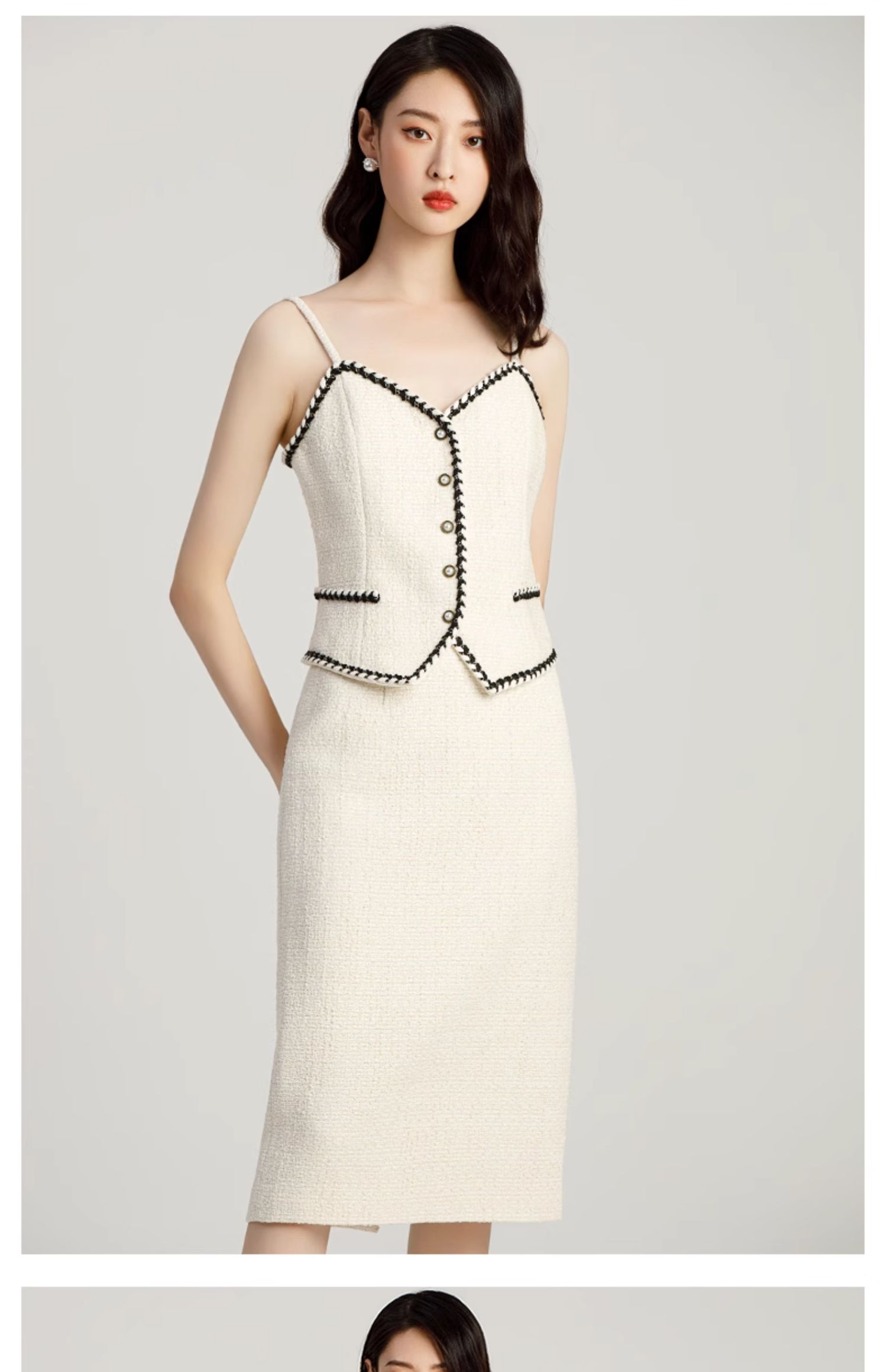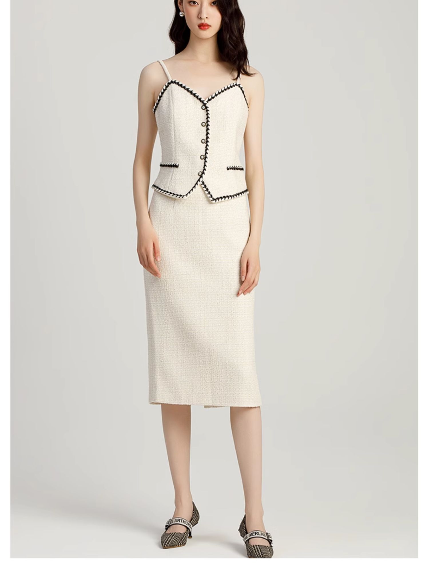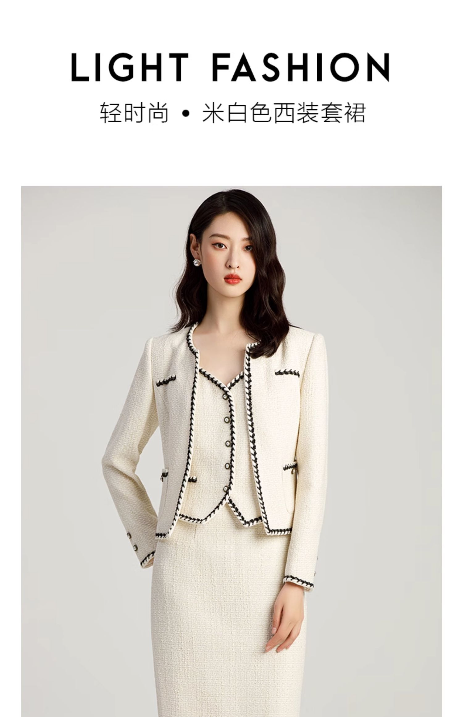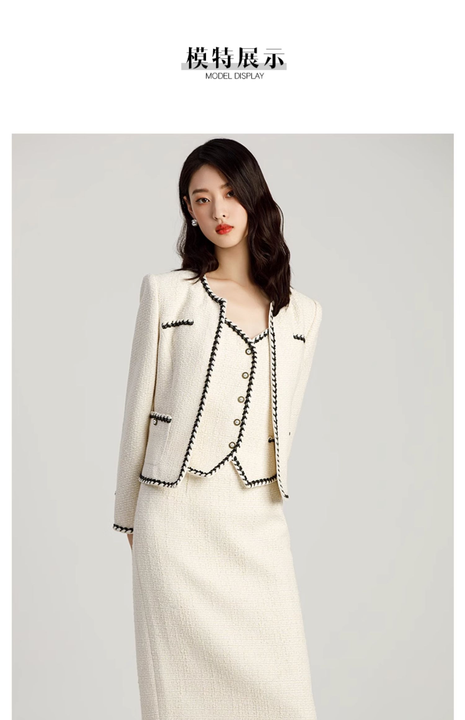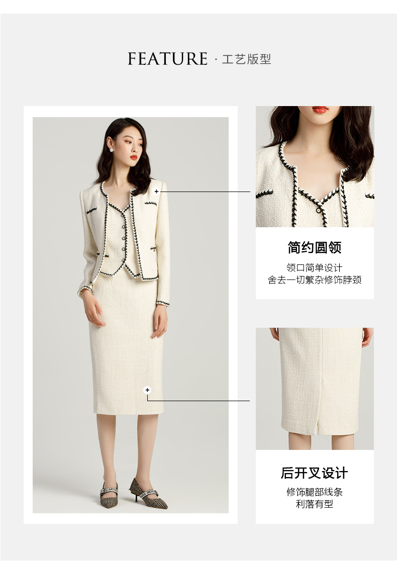 AD名媛范套装女小香风三件套职业装气质女神范法式短外套半身裙