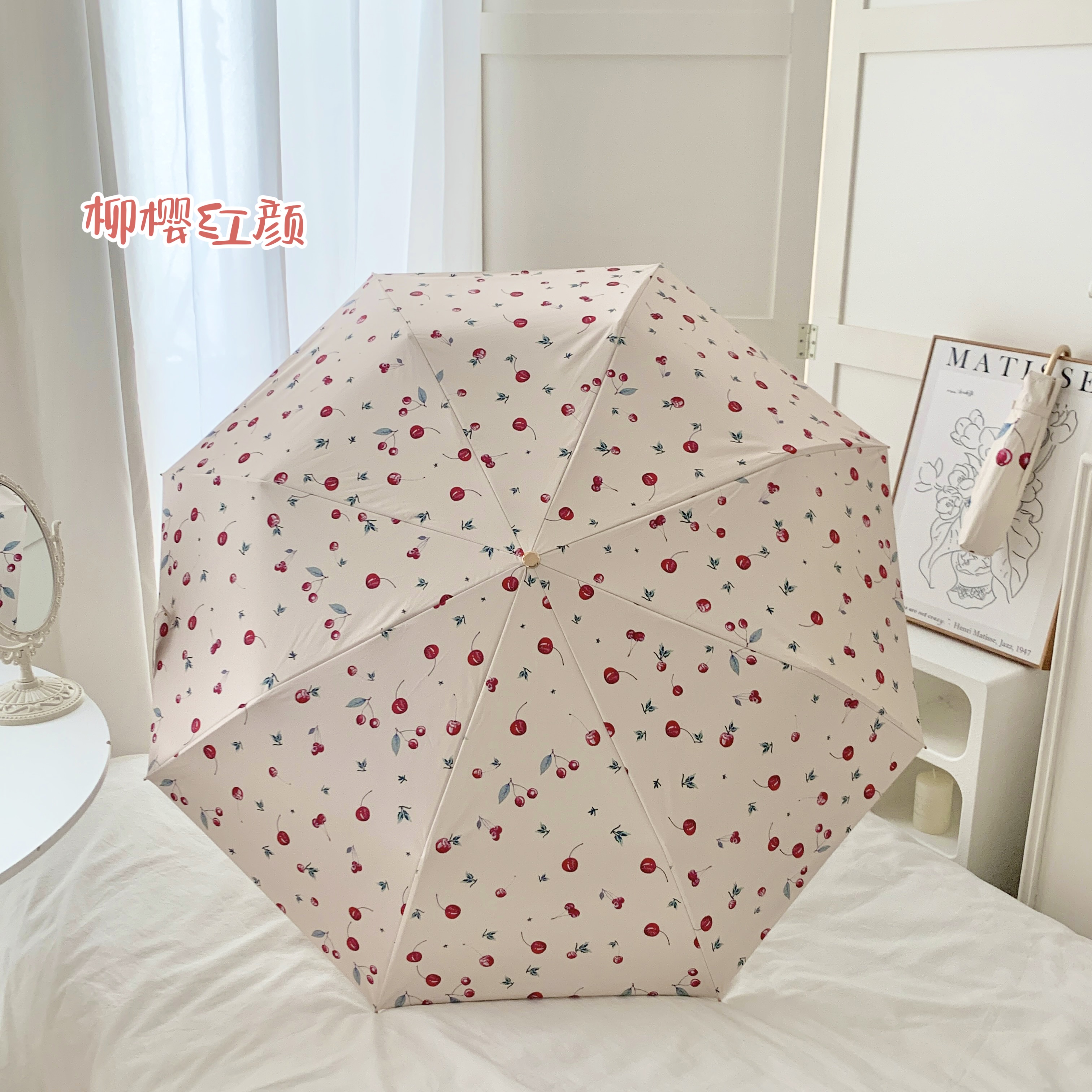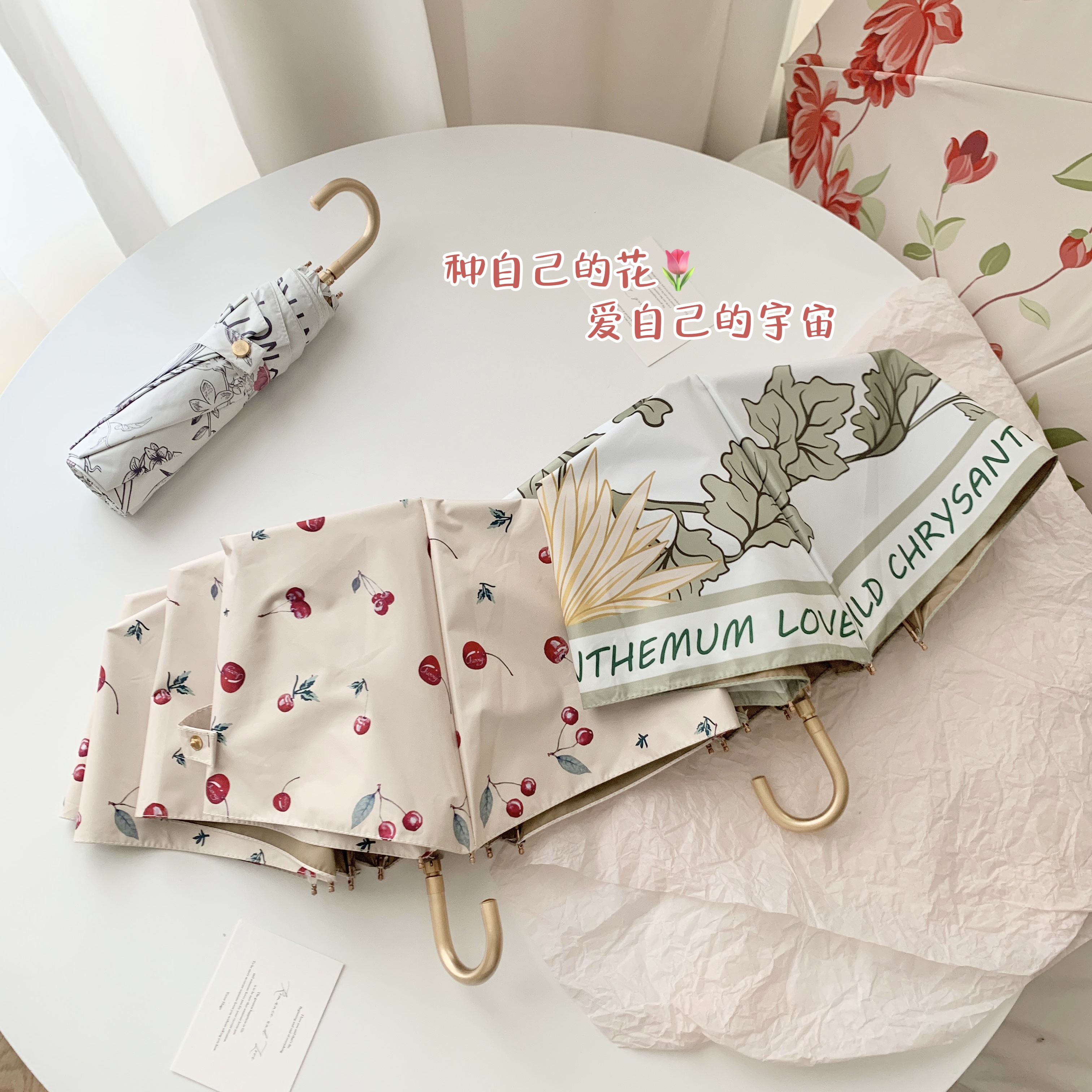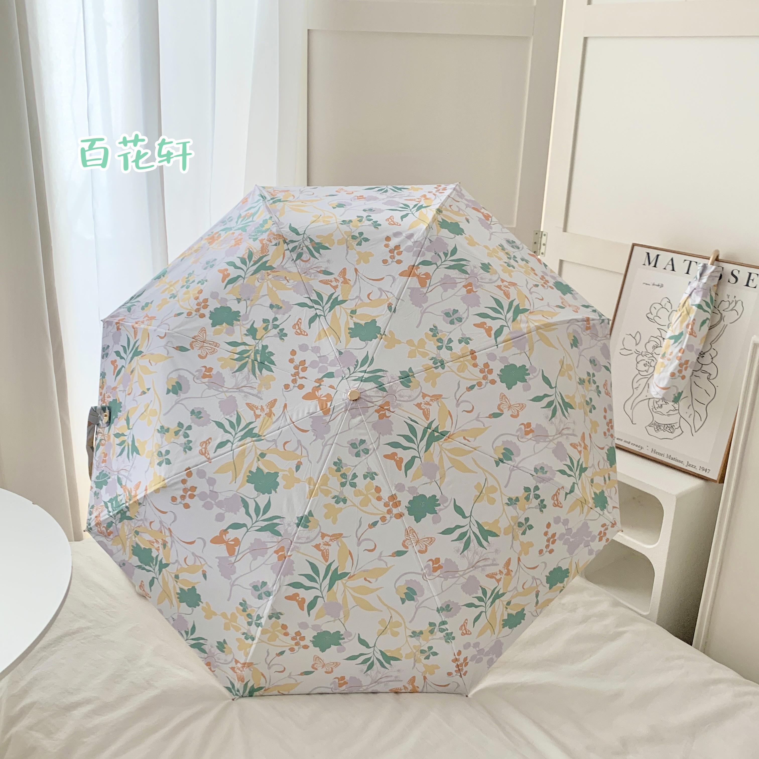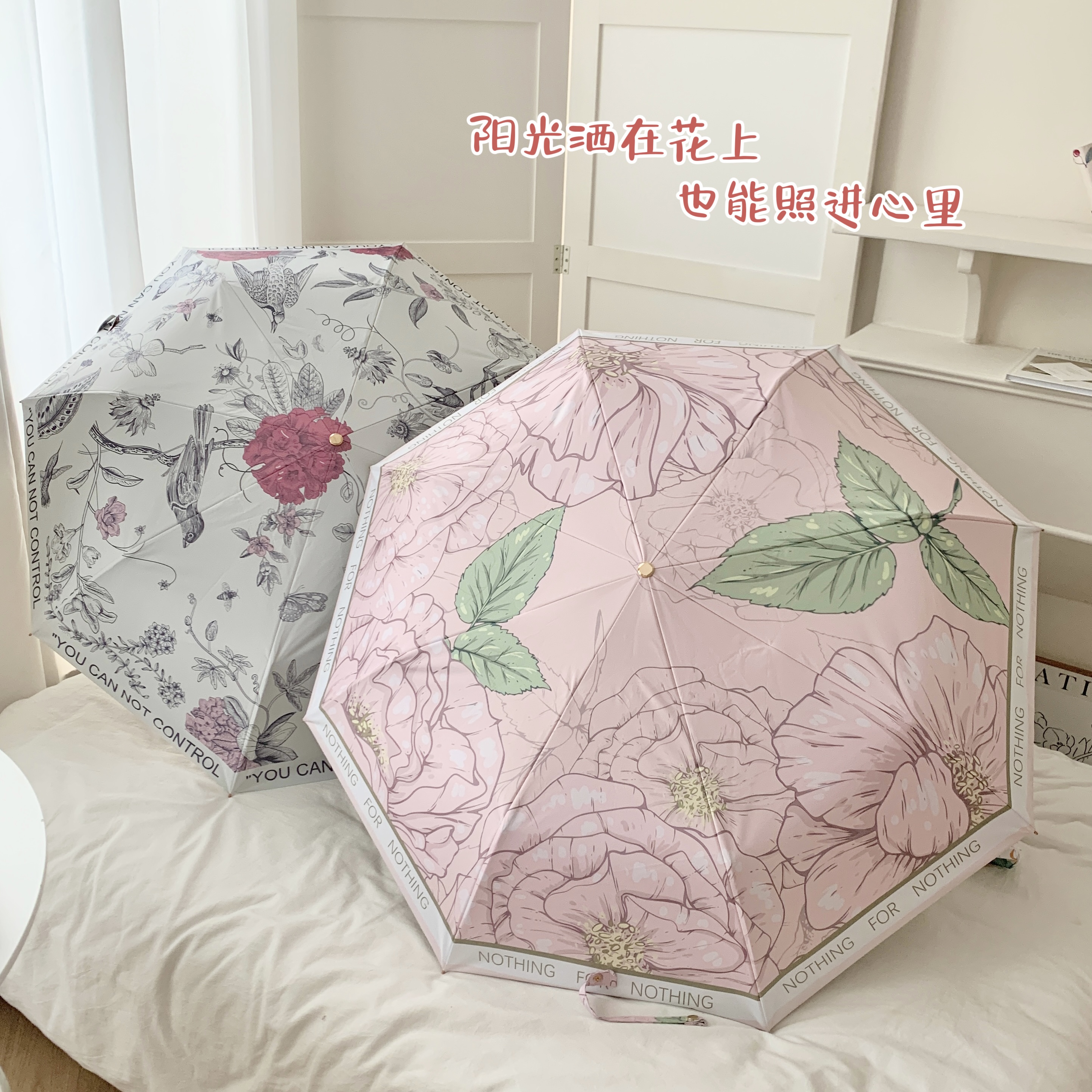 三折手动彩胶遮阳伞 8骨小巧便捷晴雨两用折叠伞 防晒防紫外线 高颜值复古