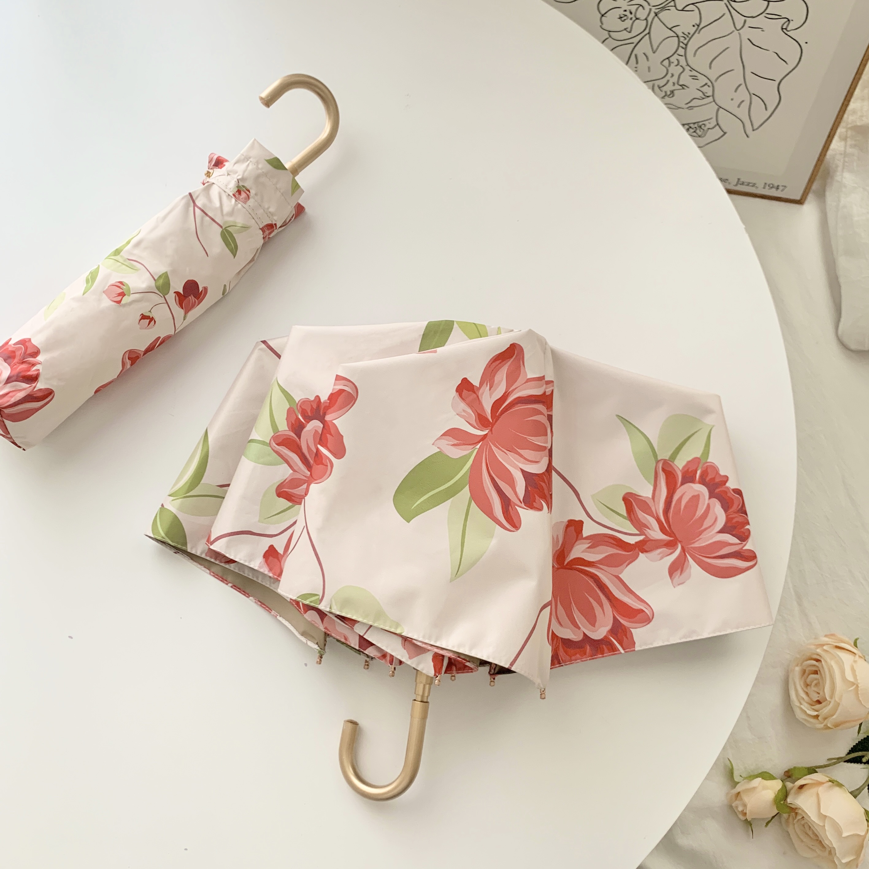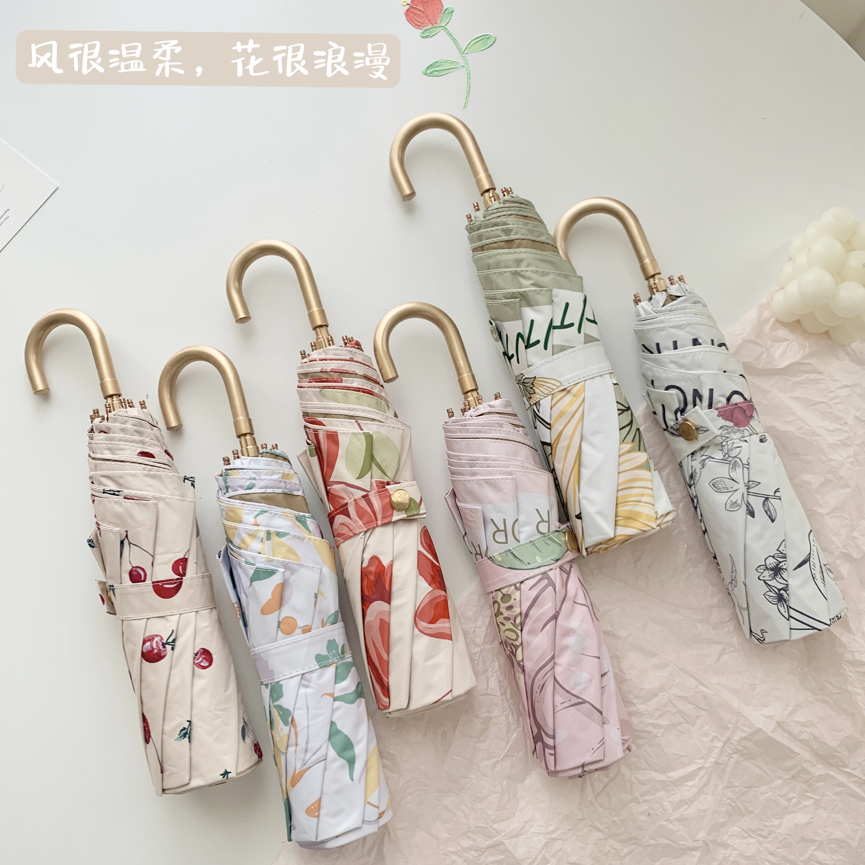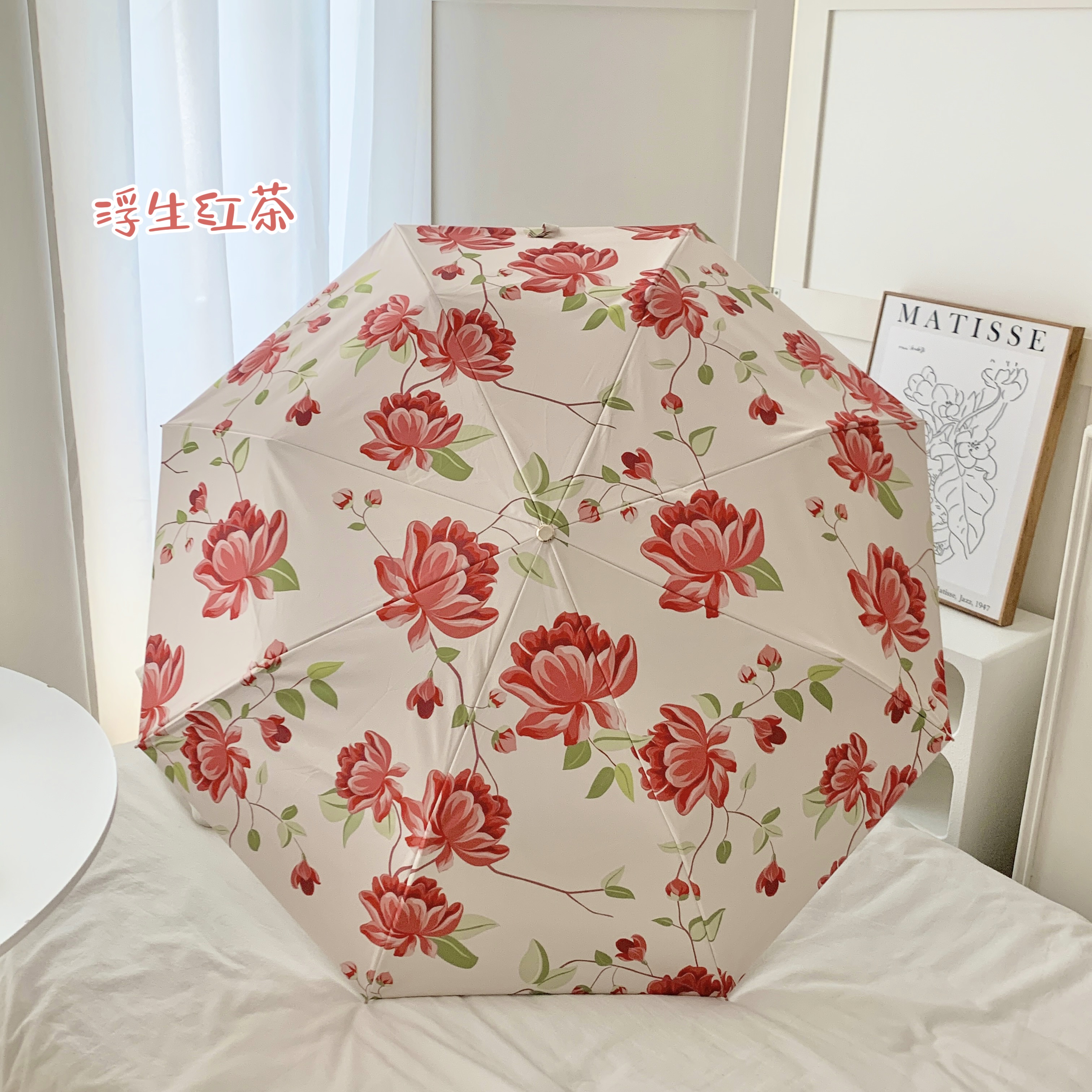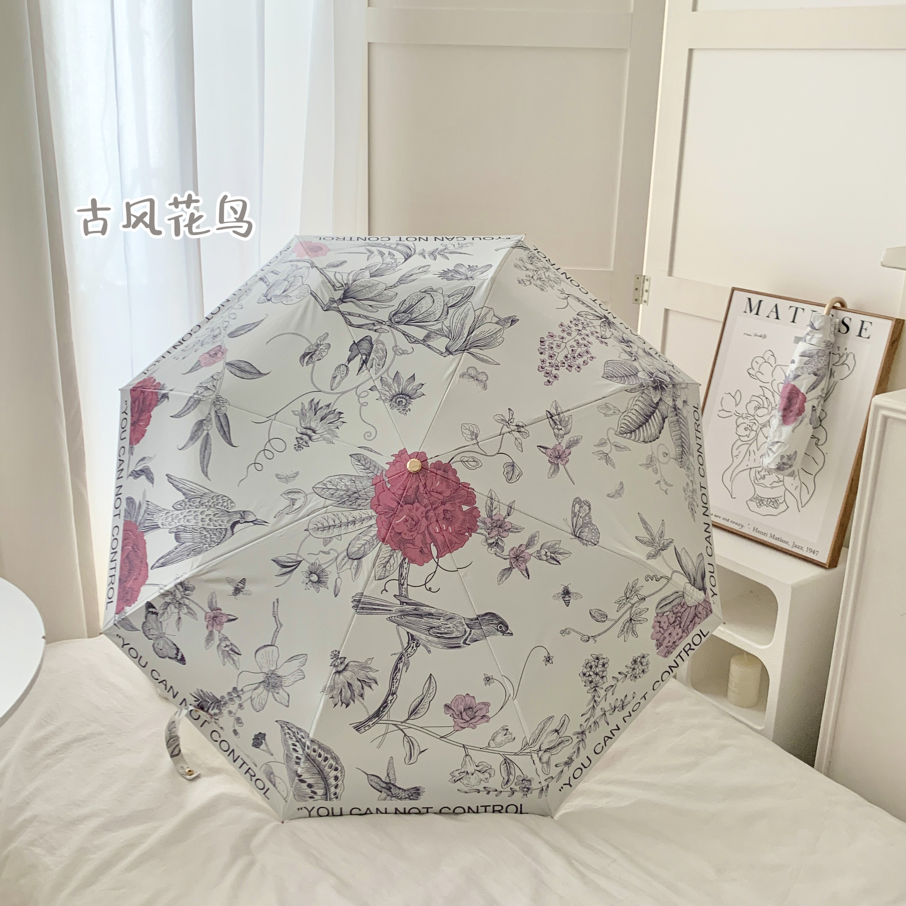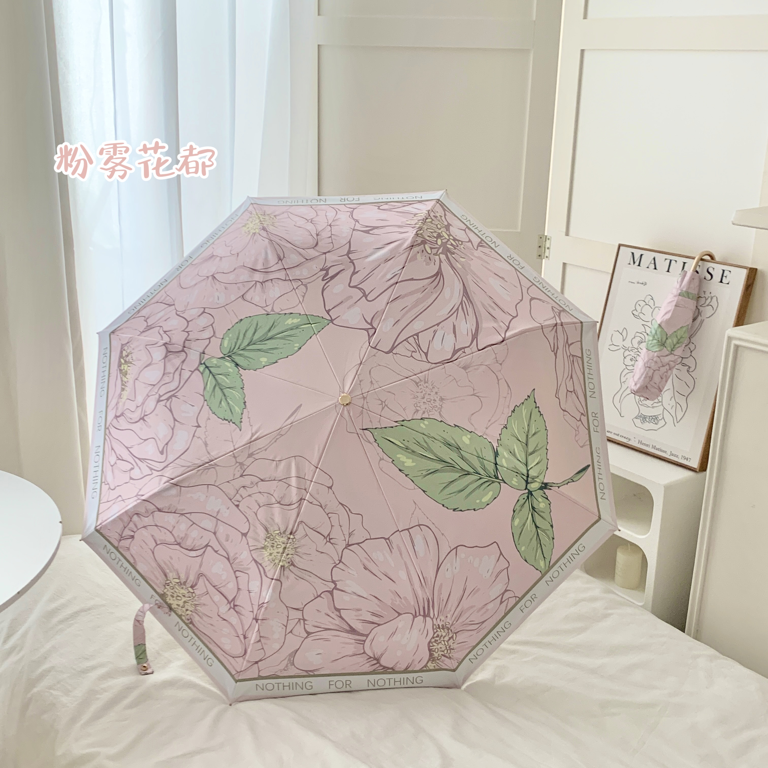 三折手动彩胶遮阳伞 8骨小巧便捷晴雨两用折叠伞 防晒防紫外线 高颜值复古