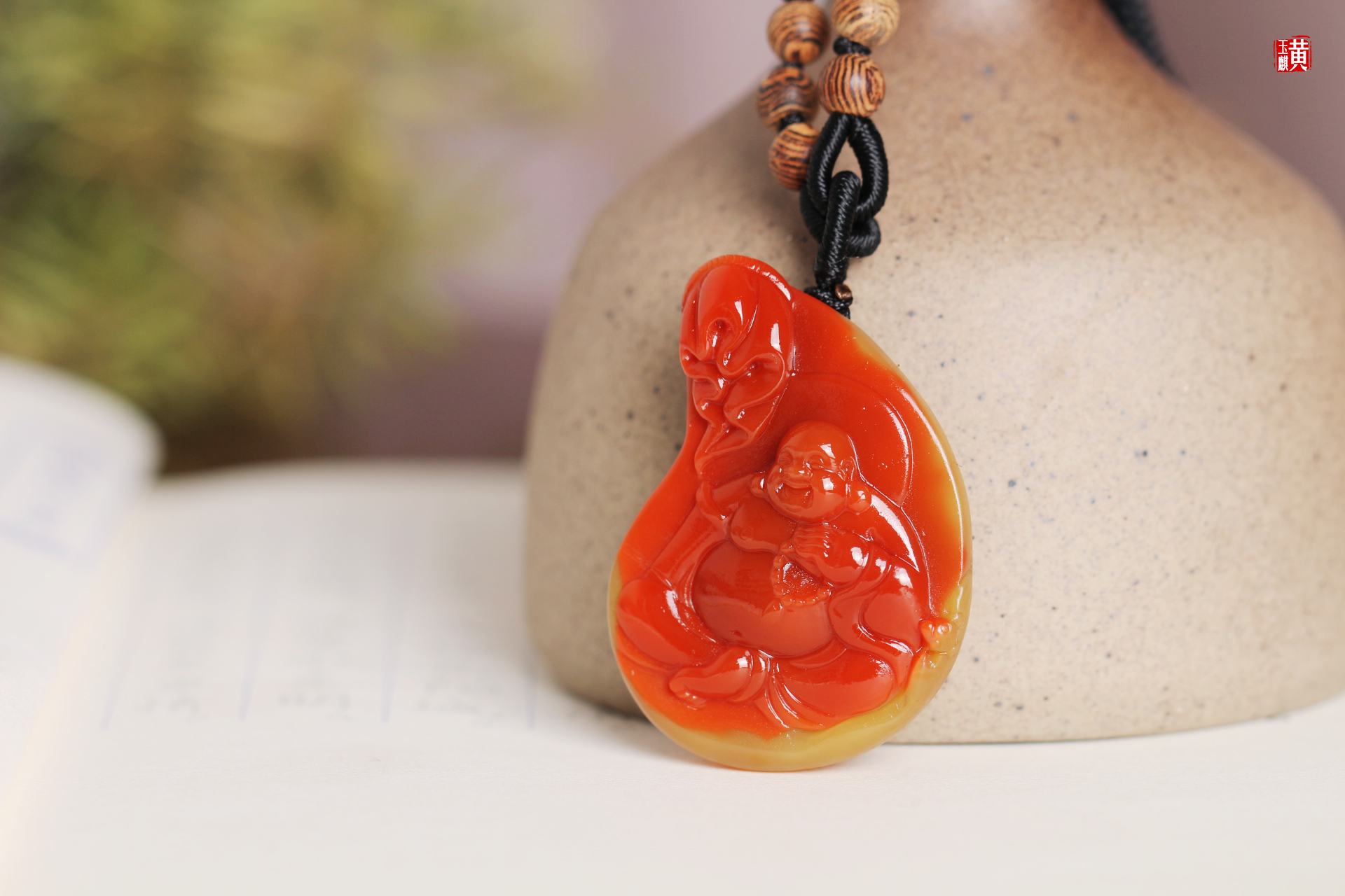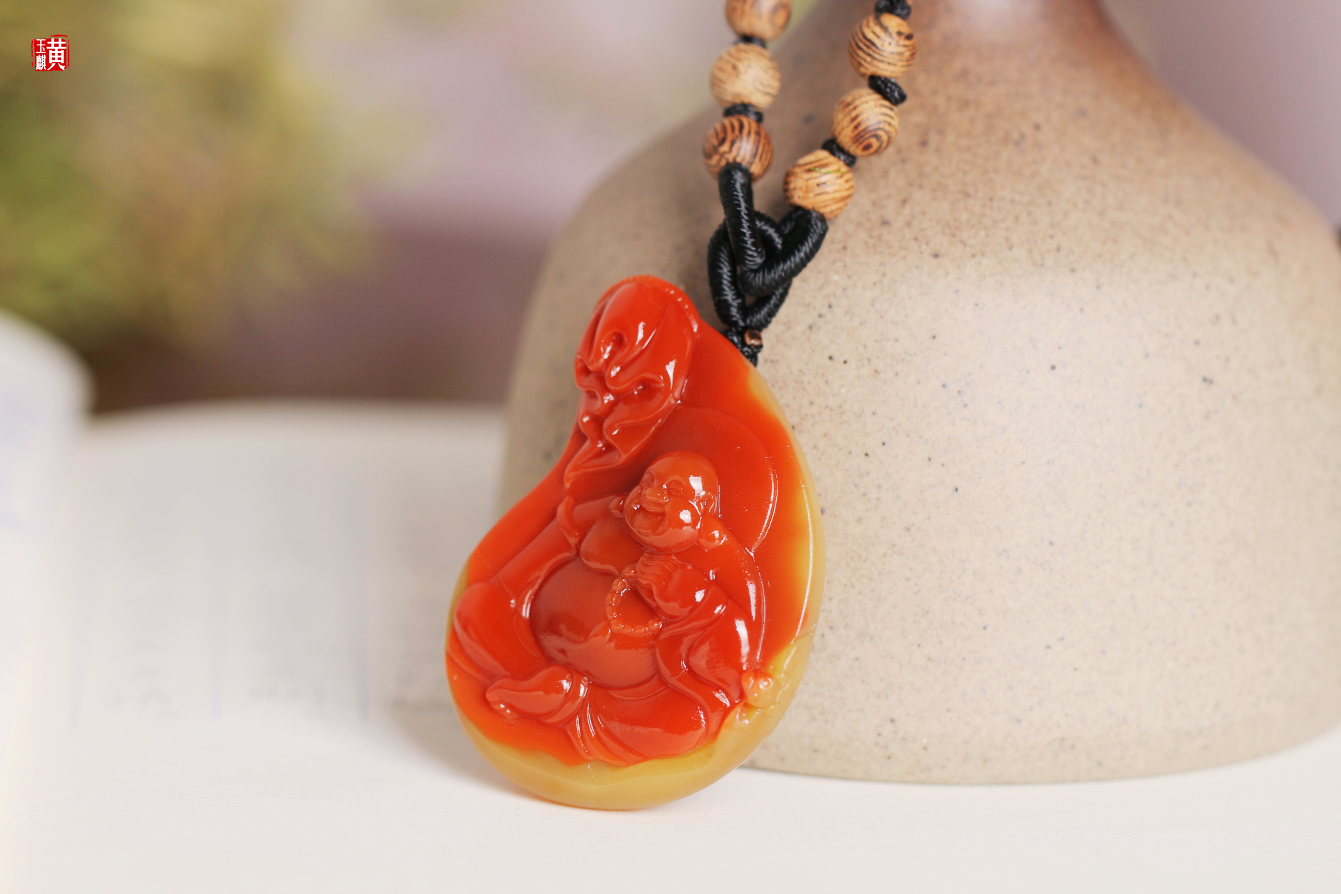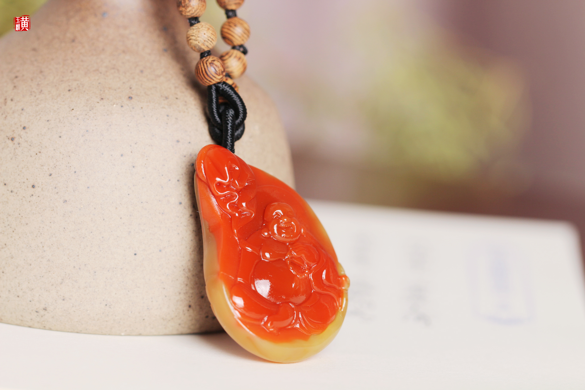 南红精雕【笑佛】吊坠 配精美编织挂绳