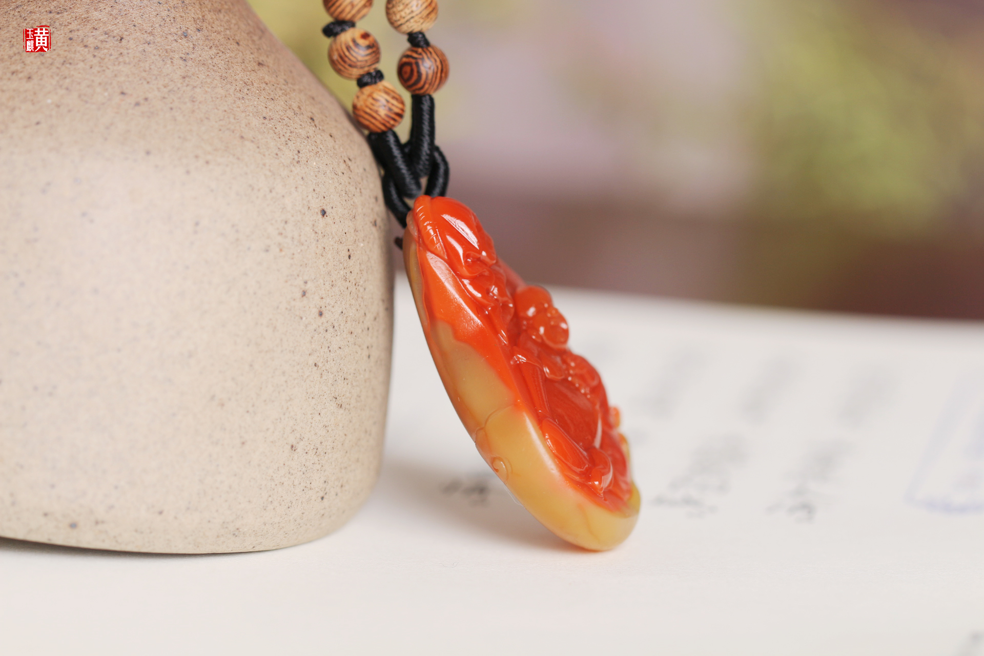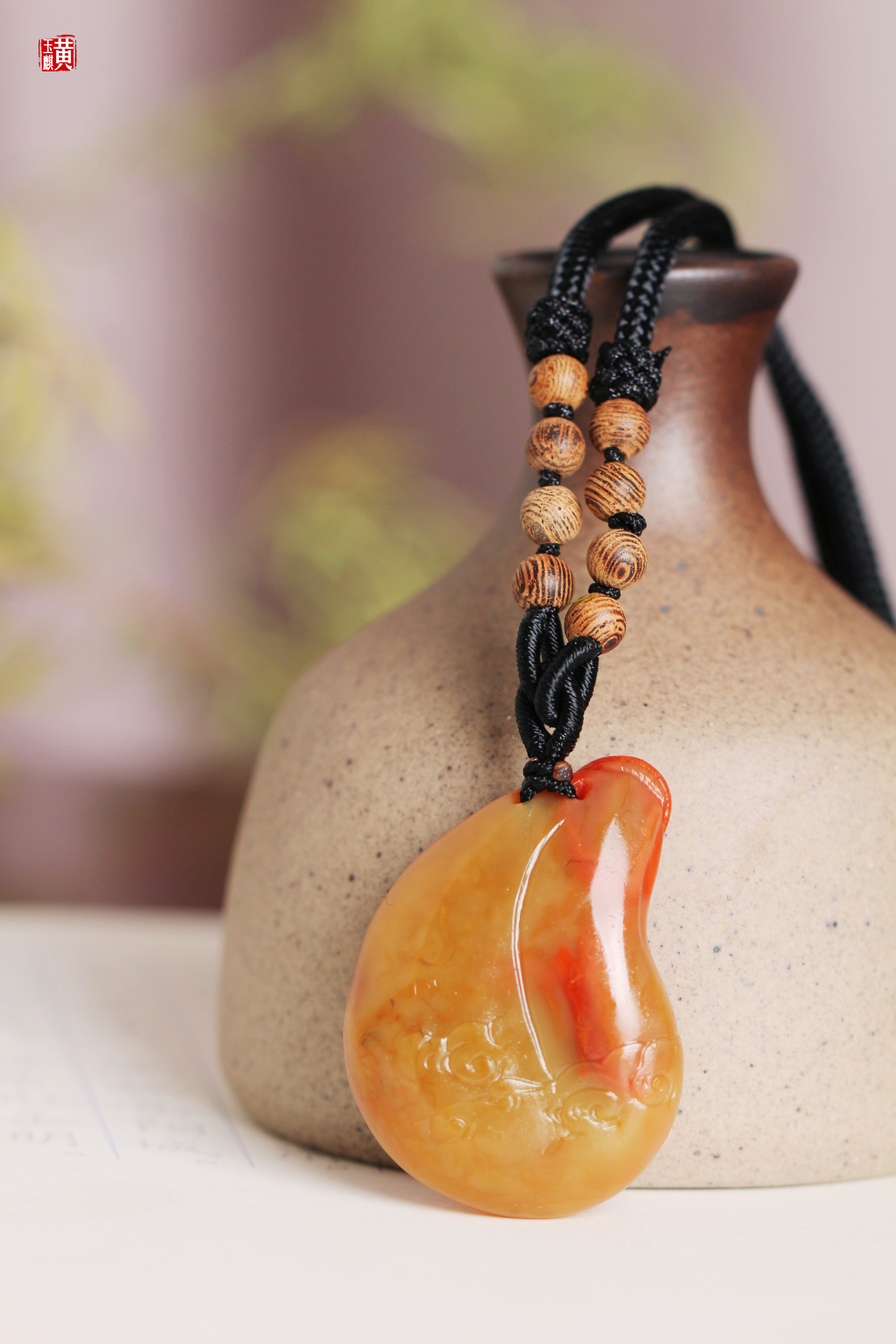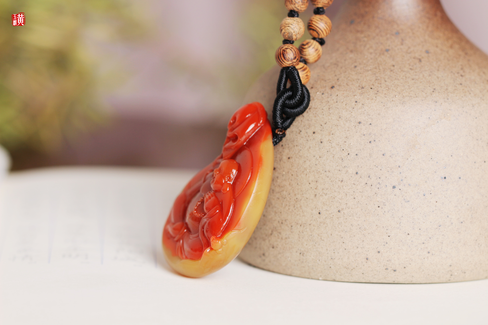 南红精雕【笑佛】吊坠 配精美编织挂绳