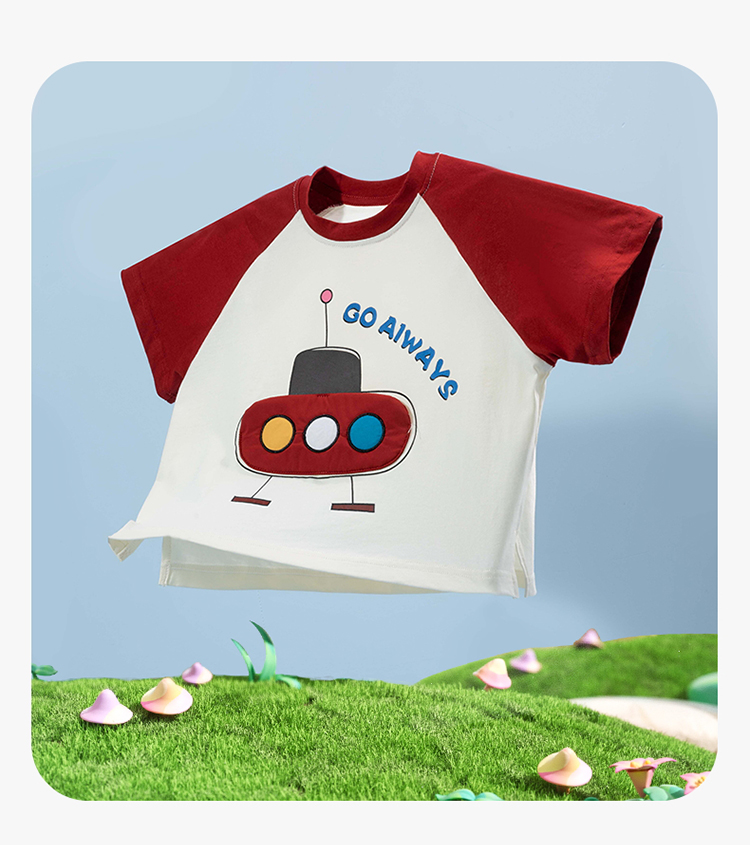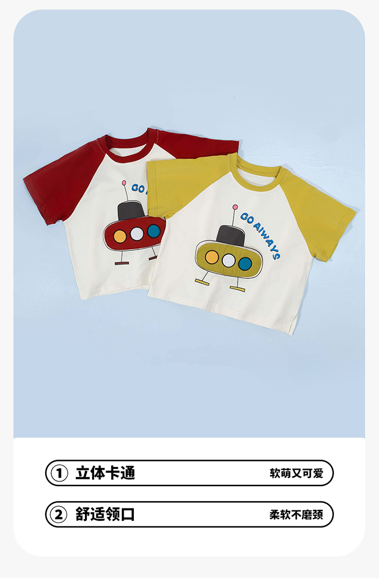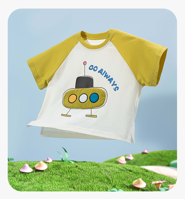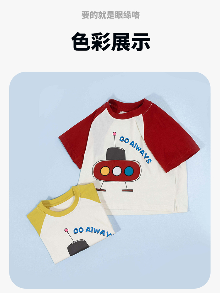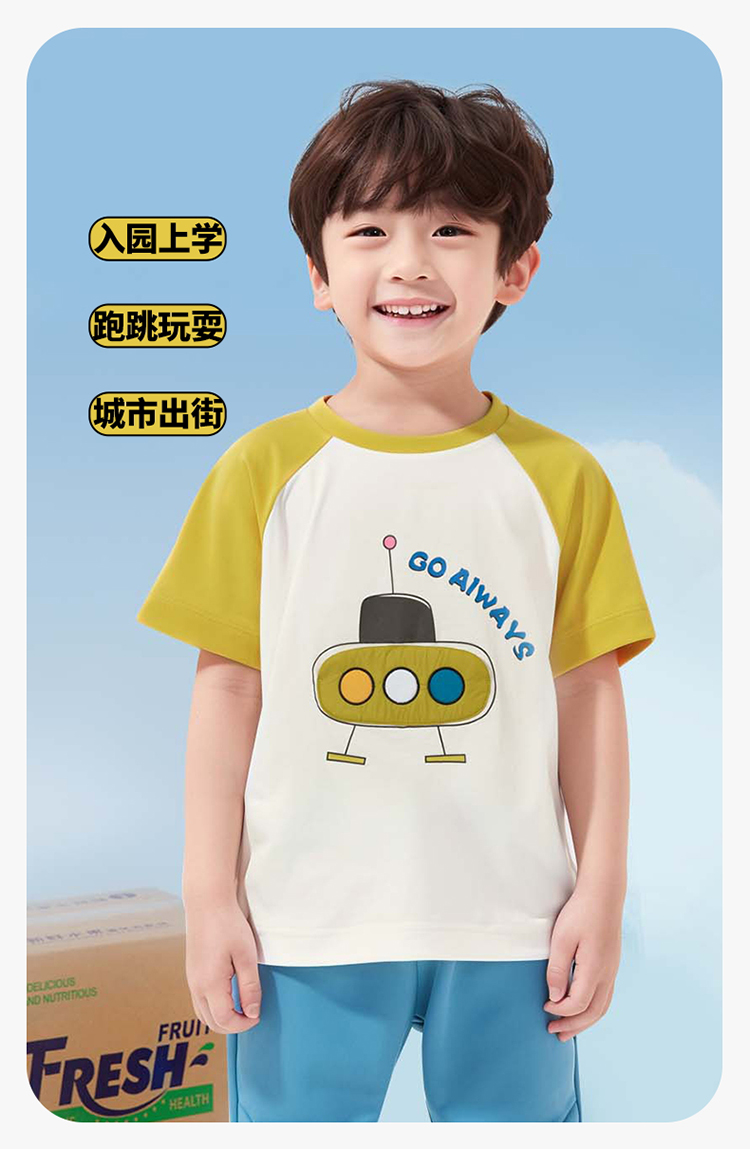 贝贝怡24夏季男童短袖T恤舒适透气上衣撞色插肩袖T恤ZB2DS037