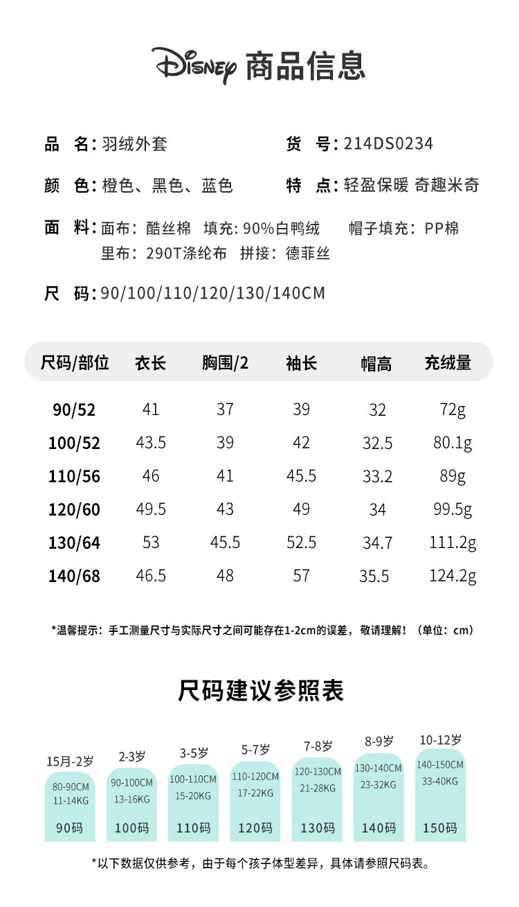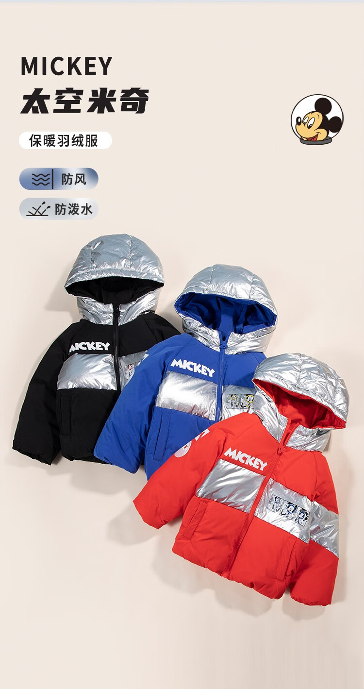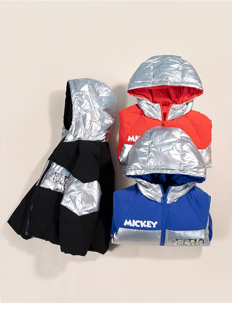 【商场同款】迪士尼童装冬季新品儿童保暖羽绒服男童撞色拼接连帽外套214DS0234